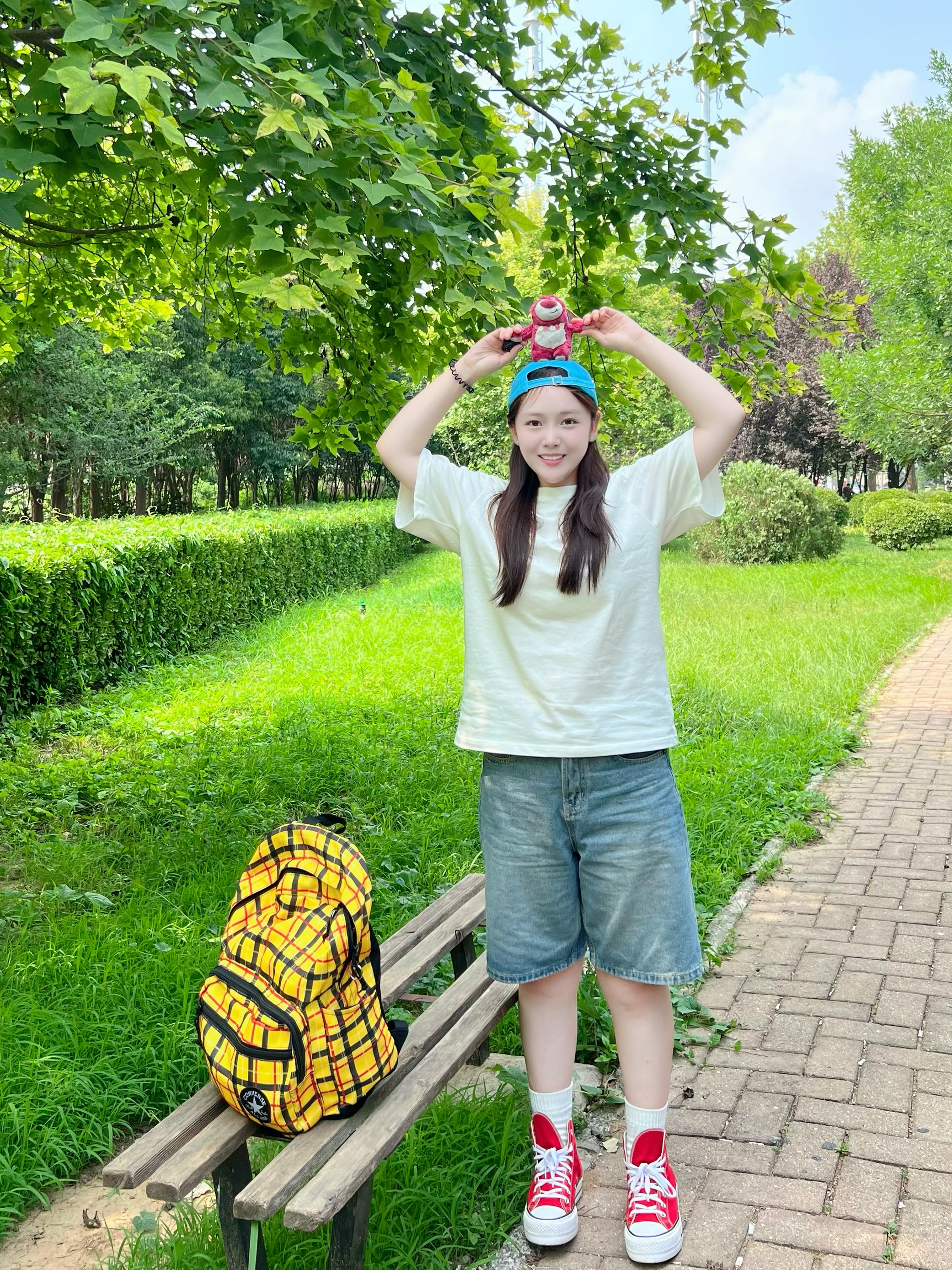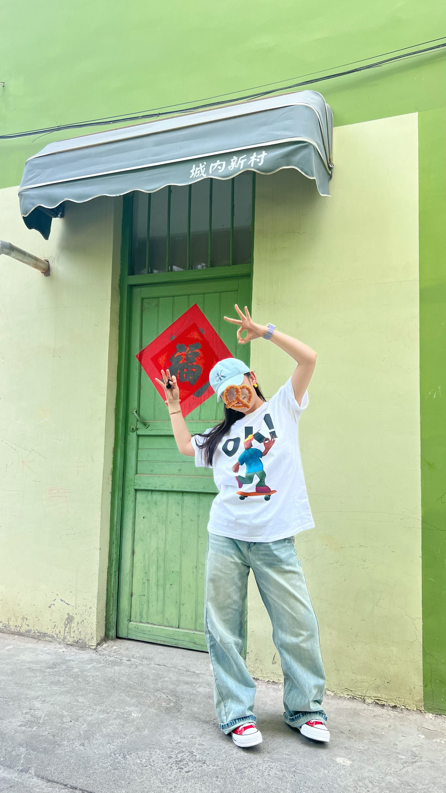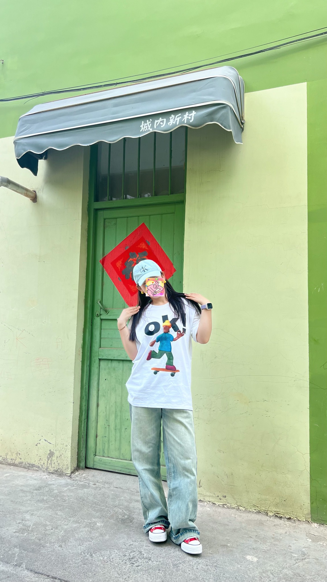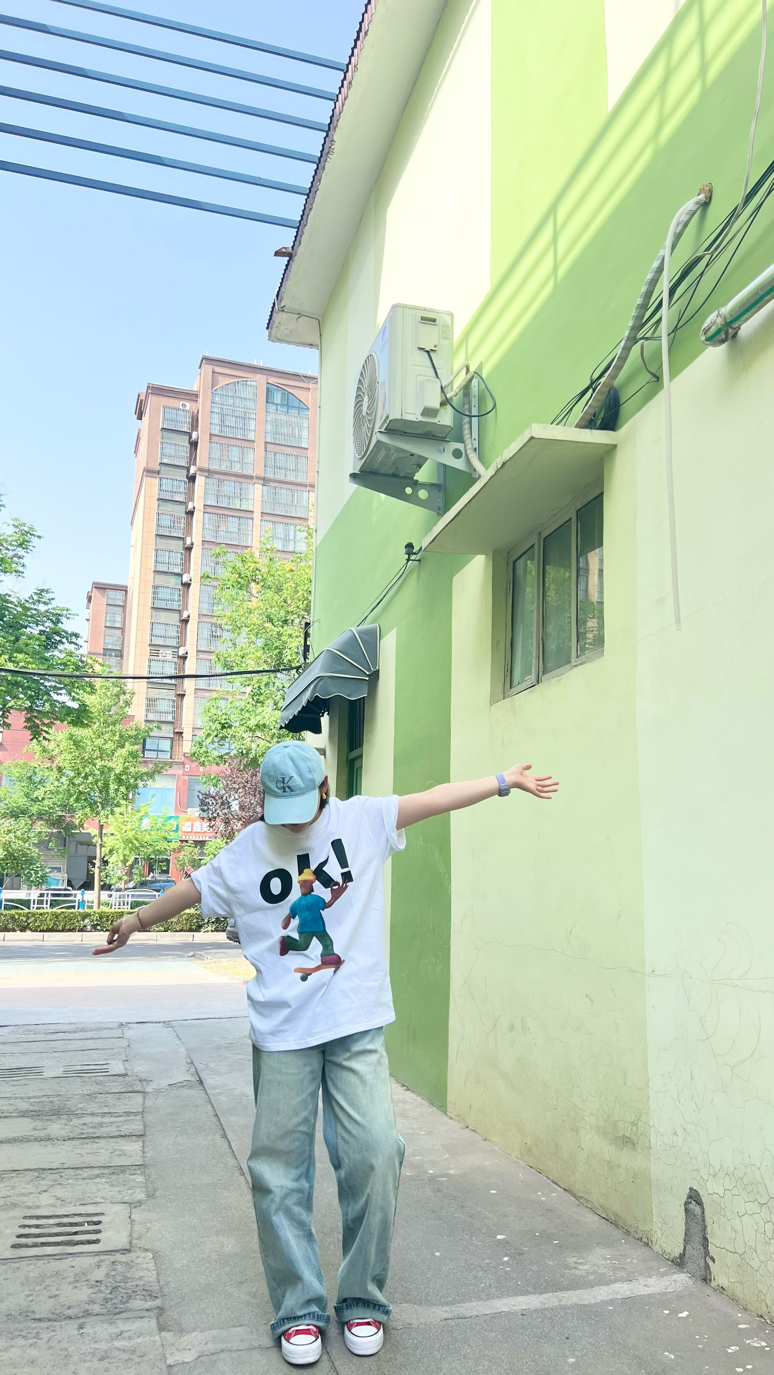 小宝们~性价比学生妹穿搭来咯 清新风!实穿注意经典白T ok的图案简直滑稽🤪 裤子搭配超火牛仔裤 修饰腿型 拉长腿🥰 鞋子依旧经典搭配匡威高帮!简直美到爆 帽子轻奢ck man经典搭配 活力满满 快跟我学穿搭~