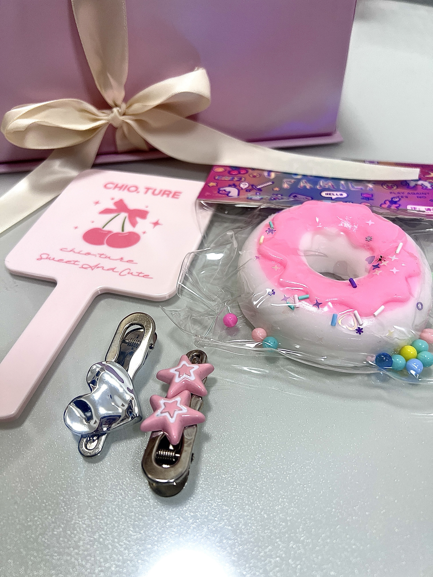 一整个盒子都是粉粉嫩嫩哒~ 你就说会有那个女孩子不喜欢粉色吧 里面包含了:眼影盘➕两个唇蜜➕卧蚕盘➕腮红泥➕手持镜➕一只笔➕唇笔➕两个小夹子 口红💄闻起来香香甜甜的,素颜轻松驾驭 眼影盘和腮红的颜色都很正 也很日常 平时随便怎么搭都好看 我噂嘟爱了爱了