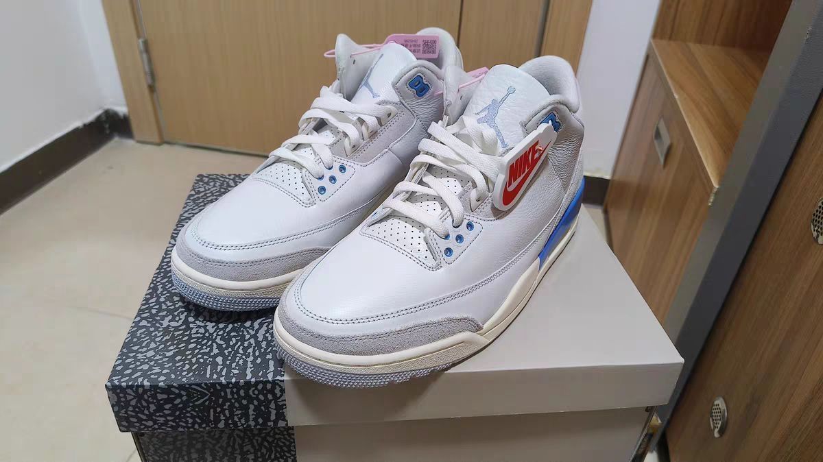 本篇笔记关联了Air Jordan 3 运动休闲鞋 潮流复古抓地支撑缓震合成革圆头 天蓝色/白色等商品,为用户提供真实的使用体验和购买参考。
