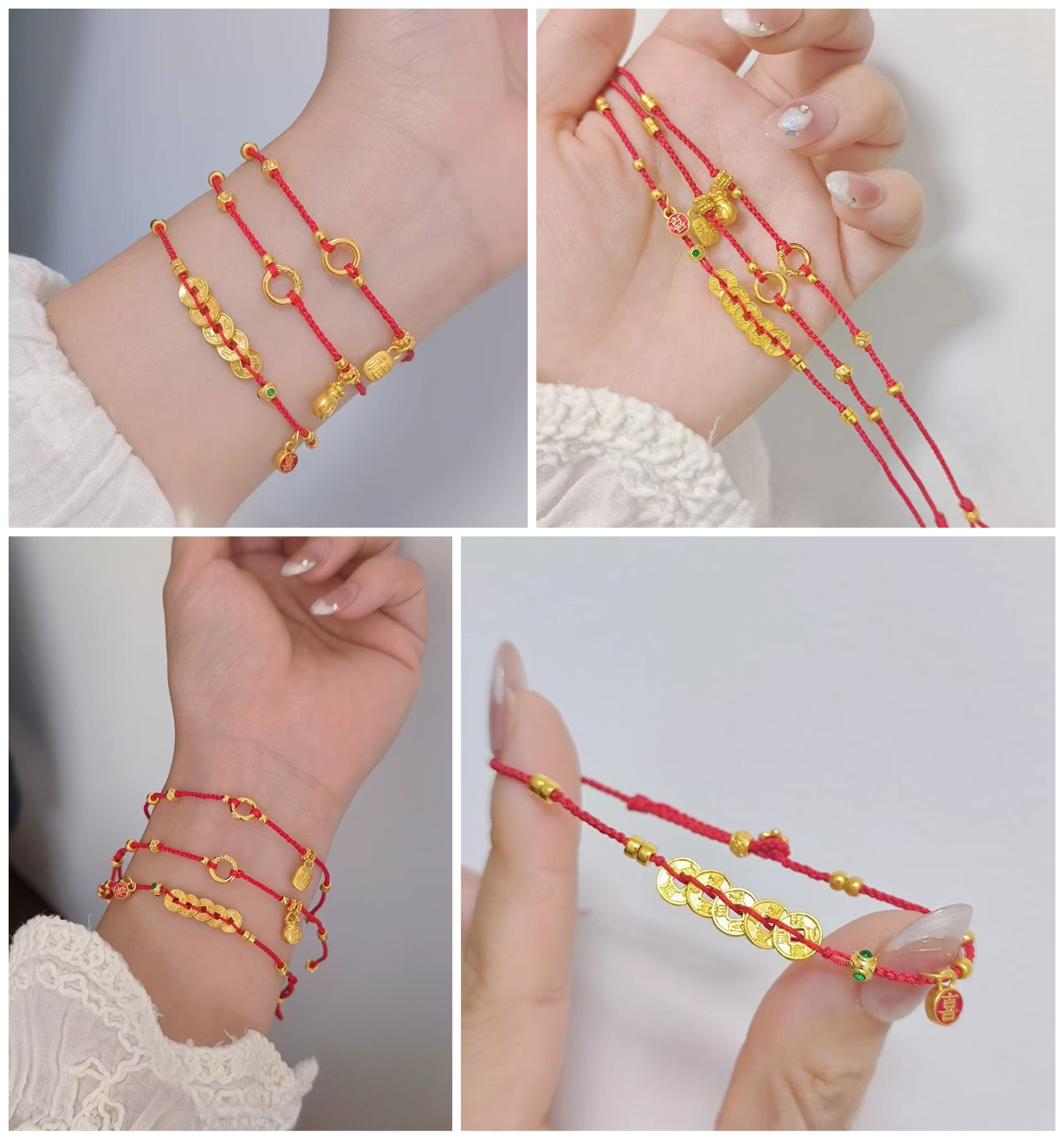 🔴平安扣,扣平安,红绳缠绕,锁住岁岁年年的安康。 🔵集齐顺治、康熙、雍正、乾隆、嘉庆五帝钱币,以红绳串联,承载着历史的祝福,开启你的幸运之门。