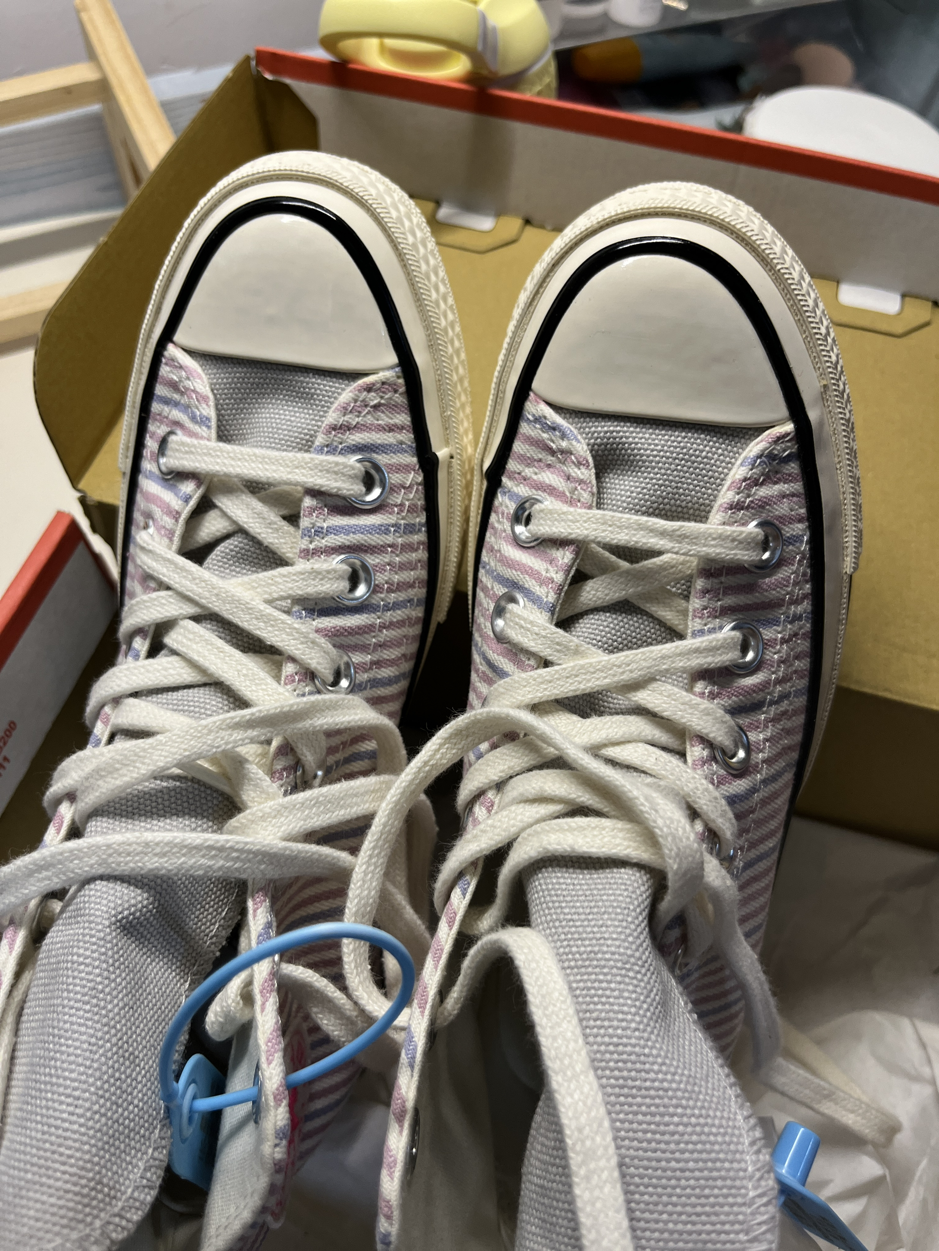 本篇笔记关联了Converse/匡威 1970s 帆布鞋 圆头防滑经典复古轻便时尚百搭 高帮/粉紫条纹等商品,为用户提供真实的使用体验和购买参考。