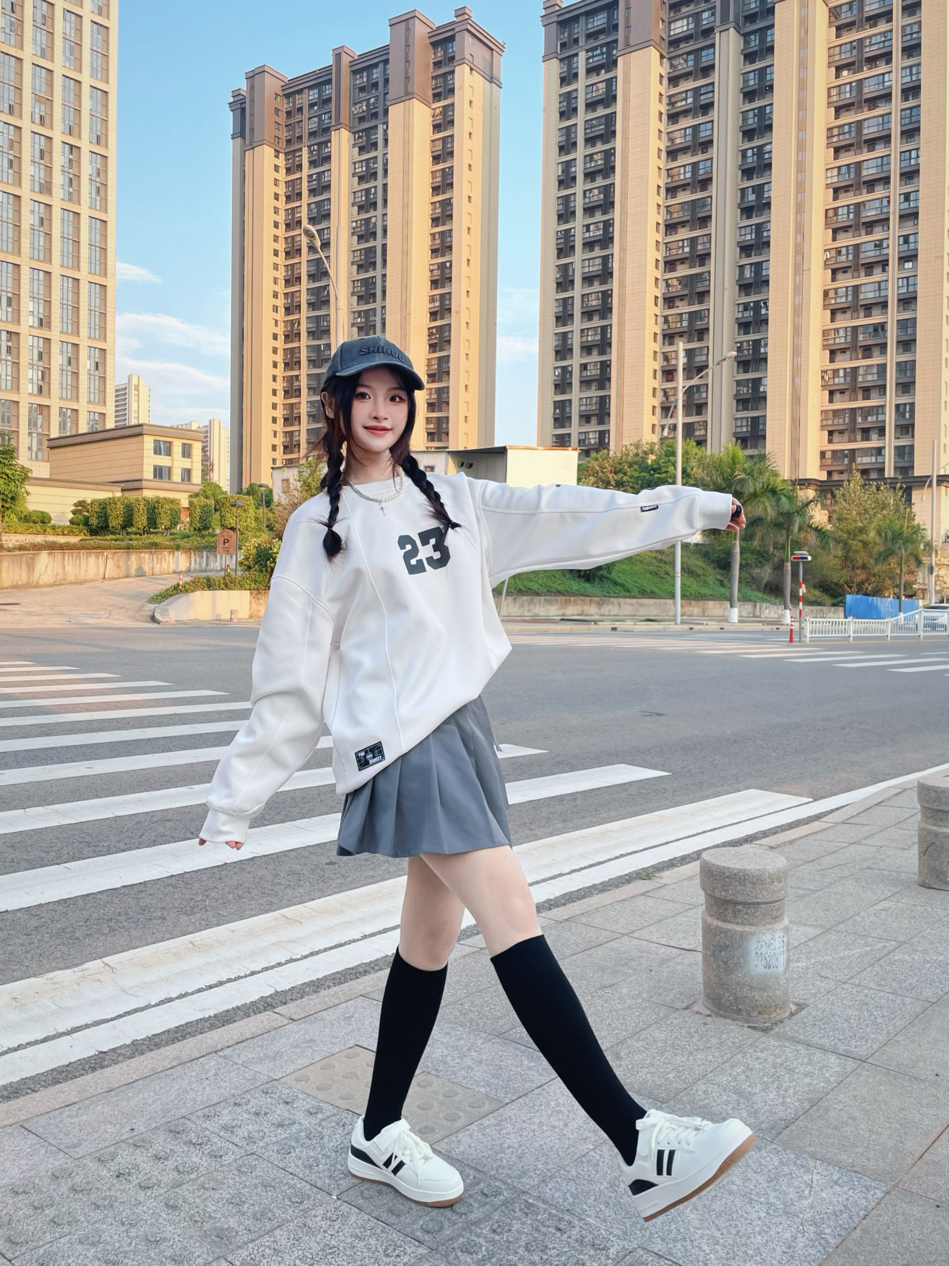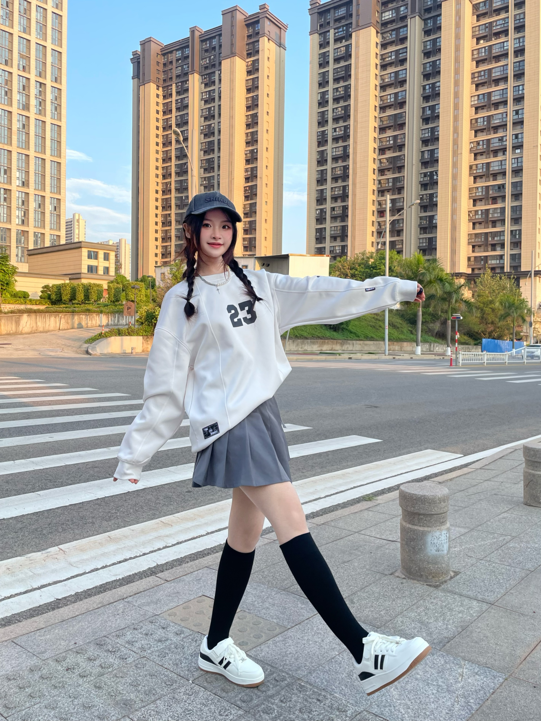 好喜欢晴天呀🫧 穿一身干干净净的出门citywalk 黑白灰配色尊嘟耐看~ 灰色百褶裙夏天很好搭配 618高低得冲一条 高筒袜➕小白鞋 👟还是林一同款! 魔术贴设计🪄也方便穿脱 少女感满满的一套出街回头率蛮高~