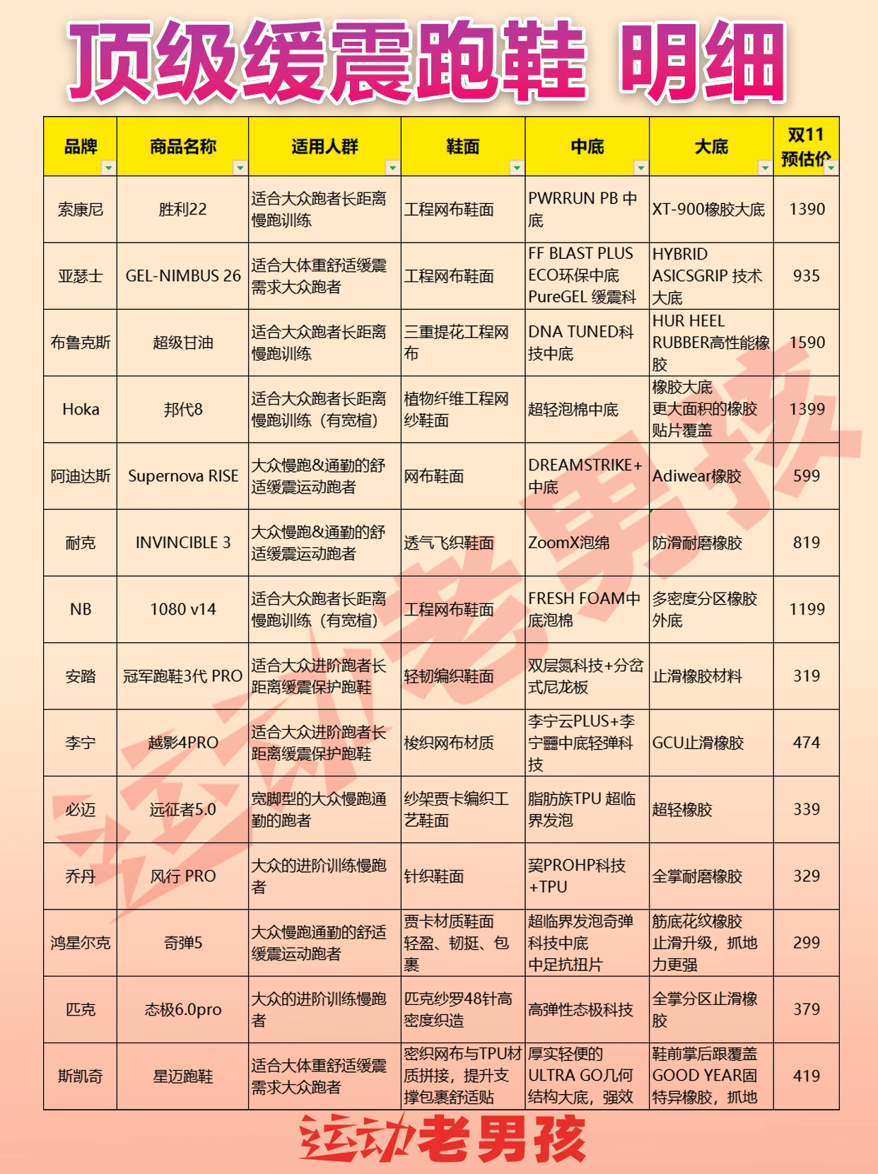 【顶级缓震跑鞋跑鞋排行榜|选出你最喜欢那双】,由用户 运动老男孩 分享,来自福建。这是一篇来自识货社区的真实用户分享笔记。
