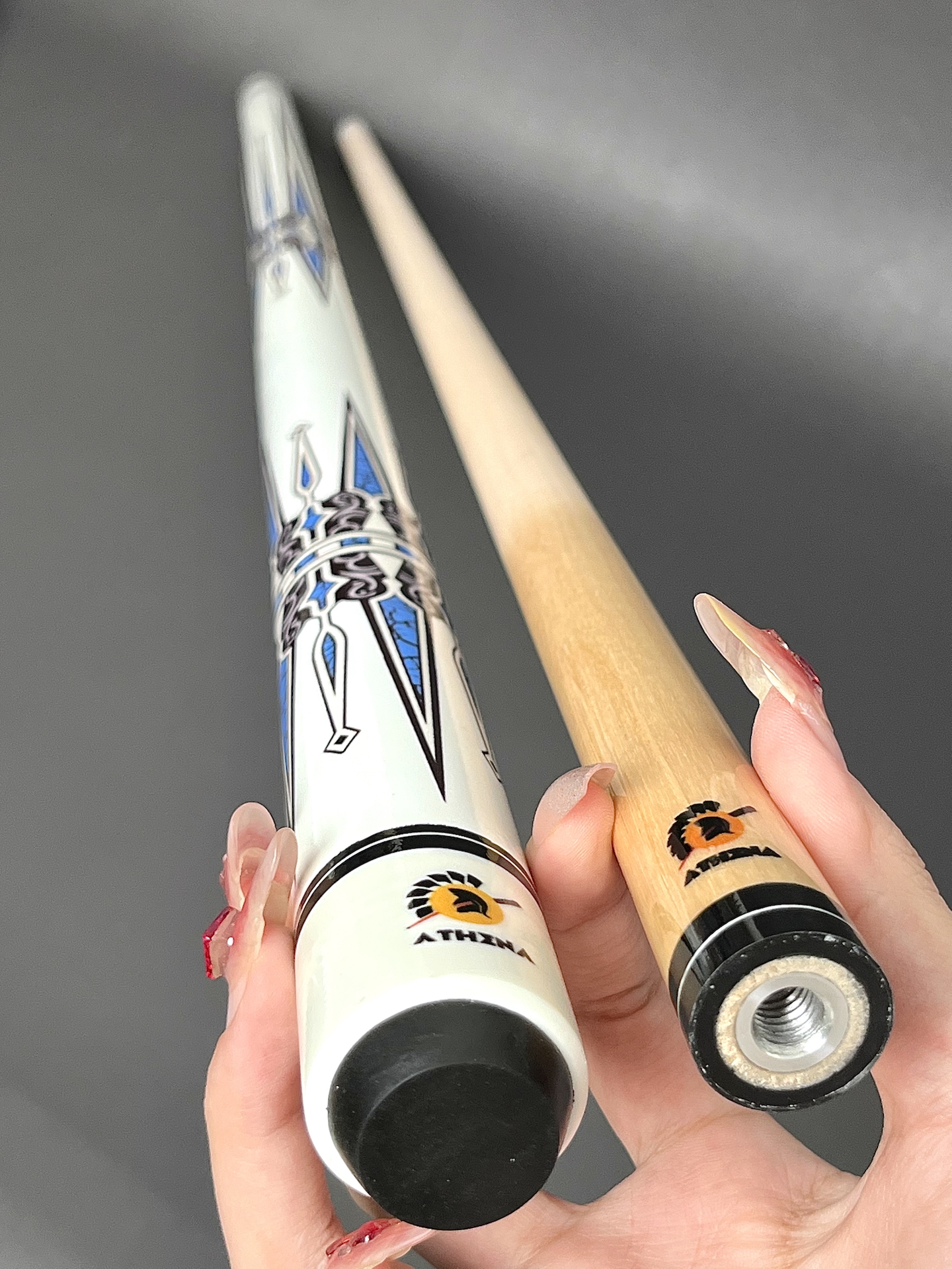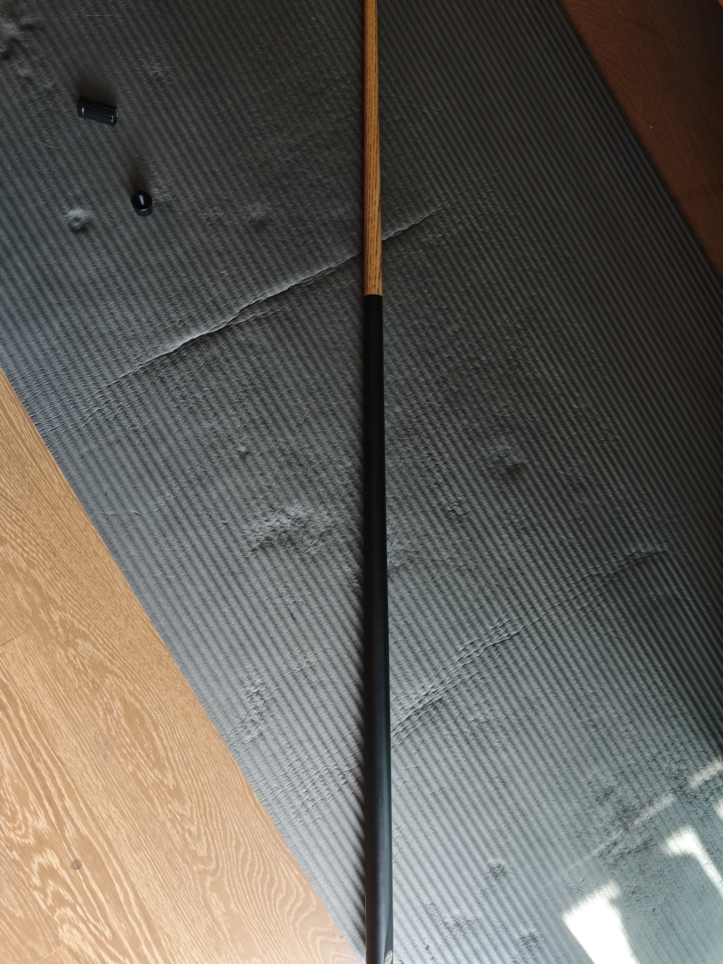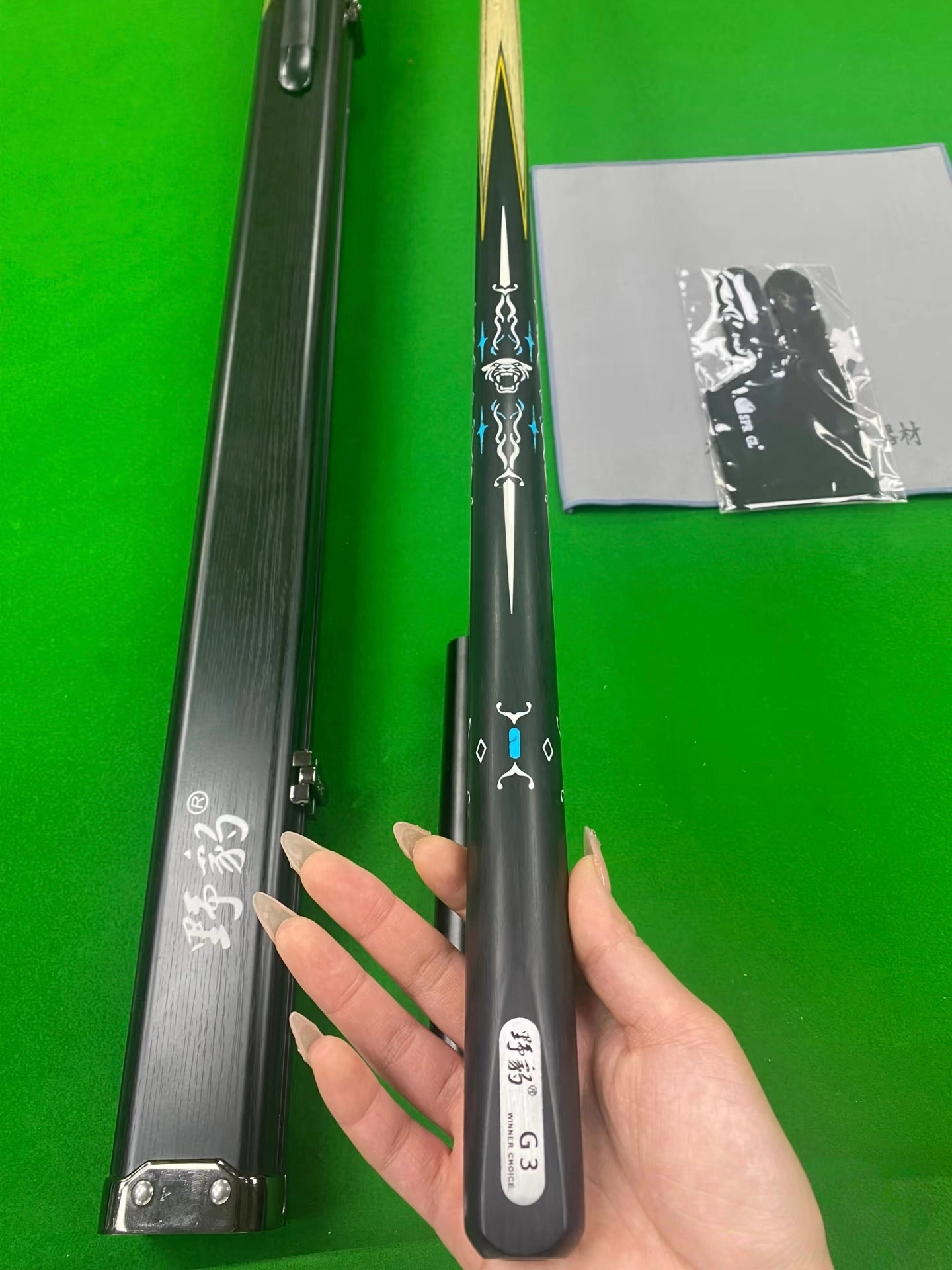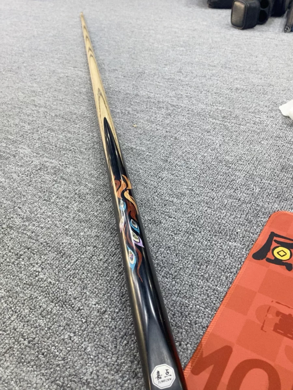 这款杆拿在手上特别有型。它采用了a级白蜡木前肢实则比普通木质硬度更强,打球更直。后把也采用了碳素和烤漆贴花工艺,手感和颜值确实提升不少。
