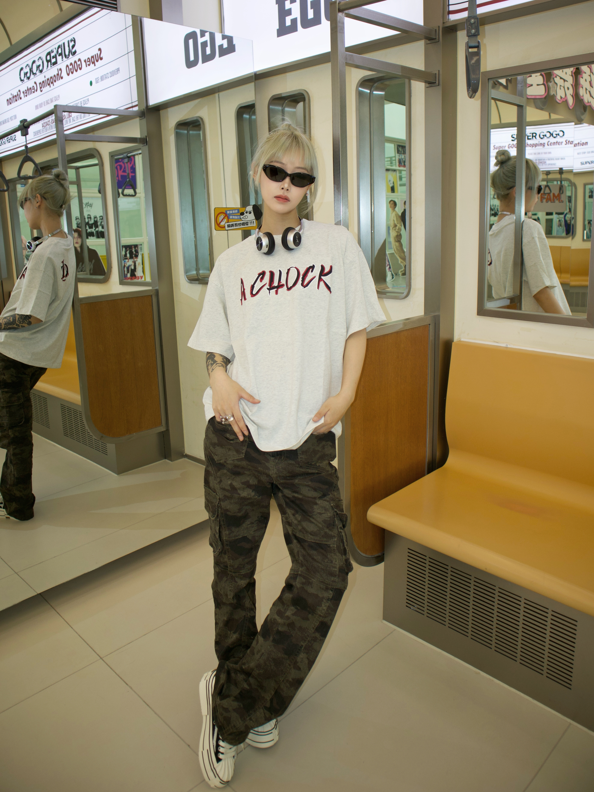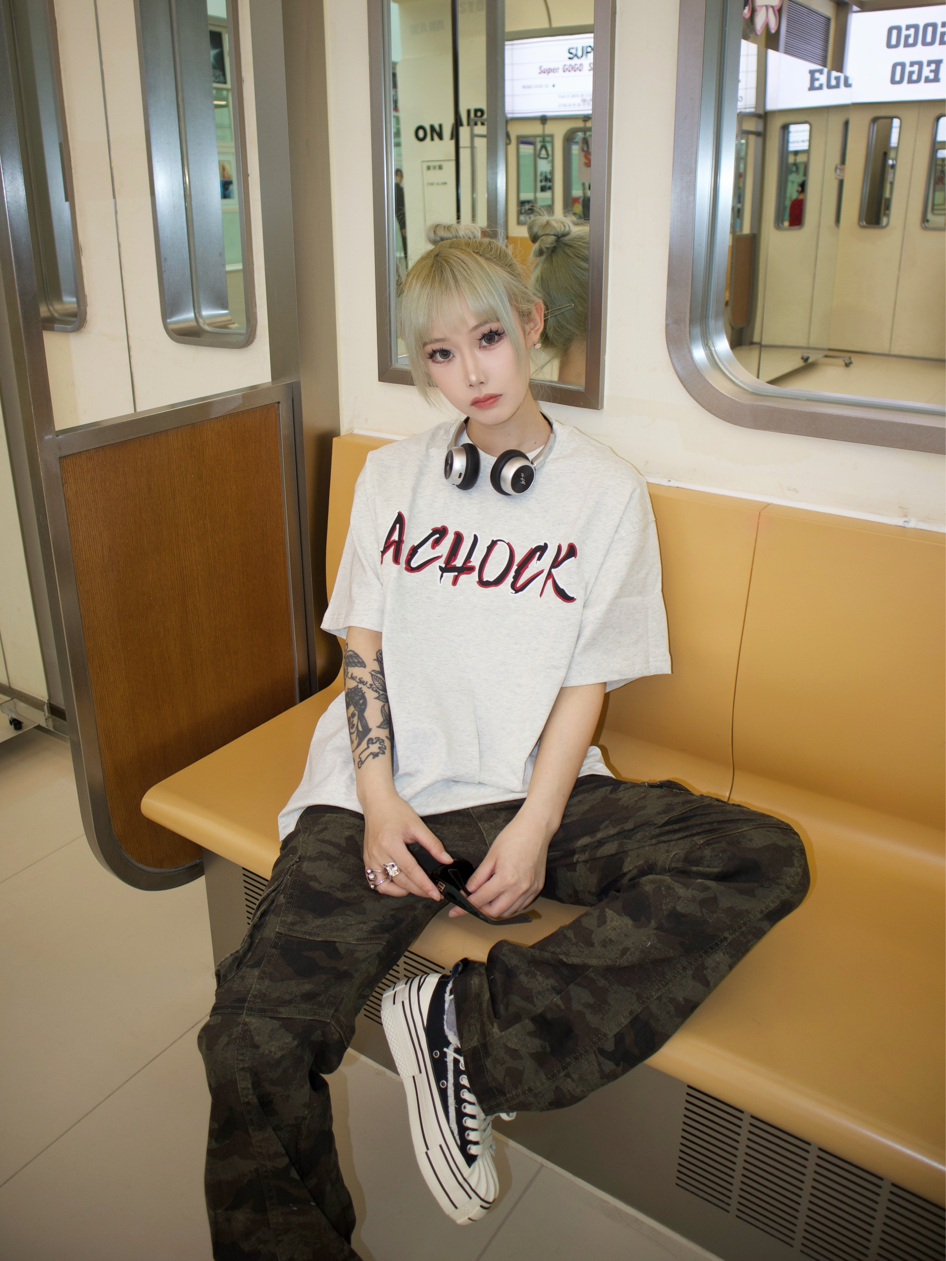夏日穿搭花灰短袖一上身 自动开启生人勿近模式🖤 红黑字母logo像泼上去的油漆罐 自带“别找我开会”的叛逆体质💥 迷彩裤才是真瘦腿外挂 膝盖褶皱都卡在显瘦位置🎯 黑白贝壳头属于越旧越好看型选手👟 上衣要买大一号才有慵懒感 走路带风的时候 红黑logo会和迷彩花纹玩对对碰
