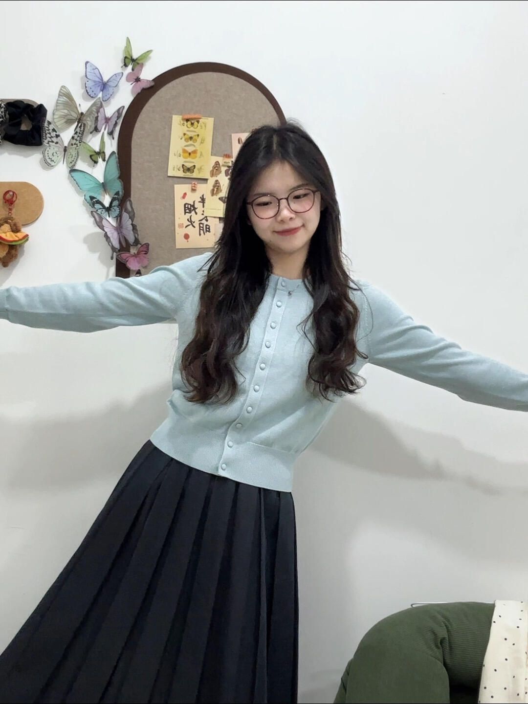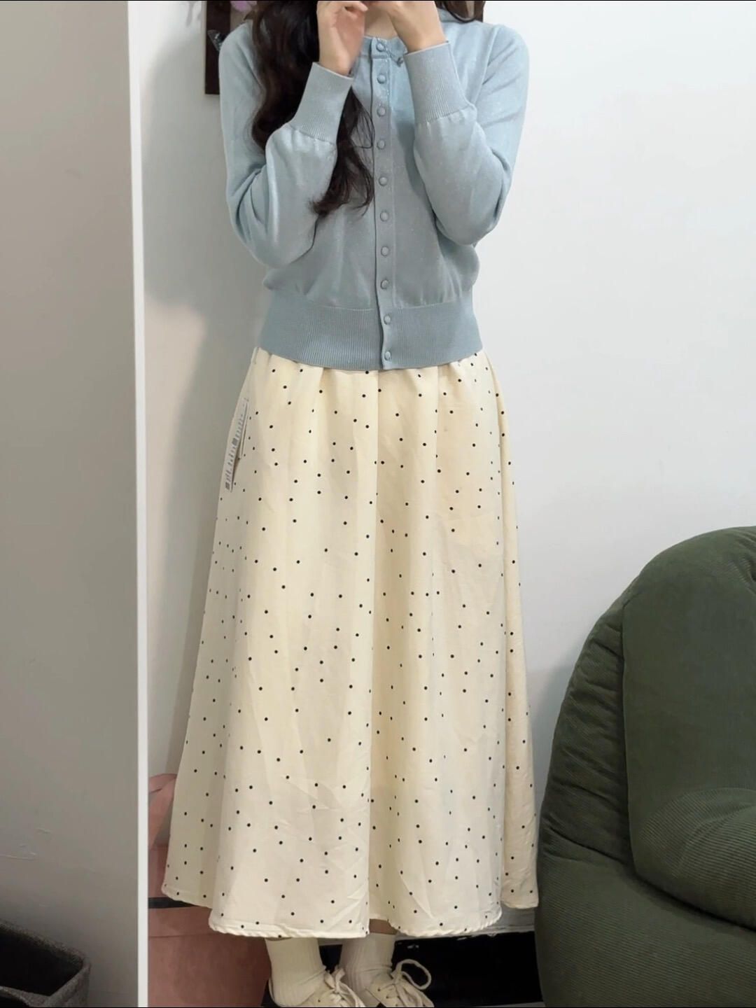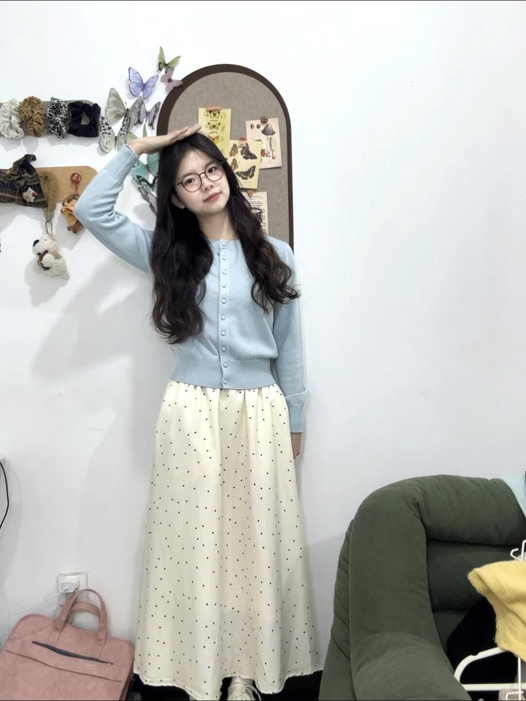 最近买到了版型超好的针织上衣!!料子很不错,贴身穿也很舒服,而且毛衣很有质感 拿在手里沉甸甸的 很垂顺,收腰设计很显瘦,搭配灰色百褶裙适合上班通勤穿,搭配波点半身裙就很春天,打算假期出去拍照的时候穿