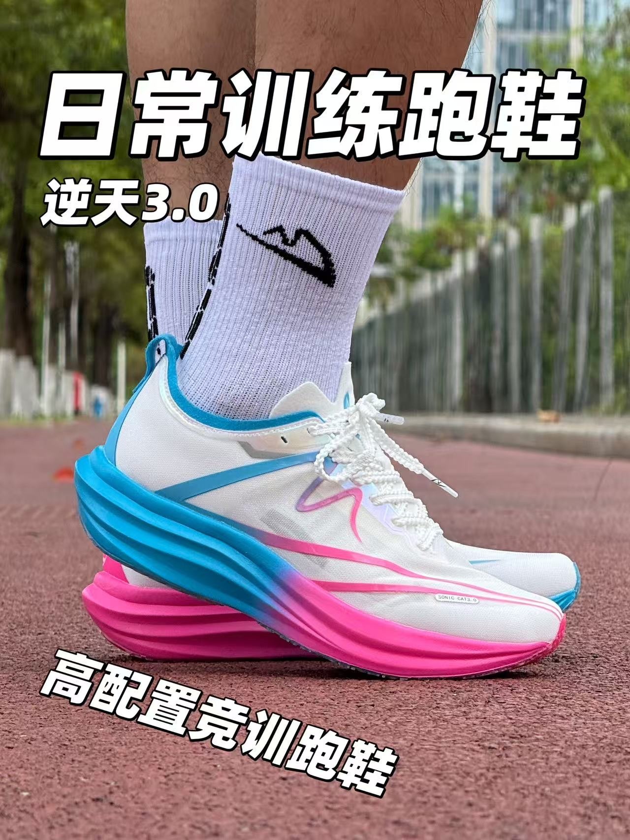 逆天3.0,国队训练同款 由音速猫和北体田径运动表现研究中心共同研发。 这次的鞋楦比上一代收窄了,更适合正常偏瘦脚, 我体验下来,它就是一双极具性价比的综训鞋。 慢跑通勤、训练体测都没问题, 只要你不是严重外翻,它都值得一试!