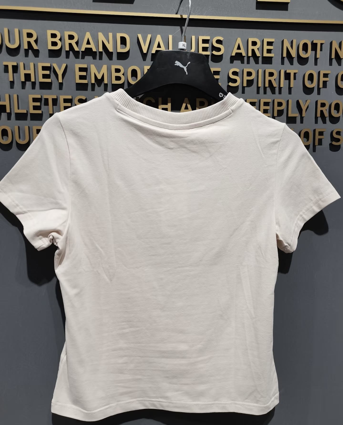 这件T恤是米白色超温柔,质感满满。胸口小小的美洲狮标志,低调又不失品牌特色,细节之处尽显精致。面料亲肤柔软,穿起来舒适度爆棚。不管是搭配牛仔裤打造休闲感,还是配上运动短裤去健身,都毫无压力。而且它真的巨百搭,轻松适配各种风格