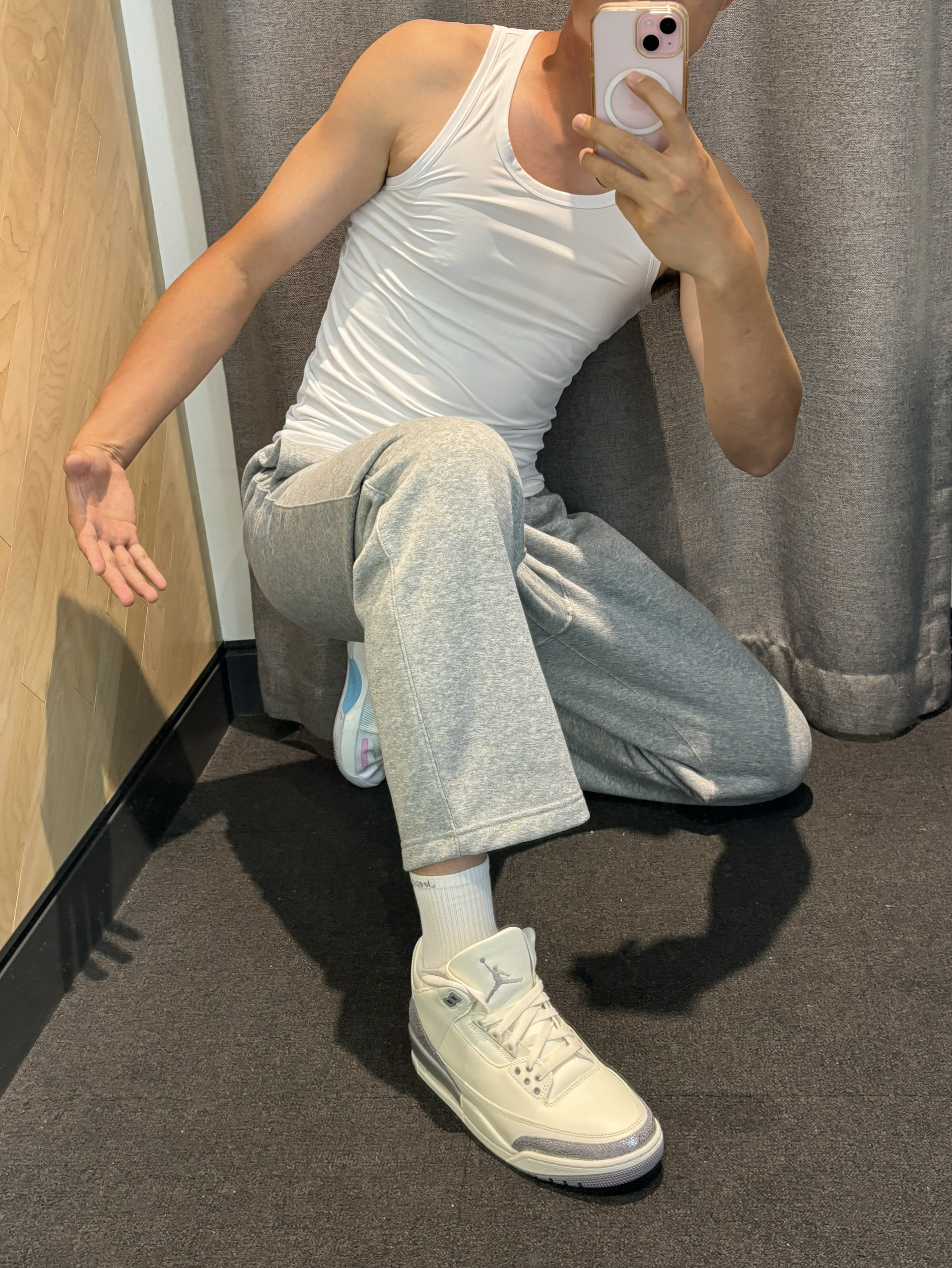 #白衬衫高光时刻 #疯夏玩水穿搭 #浪漫开衫温柔力 #好晴朗的夏日穿搭 白色也可以搭配出高级感 灰色凸显休闲街头潮流 👔白色背心 不要选择松垮的版本 👖宽松舒服,上宽下窄风格 👟aj3和aj4高级的皮质感 简单的色调黑白色即可