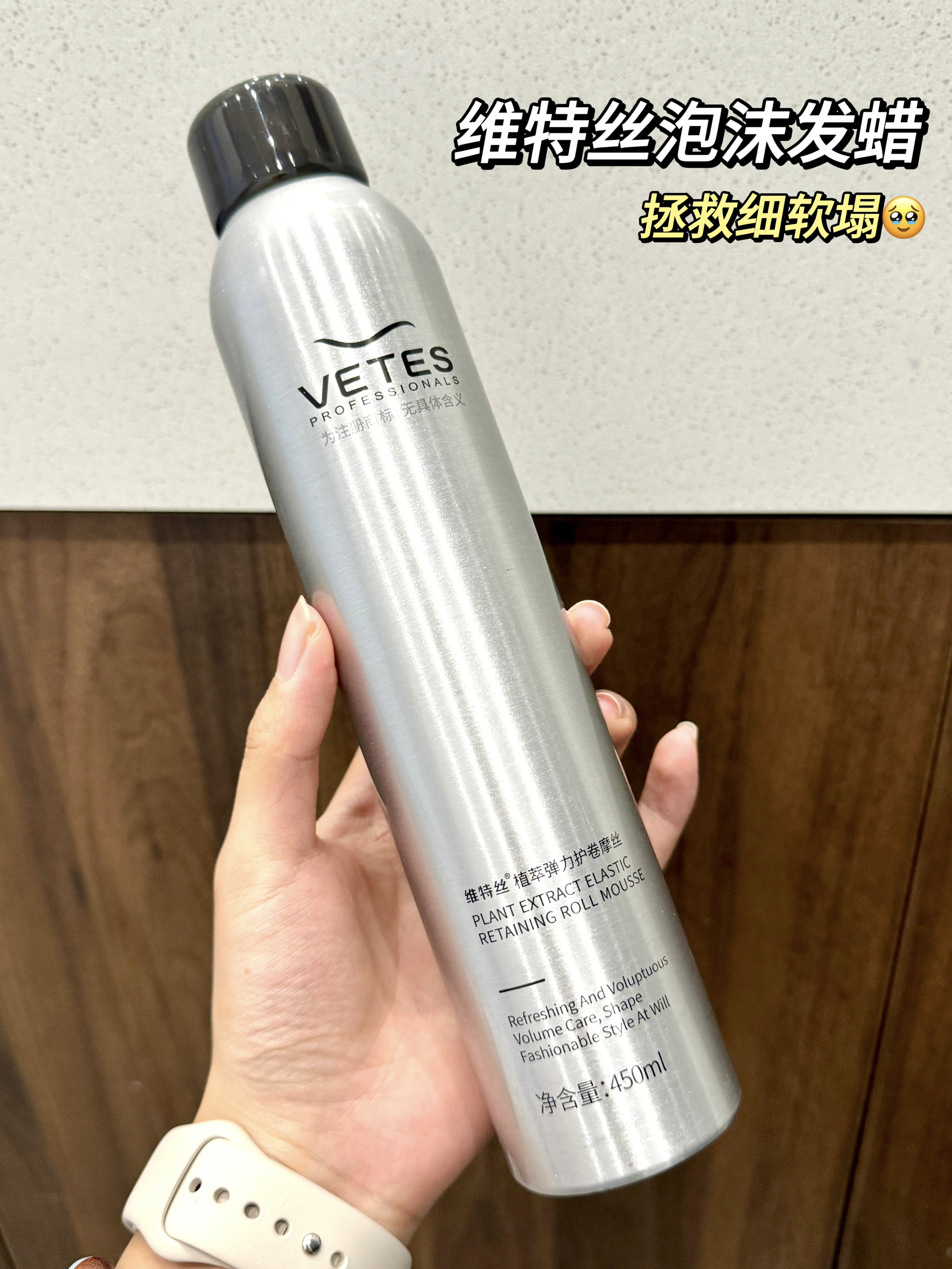 刚趁周末烫了一个卷发 理发师还说我的发质是细软塌 烫完头发后期的打理还挺费事的 但是用了这个维特丝的泡沫发蜡 真的给我省了很多麻烦事🥳 我烫完头洗完头发后头发没那么卷 就用它 是按压式的设计泡沫绵密 要摇晃挤出泡沫 涂在手上 像我是烫了发尾 每次涂在发尾处 第一次用的姐妹可以看一下说明 操作起来还是挺方便的~ 这样刚烫完的发型也能保持很久😆