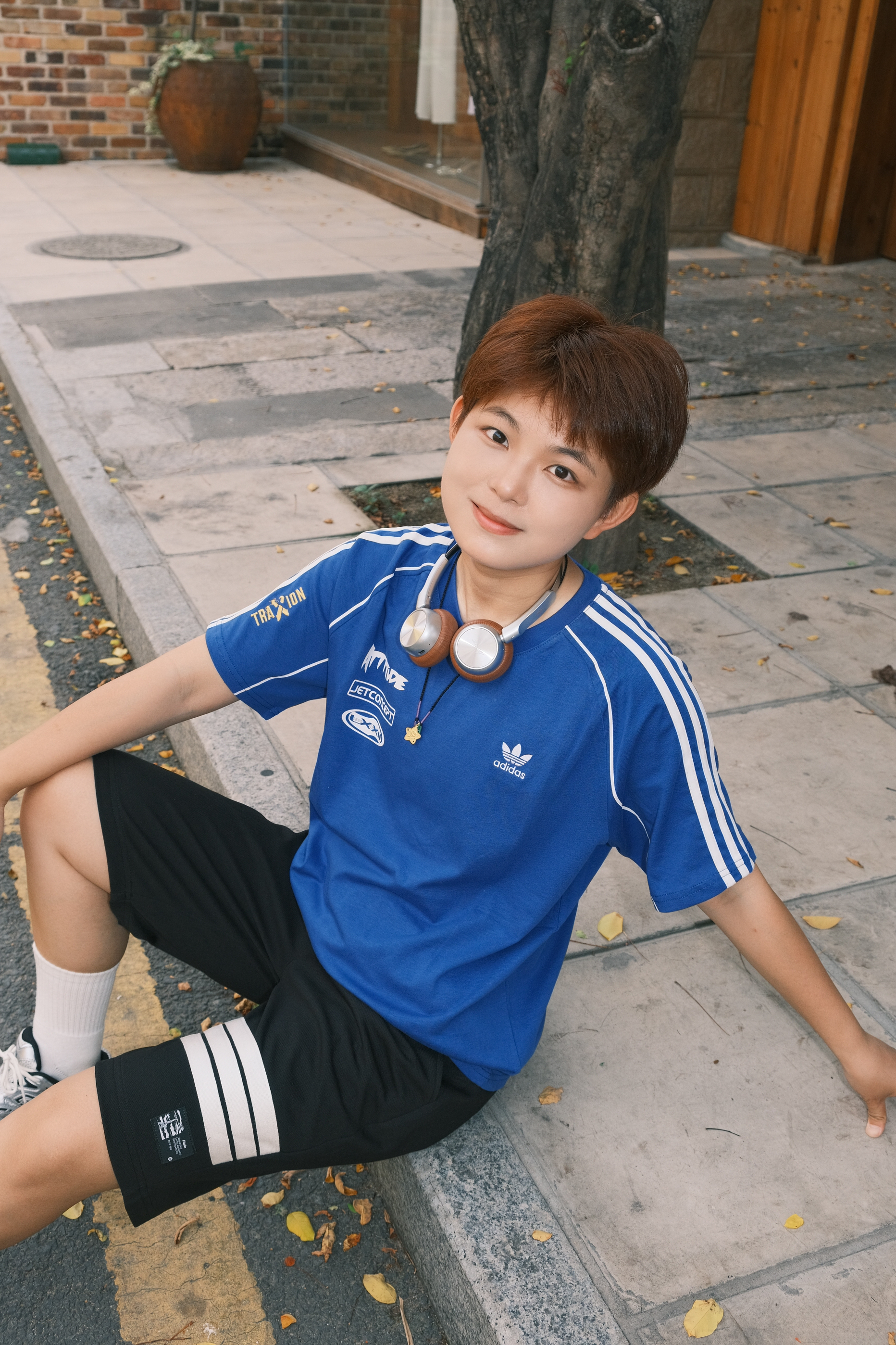 宝子们看过来👀 这套穿搭我真的爱惨啦!上身这件蓝色运动T恤,三条杠设计经典又时尚,穿起来活力满满💪 重点必须说说这条黑色短裤🩳 纯黑的底色超百搭,侧边的白色条纹太亮眼了,一下子就把整体造型的层次感拉起来了,简约又不失设计感~ 配上白色长袜和运动鞋,街头潮流风稳稳拿捏!脖子上再挂个耳机🎧 日常出街、运动健身这么穿都超合适,既舒服又好看,回头率绝对杠杠的!谁穿谁是时尚小达人,信我就这么搭😎