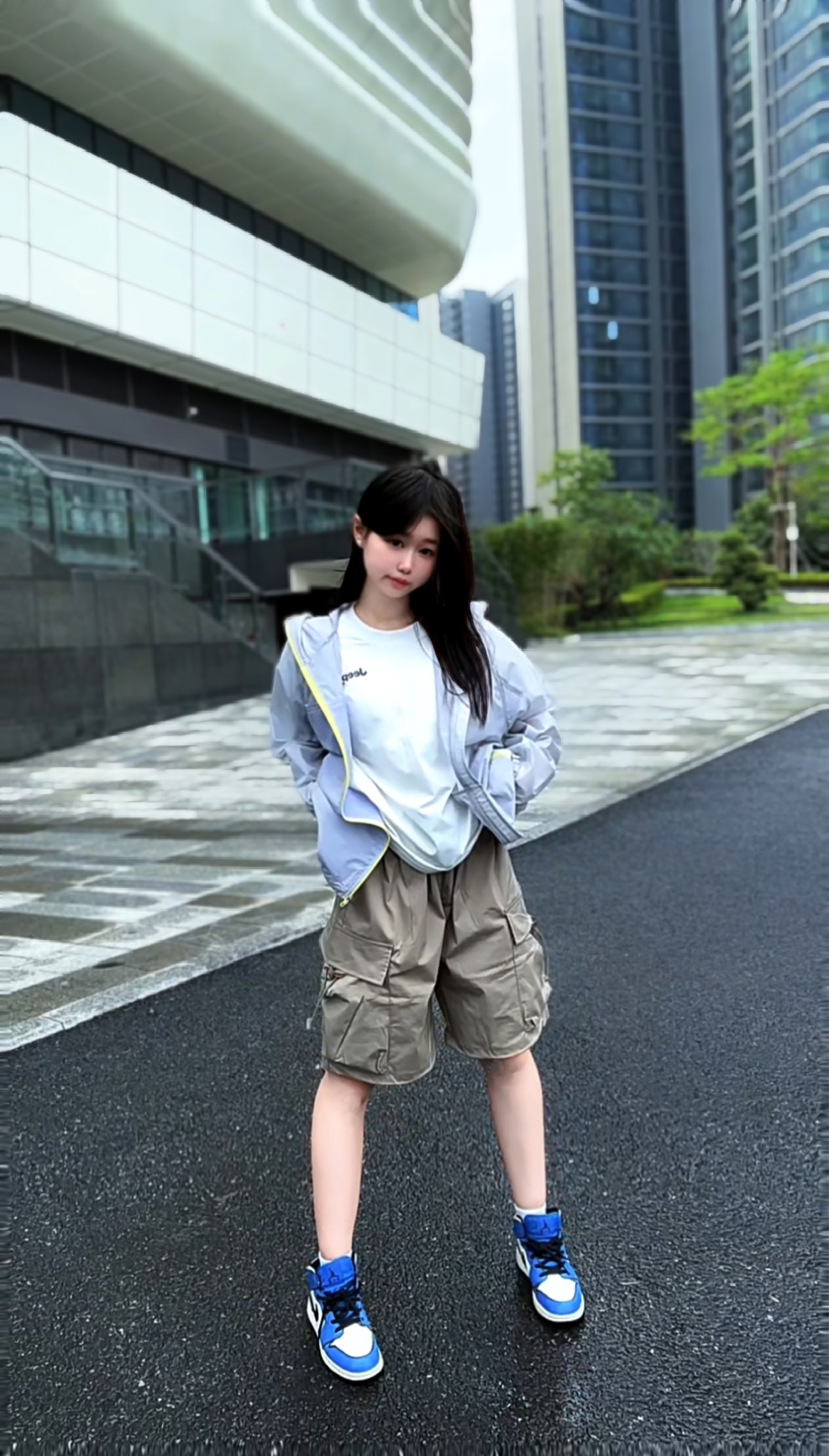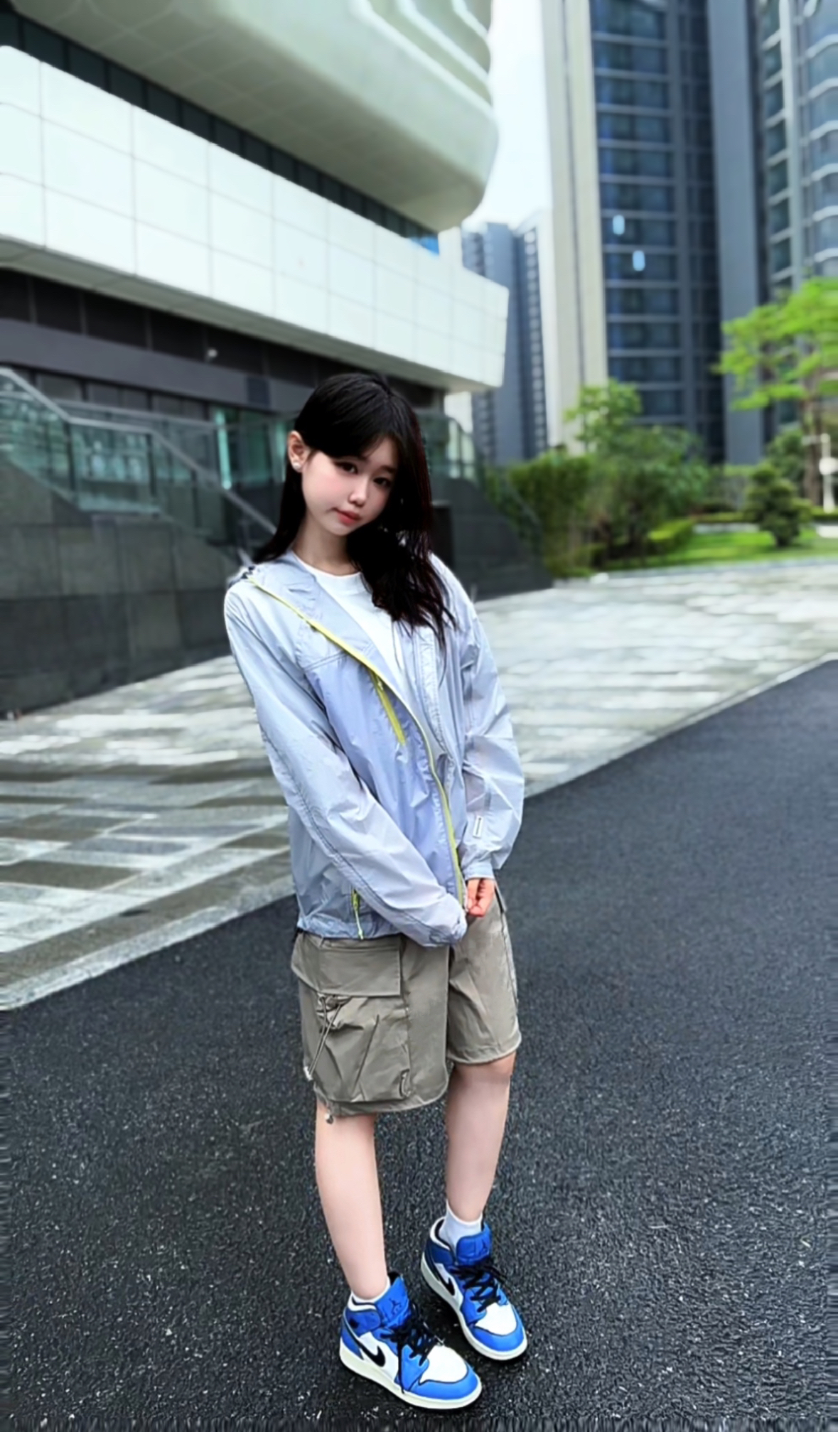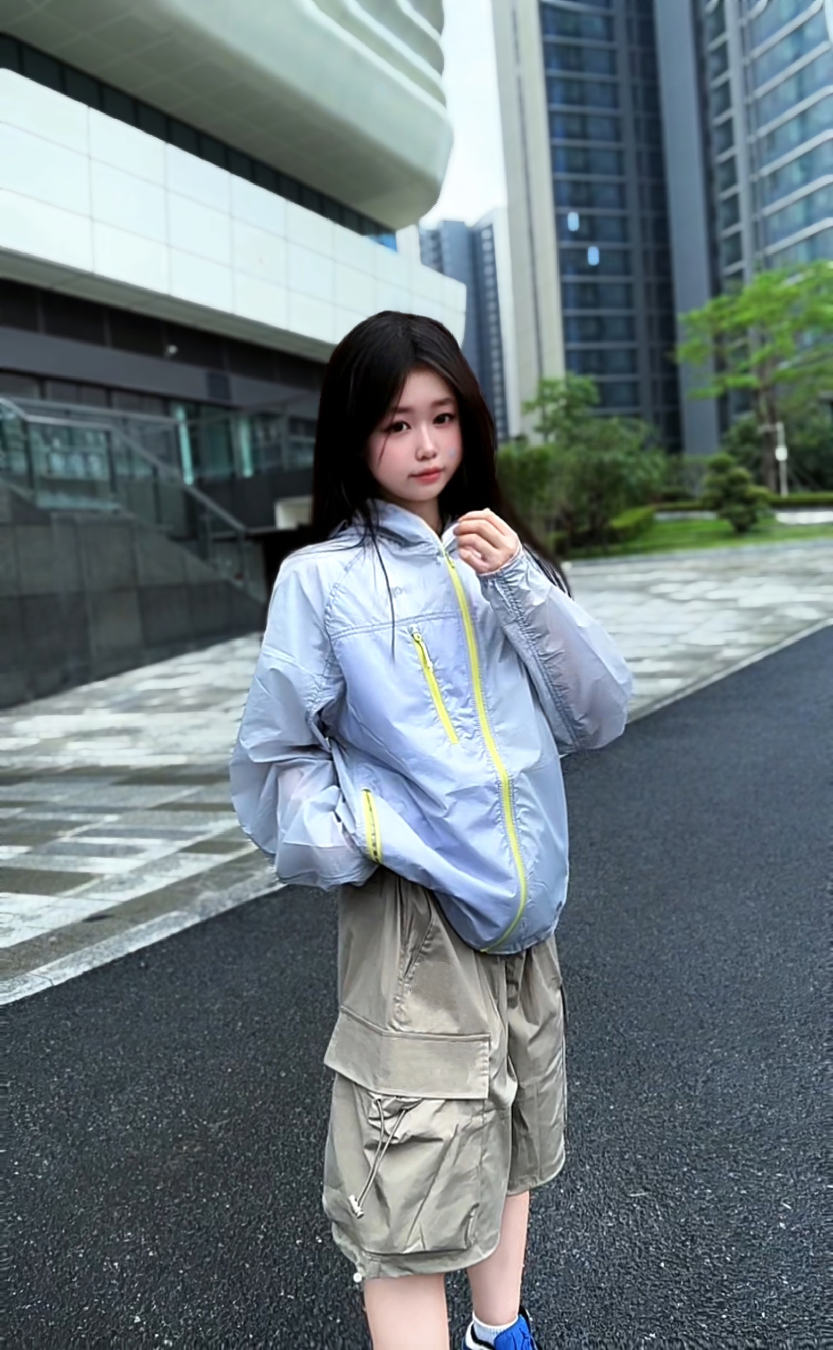 今日出街look 浅灰色防晒外套,轻盈材质的 搭配亮眼黄拉链,慵懒氛围感拉满 内搭基础白T,干净纯粹 下身搭配卡其色工装短裤 多口袋设计实用性与潮流感兼备 宽松版型修饰OK 这套穿搭既舒适自在还帅
