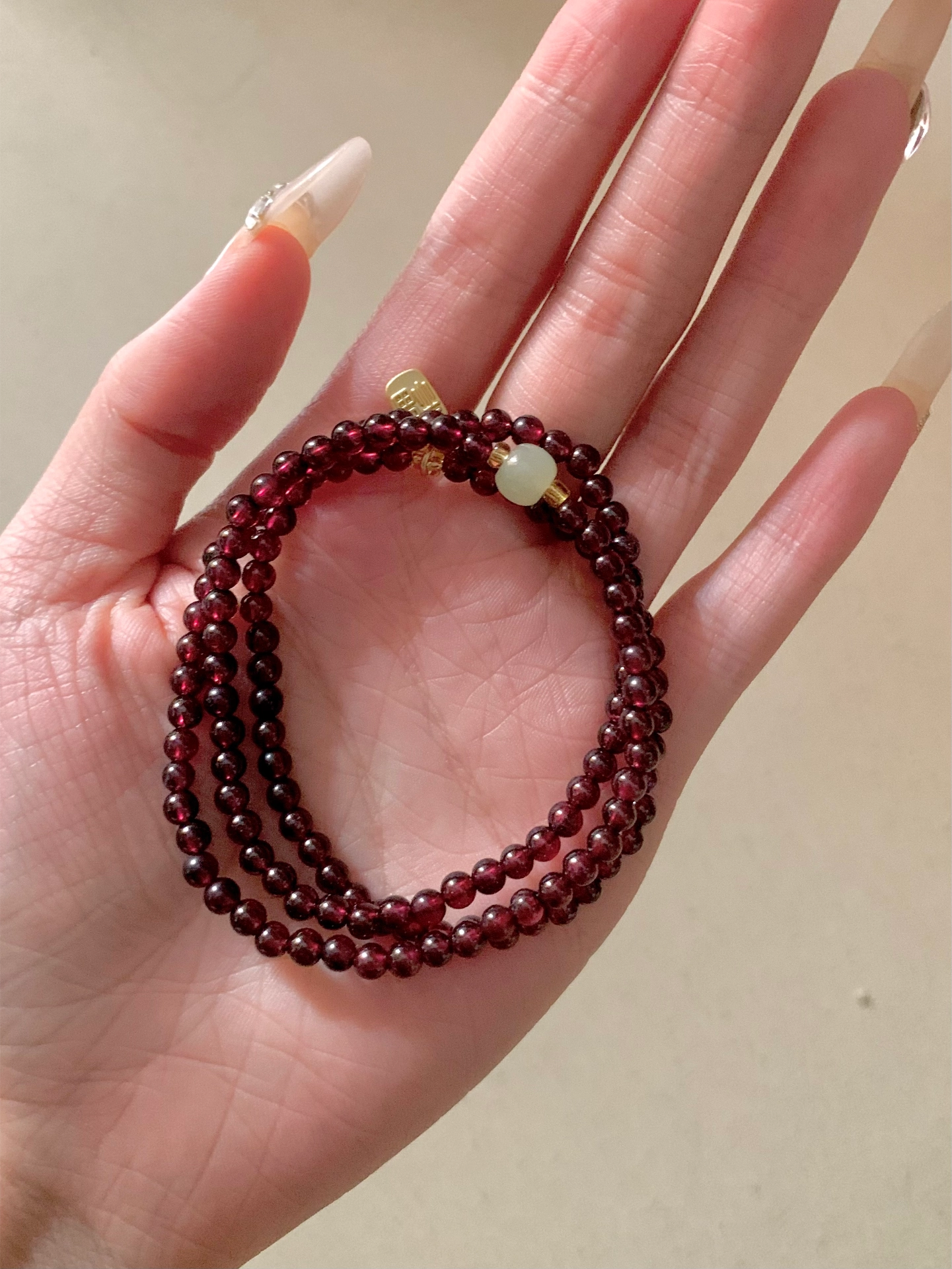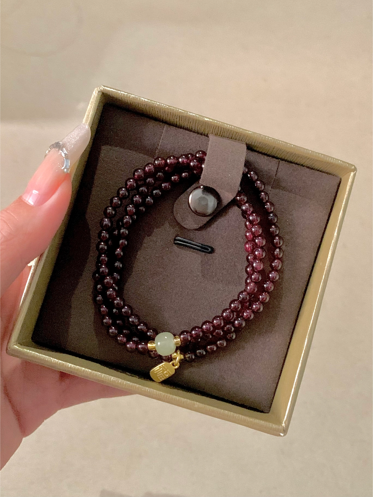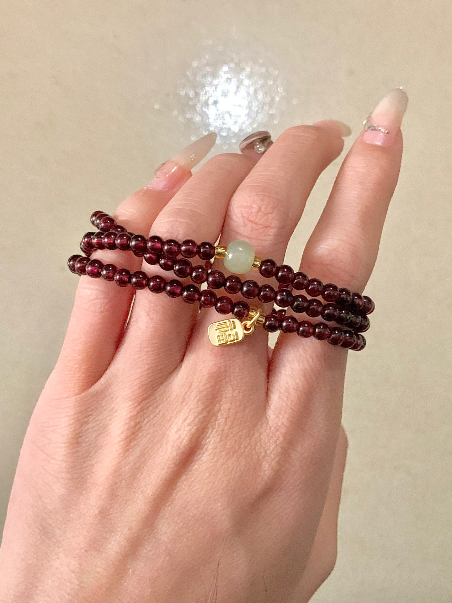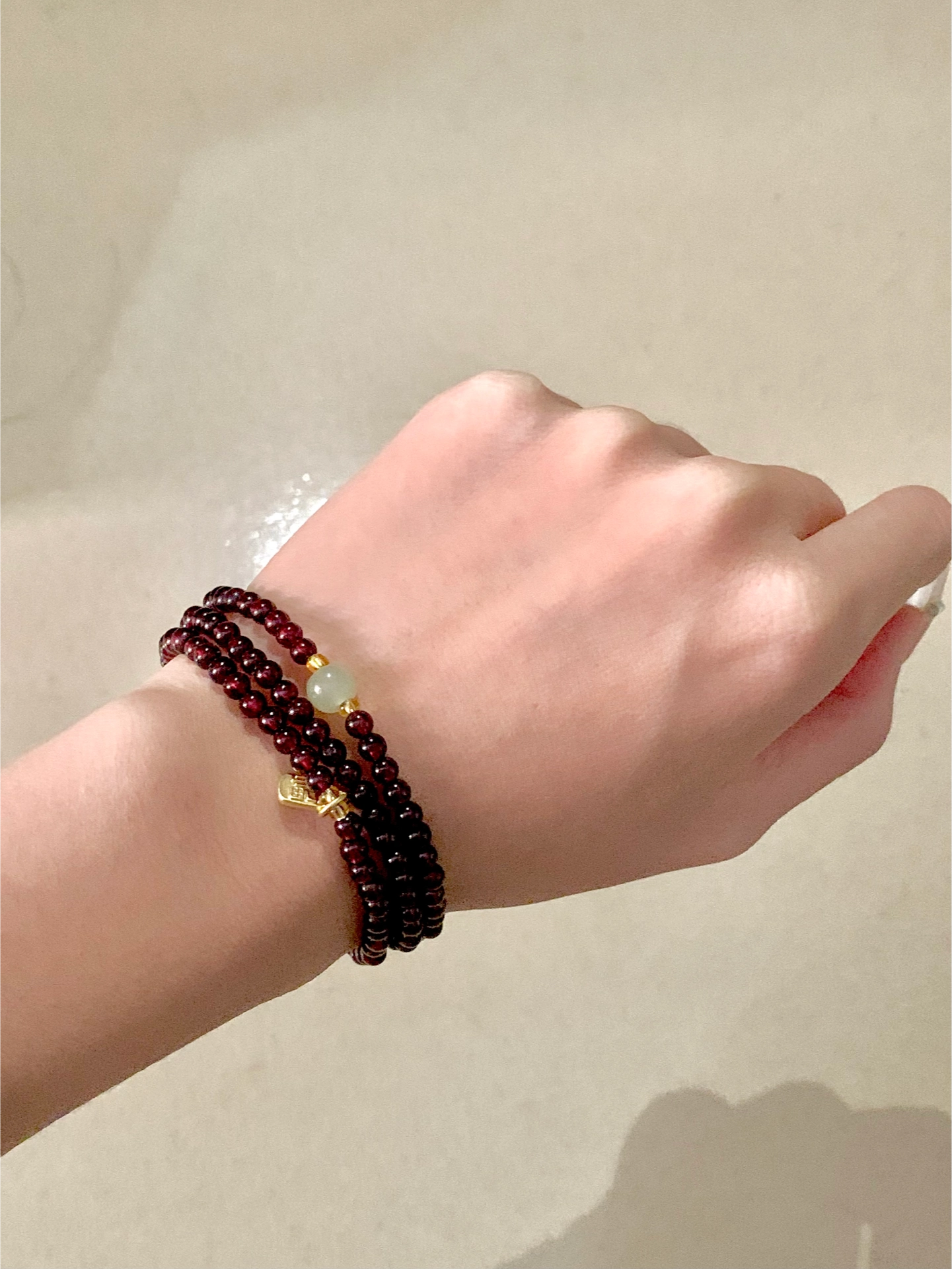 不愧是我熬夜挑选出来的手串!✌✌✌ 榴玉新中式手串好米啊🙌🙌🙌🙌🙌 三层叠戴搭配福牌设计元素~🤳 珠子质感光泽好好 上腕好显白又复古 颜色感觉给人一种喜庆 敲适合本命年的姐妹戴 日常佩戴 也可以来送妈妈或女朋友呢!🤣🤣🤣🤣🤣🤣
