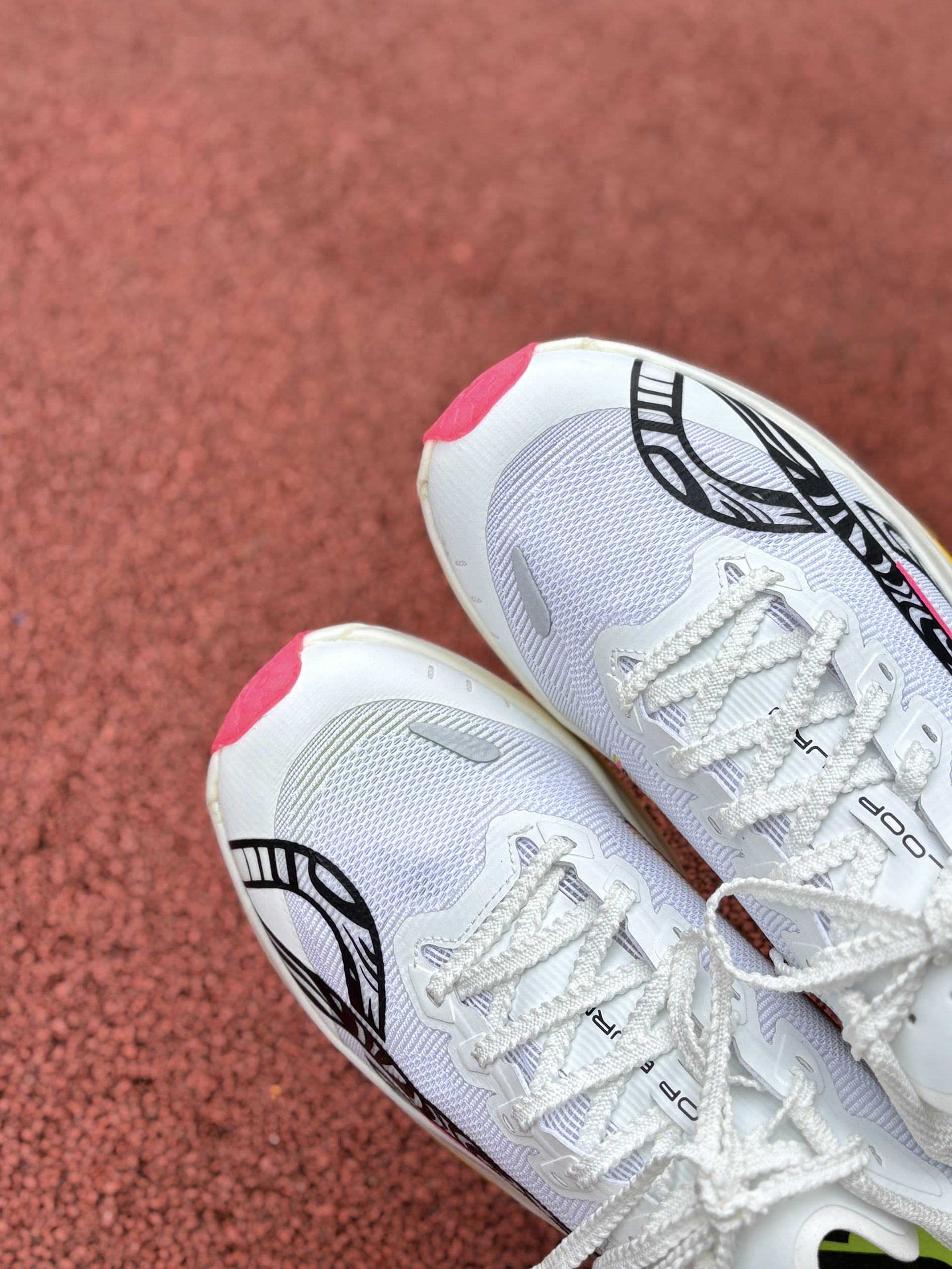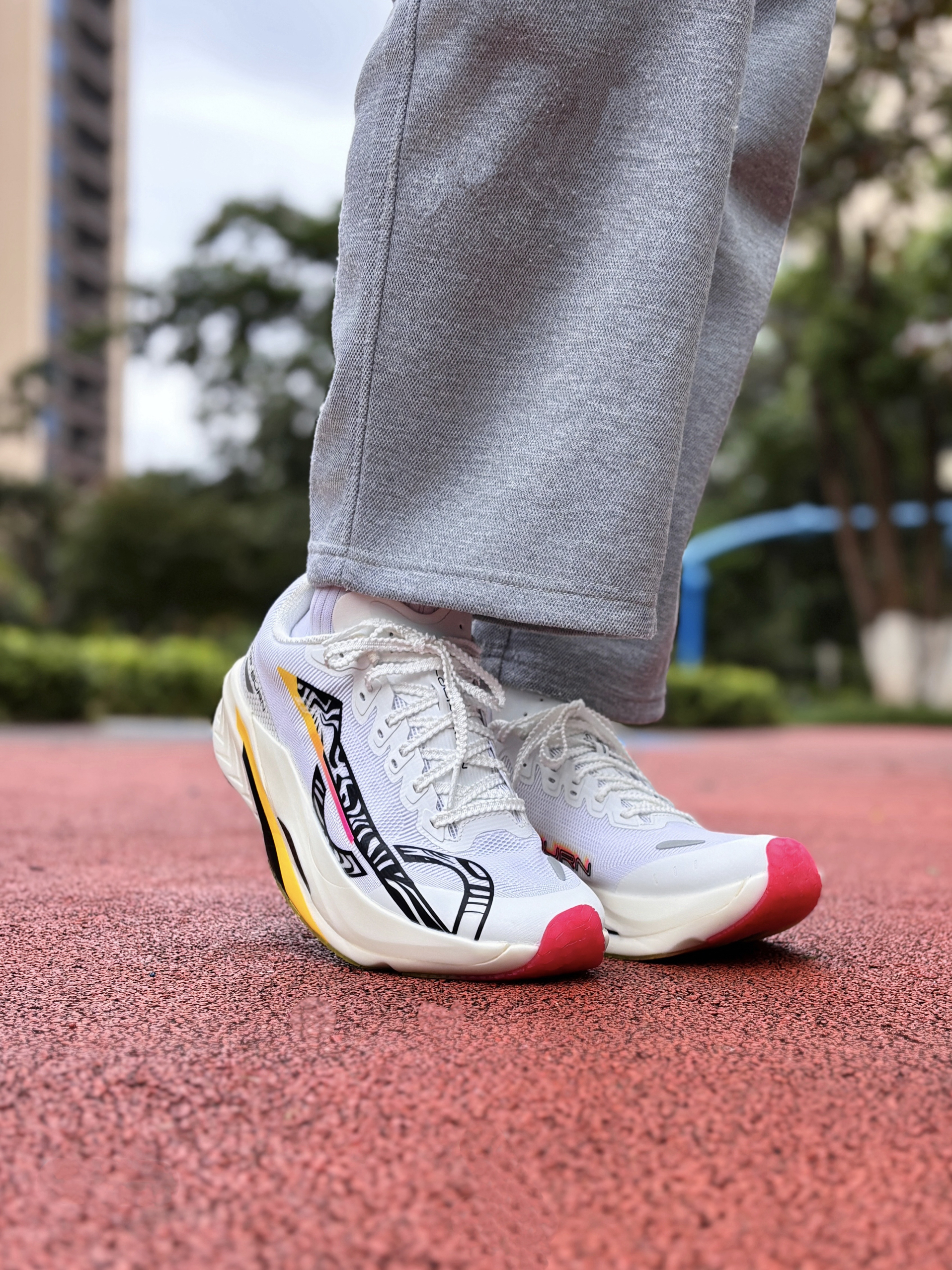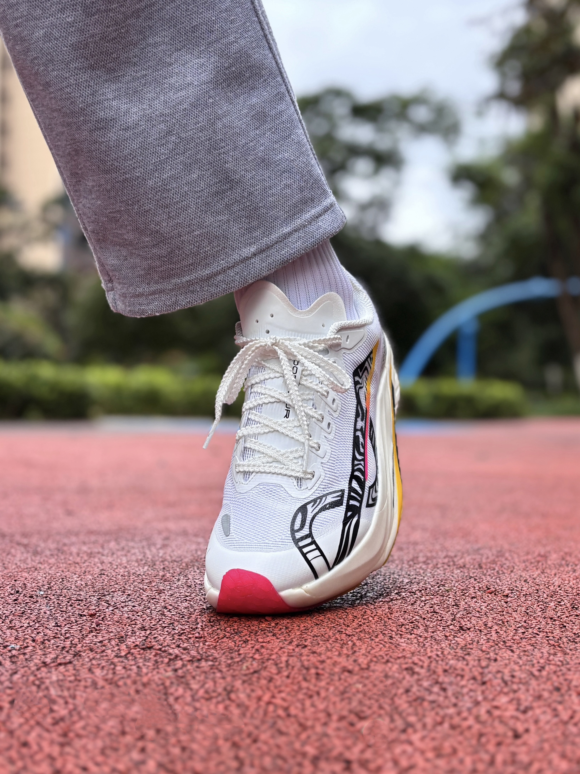 💁♂️:Hi~ 这里是大大纳mi~ 派燃烧5.0Pro的流光溢彩配色到手啦!实物比图片还炫💫鞋面在不同光线下会泛出那种很高级的幻彩反光,跑起来hin吸睛!这次的颜值真的戳中我了~ 作为穿过前代的老用户,这次5.0Pro的核心升级点还是能清晰感受到的: 脚感更聪明了!还是熟悉的Π³三明治中底+异型镂空碳板组合,但氮气发泡调校的软弹了一些,落地有缓冲、蹬地有回弹的韧劲儿。官方说回弹率有75%,跑起...
