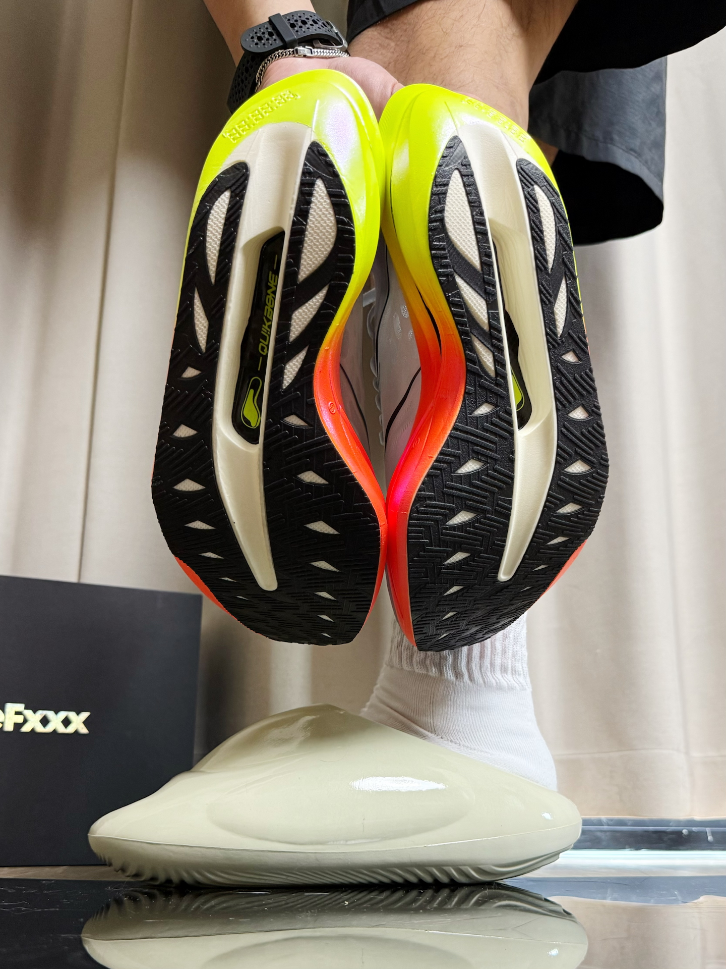 这双荧光绿跑鞋简直为竞速而生!上脚轻到像踩空气,前掌推进力超强,跑间歇训练时蹬地那下直接弹出去,碳板反馈特别干脆。🎉🎉🎉🎉🎉 鞋面网眼透气不闷脚,竞速鞋里算舒适度很高的了🙌🙌🙌🙌 荧光绿配色夜跑超吸睛,反光条设计也很安全,专业跑者冲速度选它准没错,穿上感觉自己离 PB 又近了!👏👏👏👏