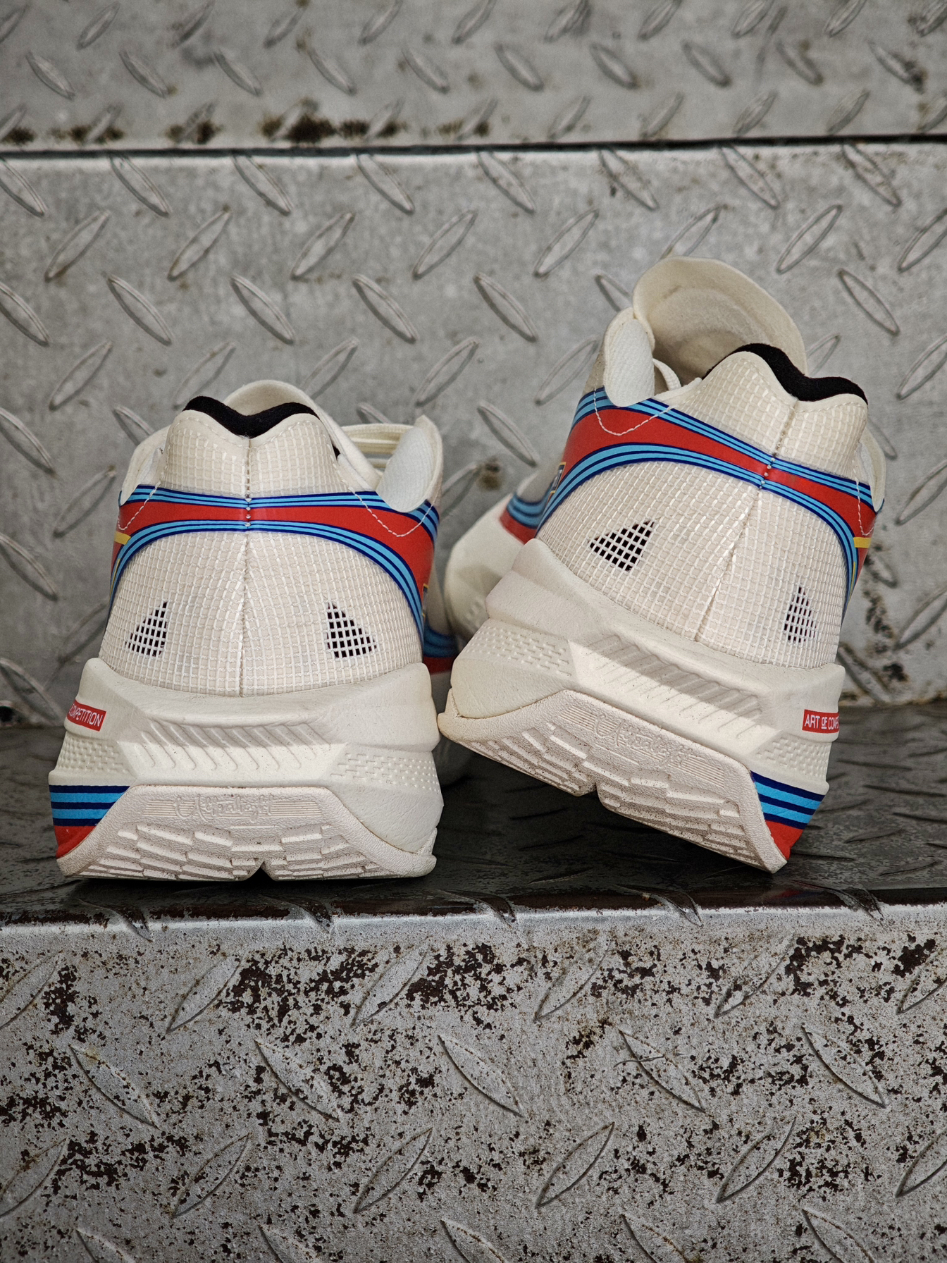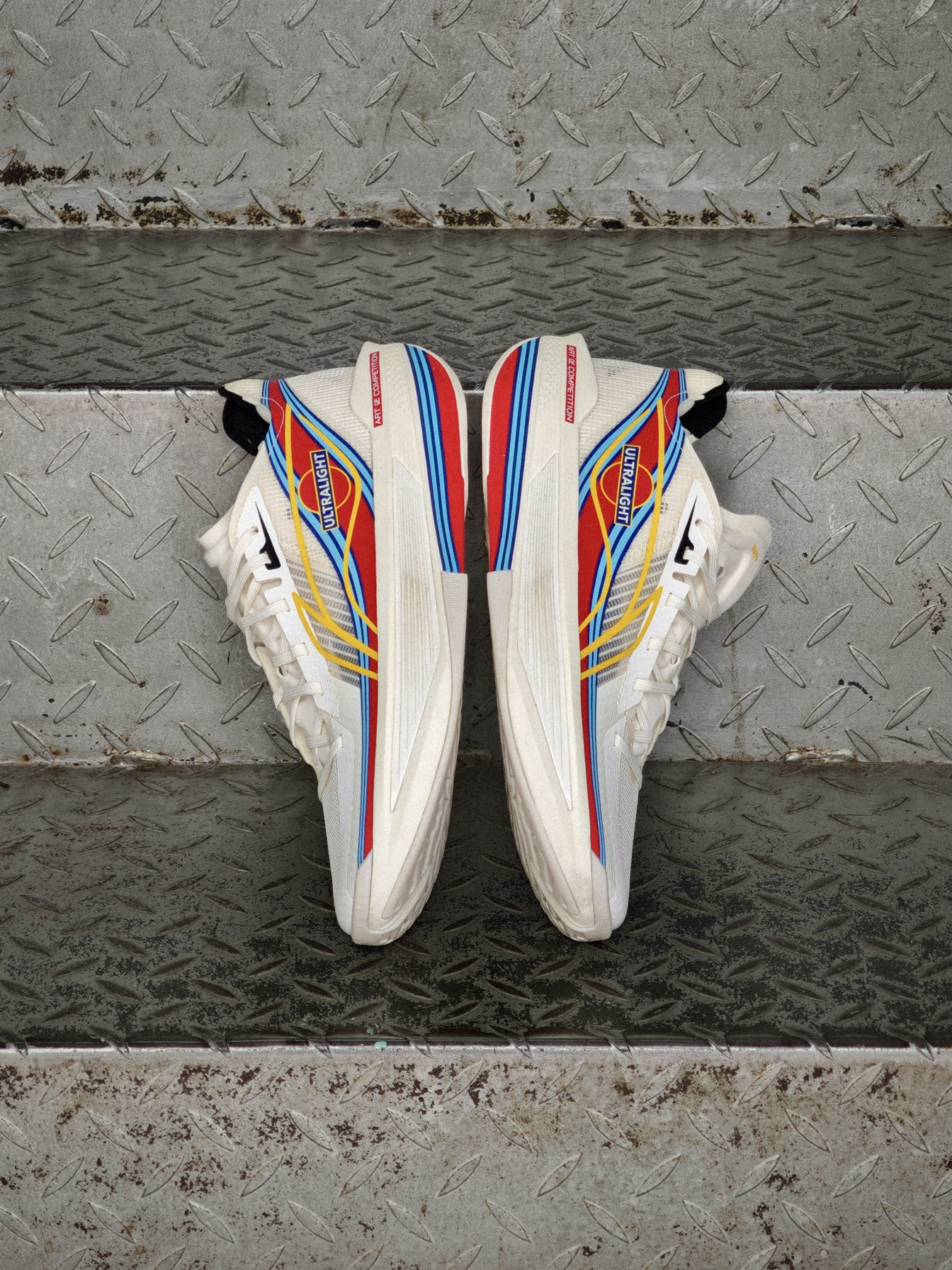 赛车涂装+球鞋,有没有搞头? 最近宁子的爆款球鞋-超轻2025又曝光了一组以赛车涂装为主题的系列套装。 其中这双白色真的太对味了!特别是贯穿鞋身侧面的流线感条纹,像是对应了拉力赛车的显眼涂装,再次提升了整鞋的速度感。 兄弟们觉得怎么样?想看全系列的开箱吗?评论区交给你们!