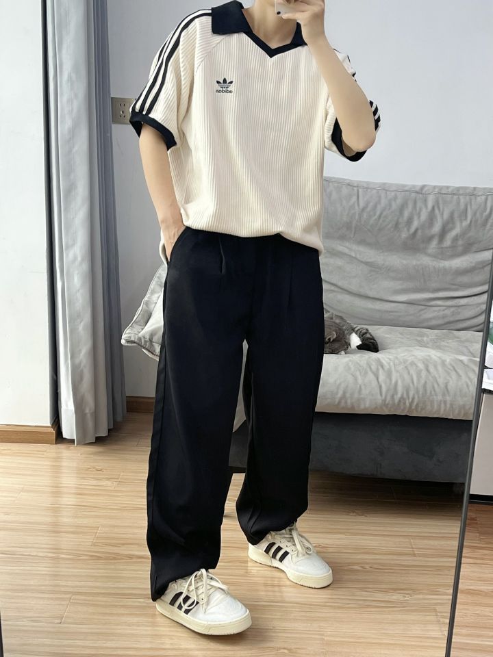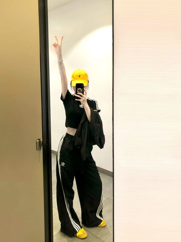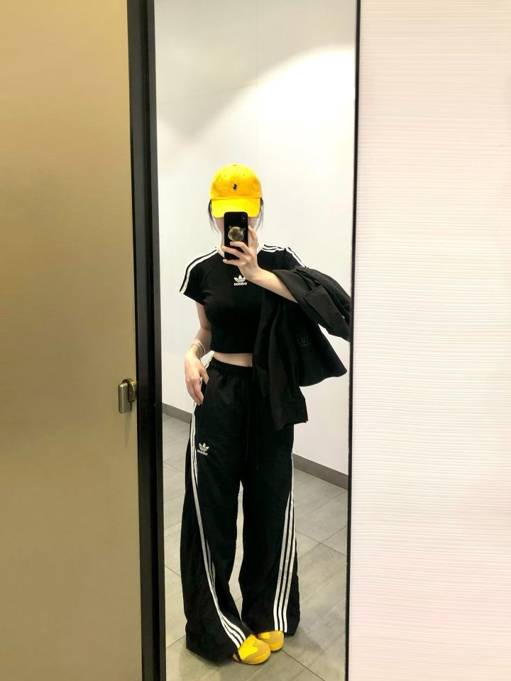 《 好喜欢这种调调 》|||⚫️🟡 . 芜湖 ~ Jennie同款穿上啦 🥳 . 👔:Adidas短袖 👖:Adidas扭扭裤 🪄:西太后手链 👟:亚瑟士鬼冢虎 #夏日胶囊衣橱 #视觉显高穿衣法则 #剪得物扣最快的一双鞋