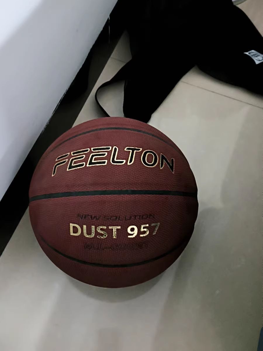 作为学生党,打球费球又囊中羞涩,飞盾957篮球简直是救星! 它和李宁957配置一样,橡胶中胎、丁基内胆、尼龙缠纱,质量超靠谱。 表皮颗粒感十足,摩擦力强,我手小也能轻松抓球。打室外粗糙场地,耐磨效果一流,打了好几个月,磨损都不明显。 关键价格只要两位数,还送球包、气筒、球针,入手不亏,爱打球的学生党别错过!