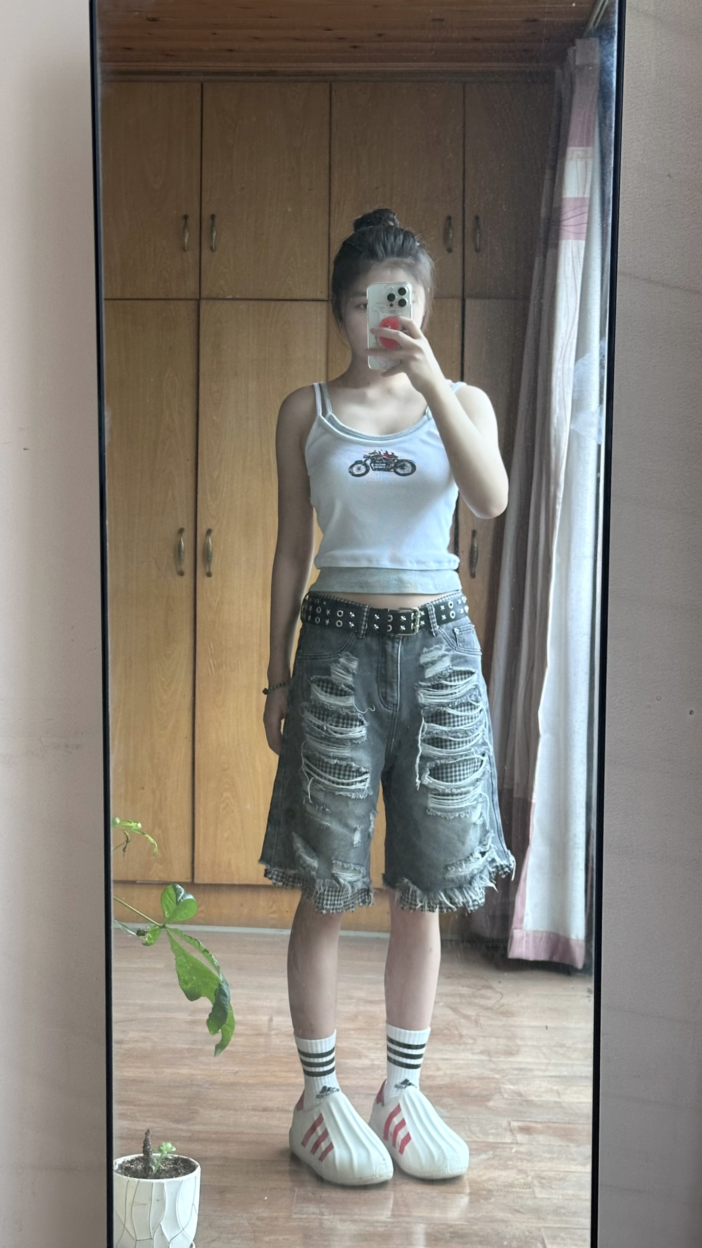 雨天搭配一个阿迪外套➕五分短裤 完全适配!!我真的好爱穿阿迪 还有这个小丑鞋真的很防水哈哈哈完全雨鞋~
