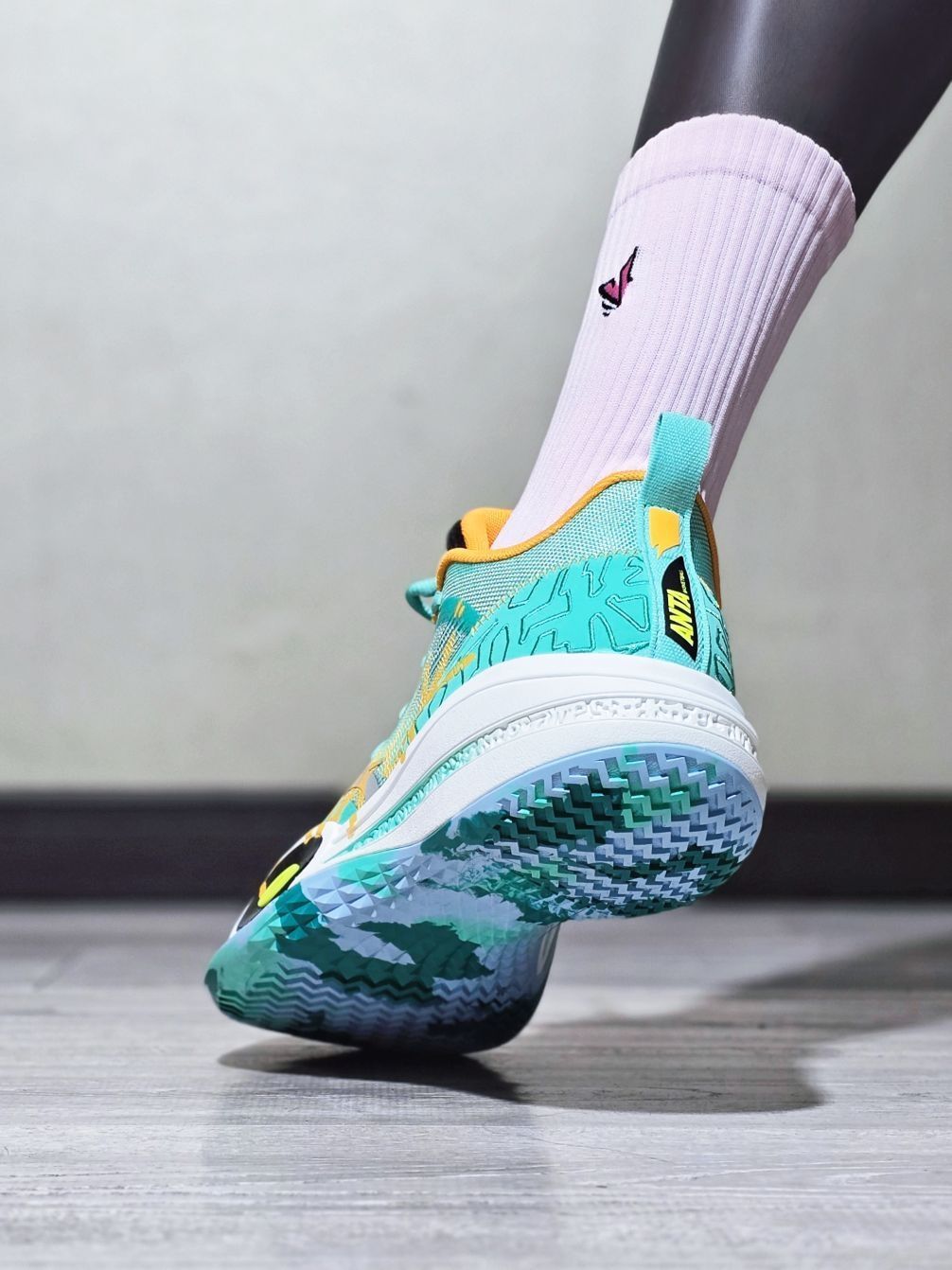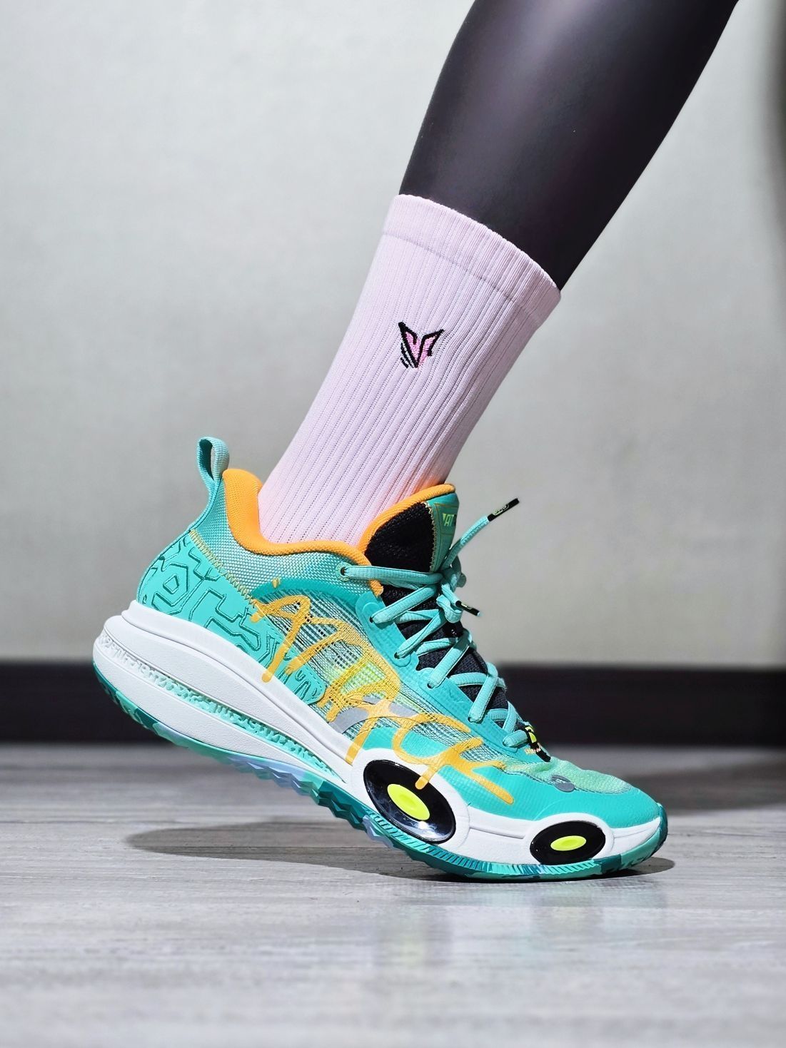 袜子是维动的游乐园pro系列运动袜。外观就是突出一个简洁易搭,运动或休闲穿都没毛病。性能方面防滑缓震透气都到位了,适合各种运动,性价比还不错! 球鞋是踏子新出的突袭1代,典型的后卫鞋,适合速度突破型打法!