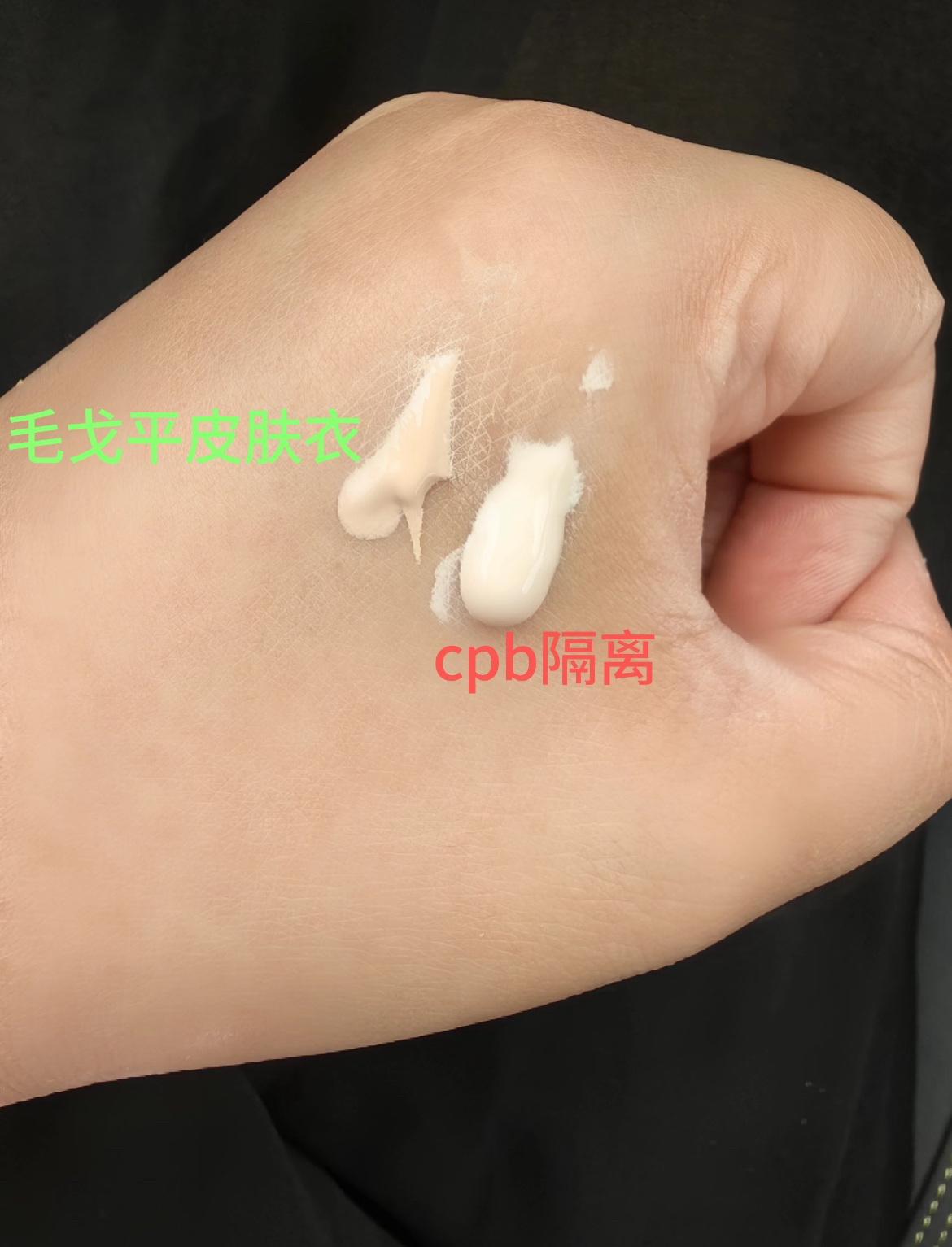 +7直播间三支装用了红包后价格还算美丽,就激情下单了… 结果今天试了下,两边脸一边用cpb隔离,一边用毛戈平皮肤衣,照片看着不明显,但是怼脸看还是很明显。(我拍了照但是前置摄像头还是会失真,照片拍出来是涂毛戈平那半边更好,但肉眼看是cpb的半边好) 挤在手上的时候也能明显看出cpb更白更水润些,毛戈平的颜色虽然暗一点,流动感差点,但上脸其实没有颜色,也很好推开。 还找了位没化妆的同事试了下,在她脸...