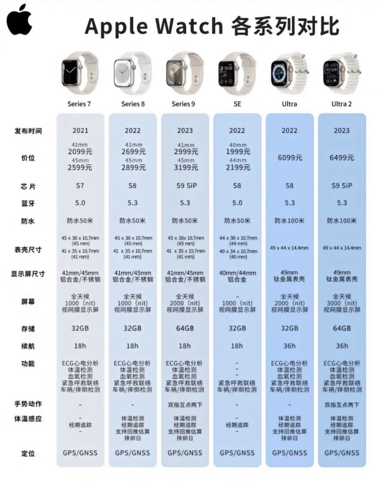2025年苹果手表怎么选? 今天盘点几款新手小白可以闭眼入的 Apple Watch,下面一起来看看吧 Series 9 引入了手势控制和创新的双击功能,通过先进的传感器实现直观操作,极大提升了可访问性和可用性。 Ultra 2 支持可定制的操作按钮,用户可以轻松启动锻炼或标记分段,并且搭载了双频GPS和新的定位算法。 SE 2022 入门级产品,延续了核心的 Watch 体验,并且价格相对较为亲...