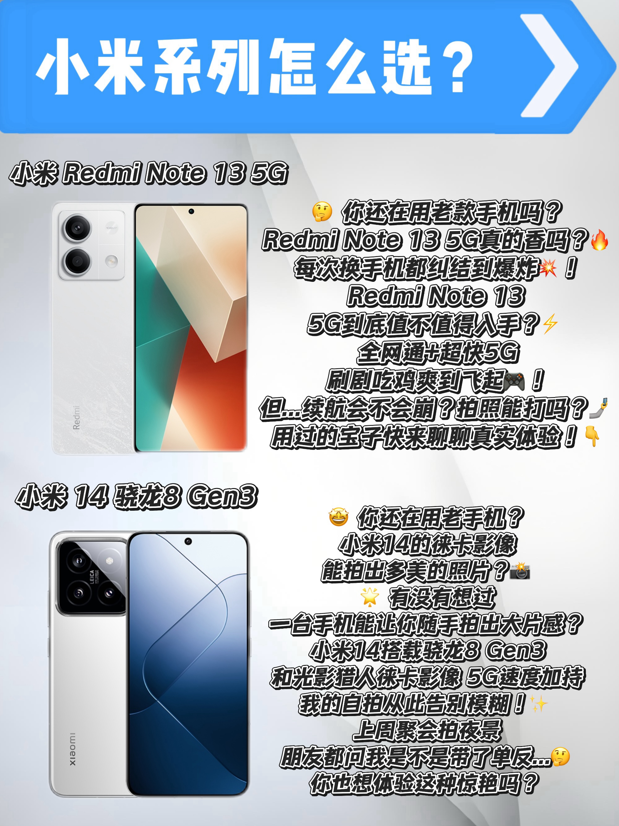 本篇笔记关联了MI/小米 14 5G 手机 徕卡镜头 长焦 直屏 全网通 护眼 汽车互联 黑色、MI/小米 14 5G 手机 徕卡镜头 长焦 直屏 全网通 护眼 汽车互联 岩石青、Redmi/红米 Note13 5G 手机 直屏 全网通 四窄边 超细 大电量 柔性 星沙白等商品,为用户提供真实的使用体验和购买参考。