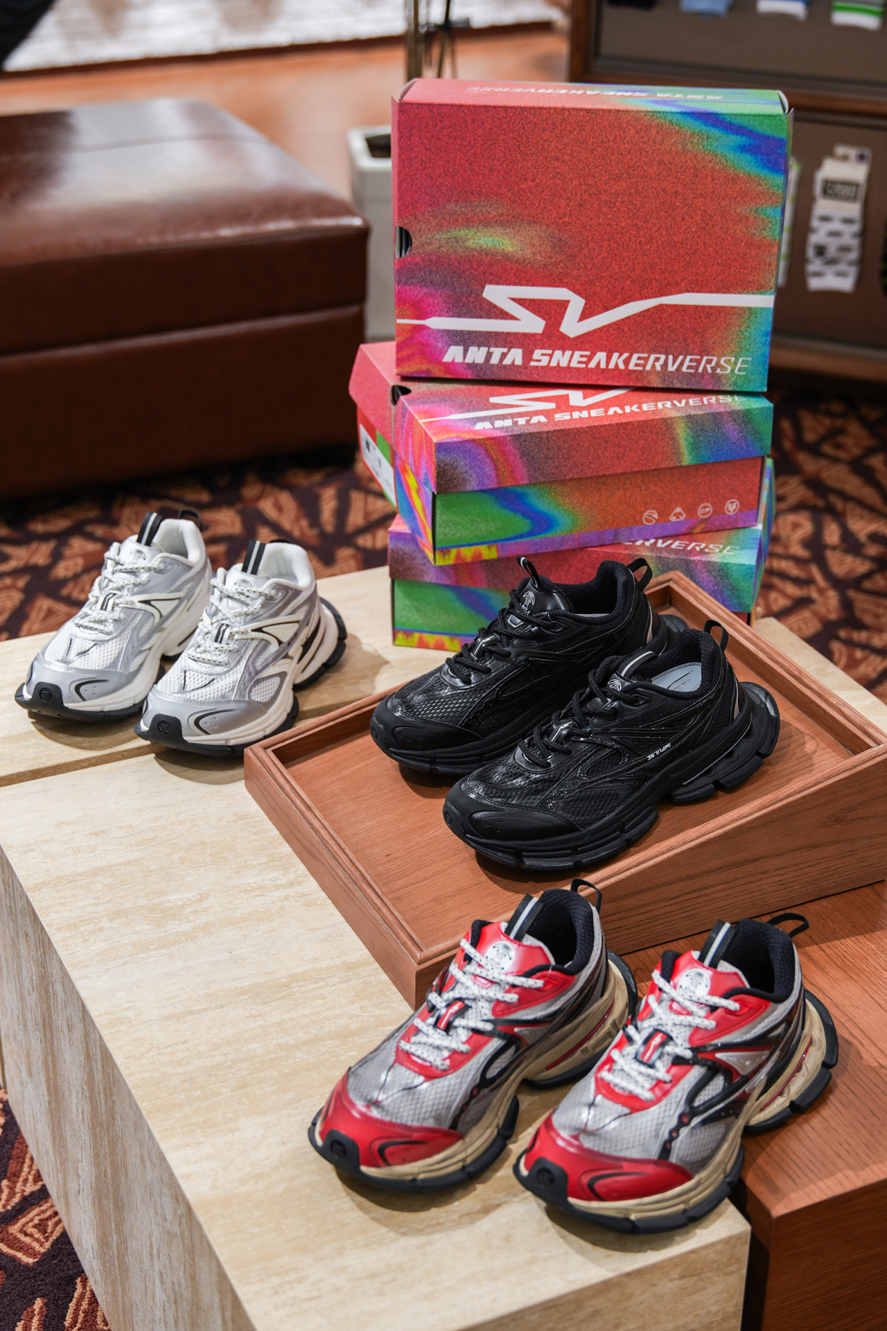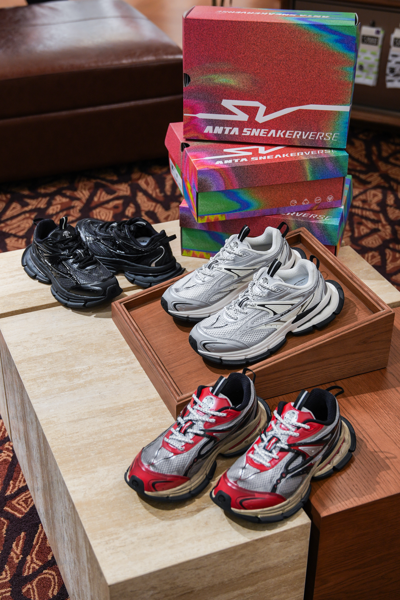 ANTA SNEAKERVERSE SV Impulse以三款经典配色重新定义「不费力时尚」:黑红撞色如暗夜火焰,白银配色似流动金属,黑白经典款则化作永不过时的穿搭留白。鞋身采用流线型低帮设计,网布与皮革拼接出层次感,鞋头微微上翘的「微笑弧度」为整体注入俏皮感,从街头到职场皆能轻松适配。 上脚体验堪称「行走的云朵」——全掌中底轻软回弹,搭配鞋垫透气孔设计,长时间通勤也能保持足部干爽;鞋口海绵填...