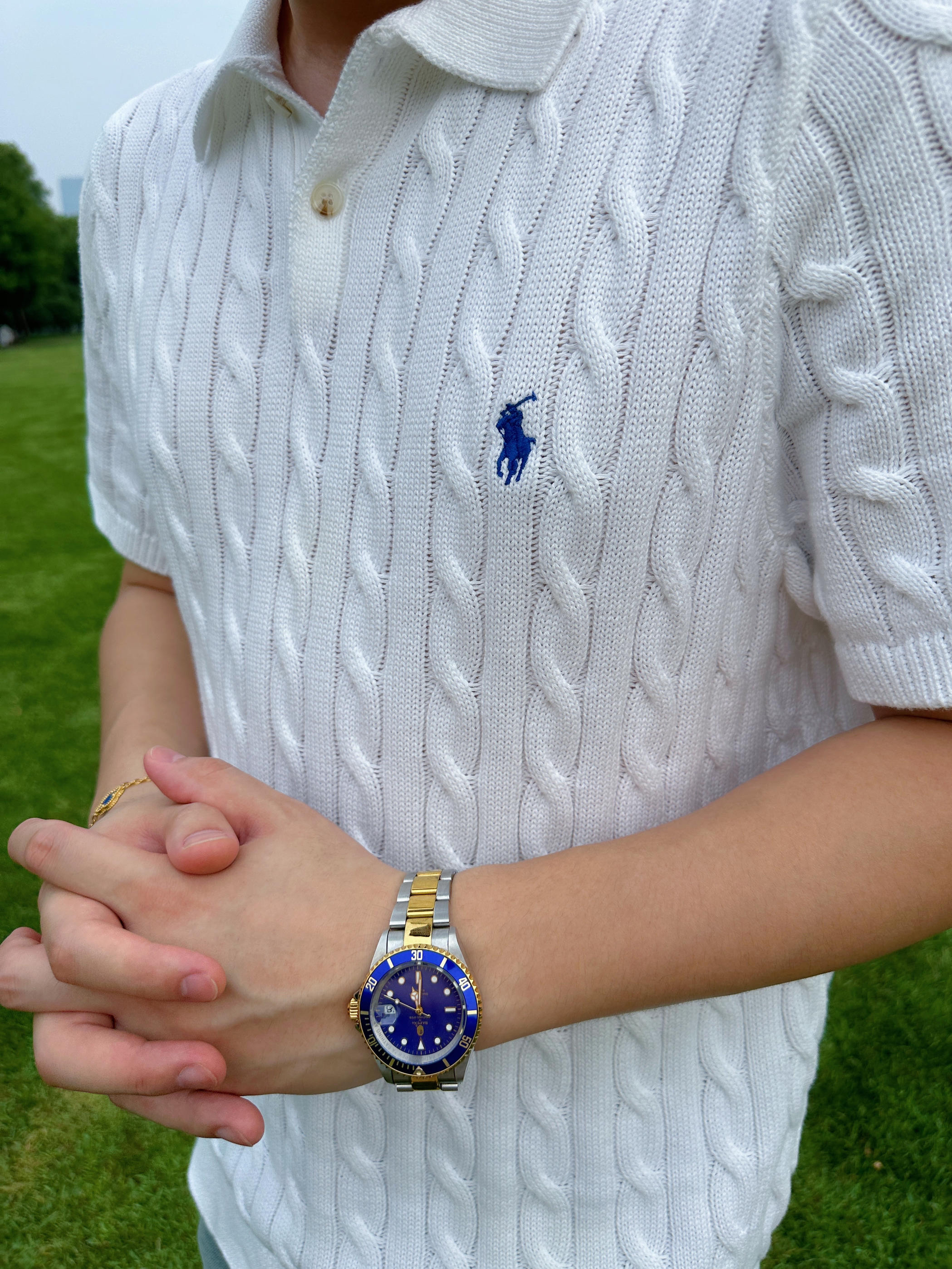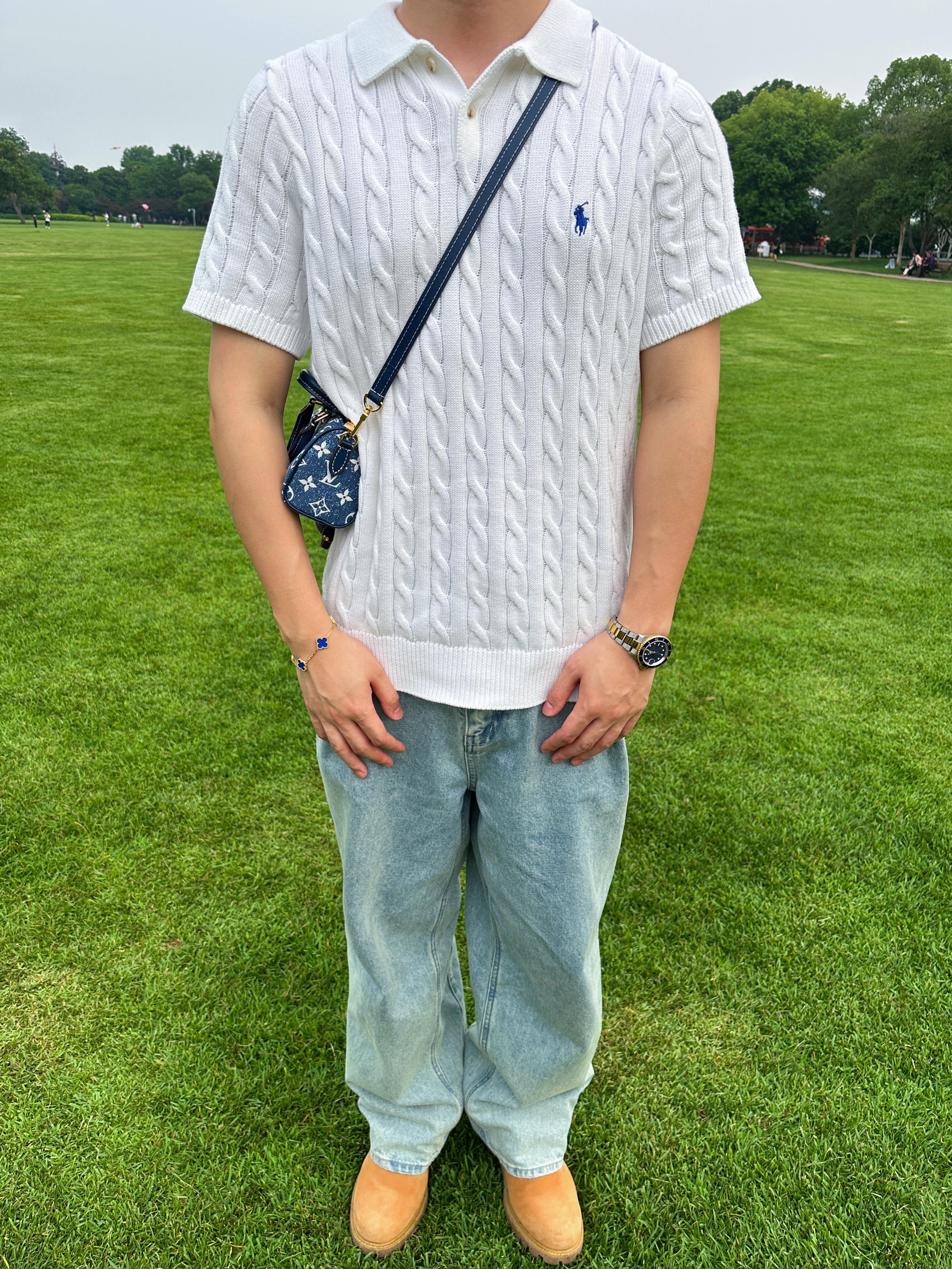 今日ootd穿搭分享 👕:拉夫劳伦的针织衫短袖polo 👖:nofaith 👟:添柏岚大黄靴 👝:lv 牛仔speedy ⌚️:bape间金蓝 ⛓️:梵克雅宝小蓝 整体就是so fresh clean~ 刚入夏 非常舒服的简约的一套穿搭 加上小蓝色为细节的点缀 小高级感满满~