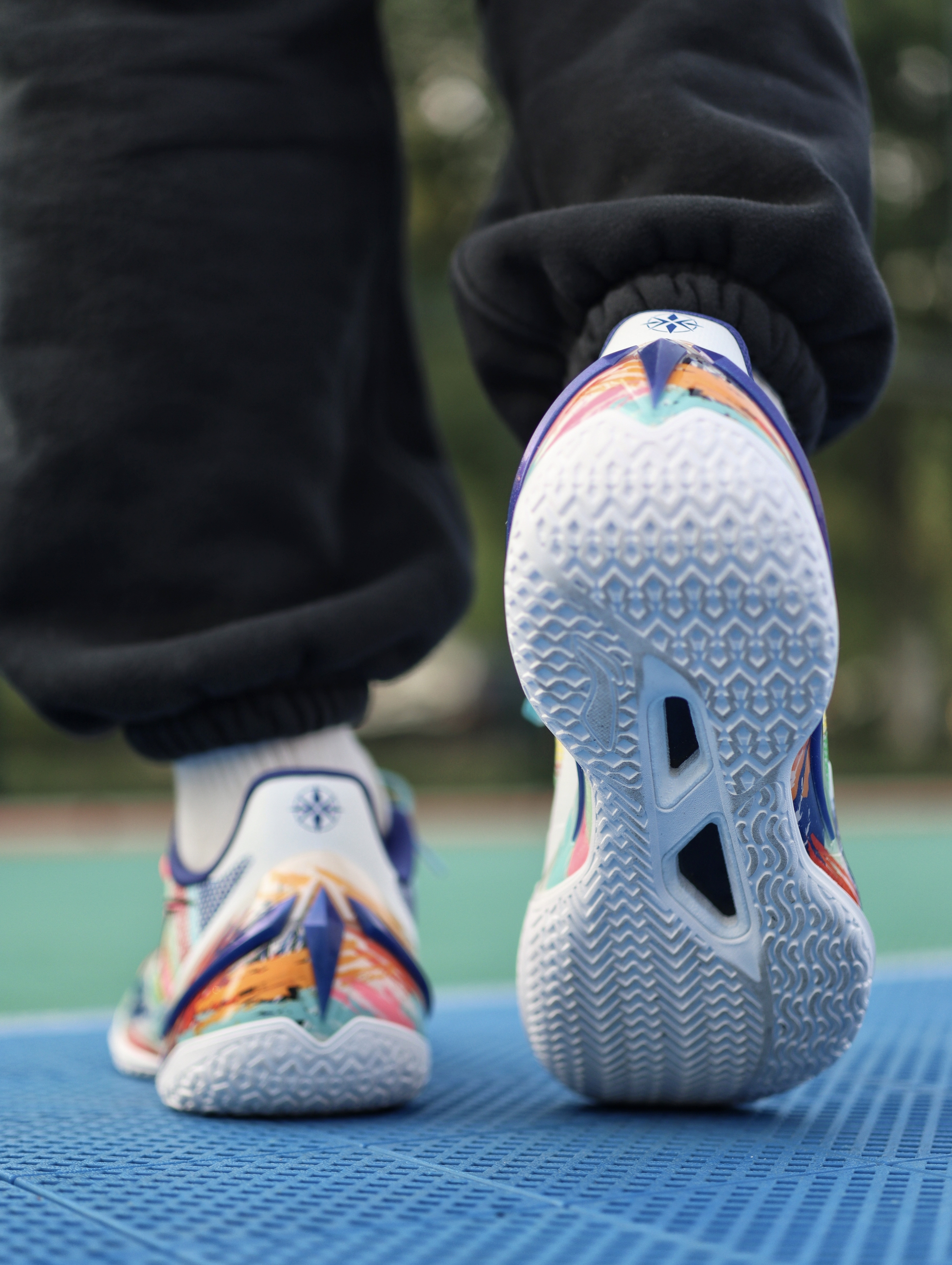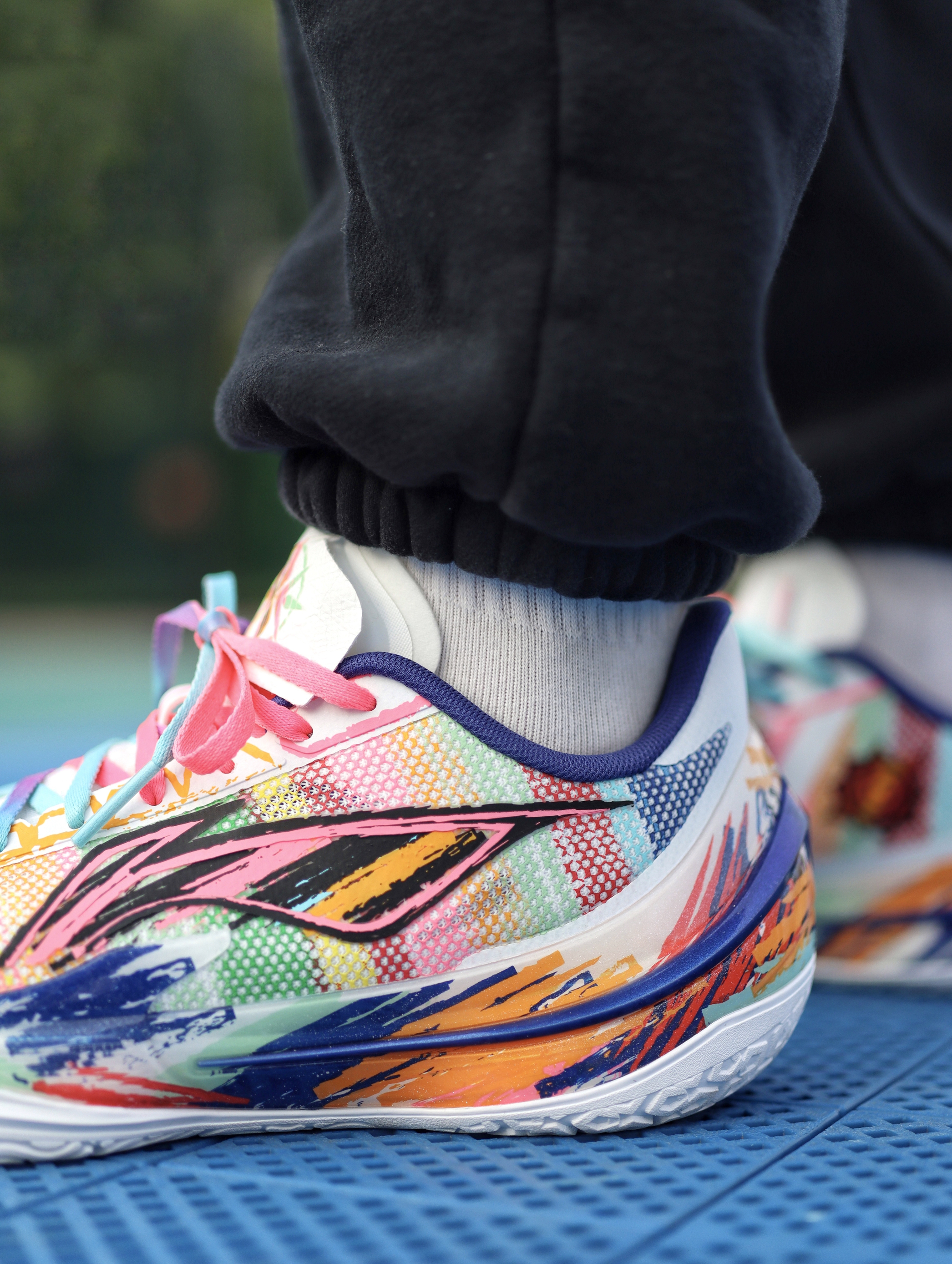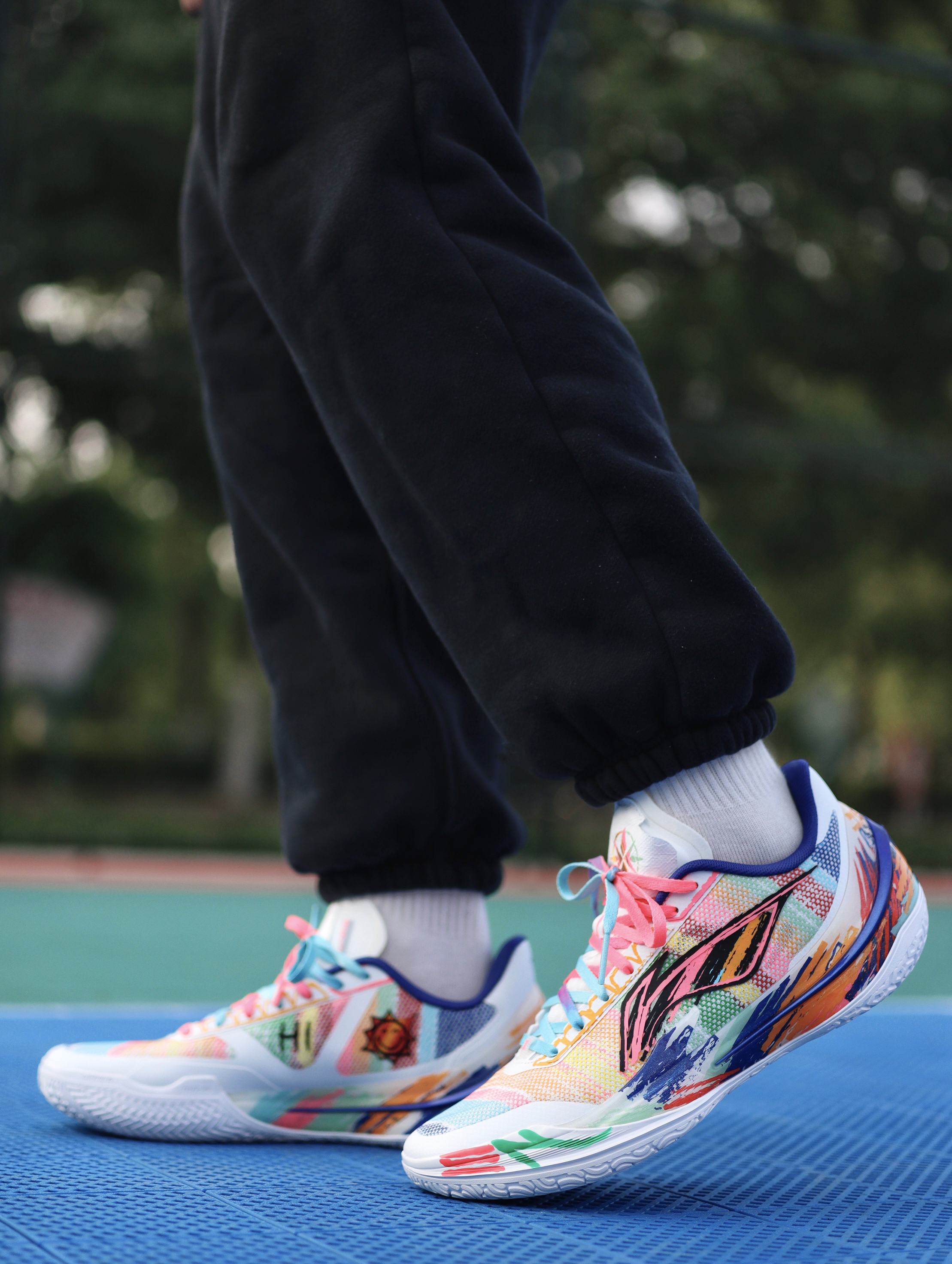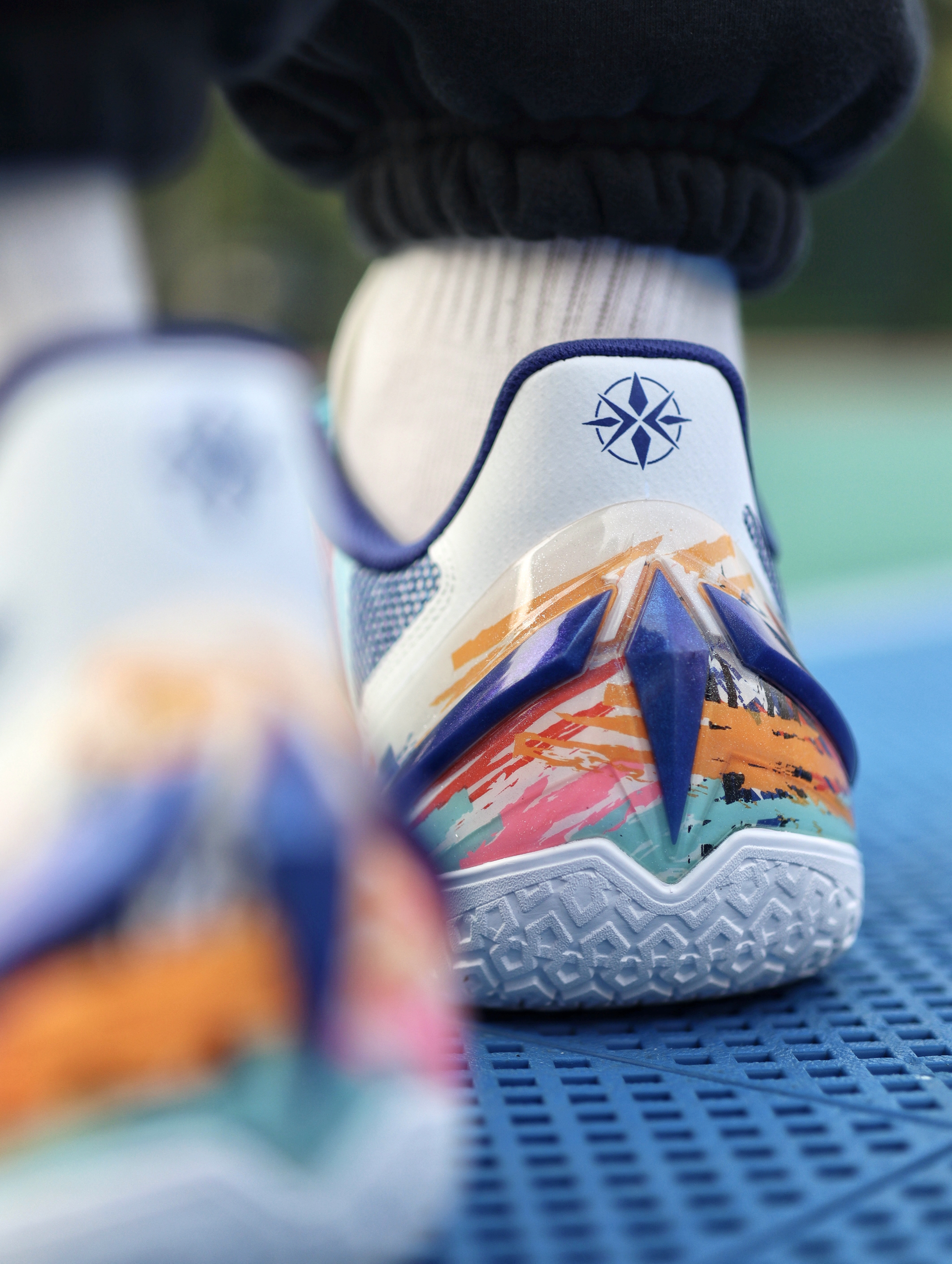 利刃5V2之前也入了好几个配色了,对于平常实战打后卫场地感都是蛮不错的,这次这双“内向艺术家”配色,我觉得还是值得聊一下的。 鞋子配色来自于关爱孤独症儿童为灵感,用涂鸦的设计展现小朋友内心的那股天真,鞋舌部分用了杜邦纸覆盖,撕开后内藏玄机。