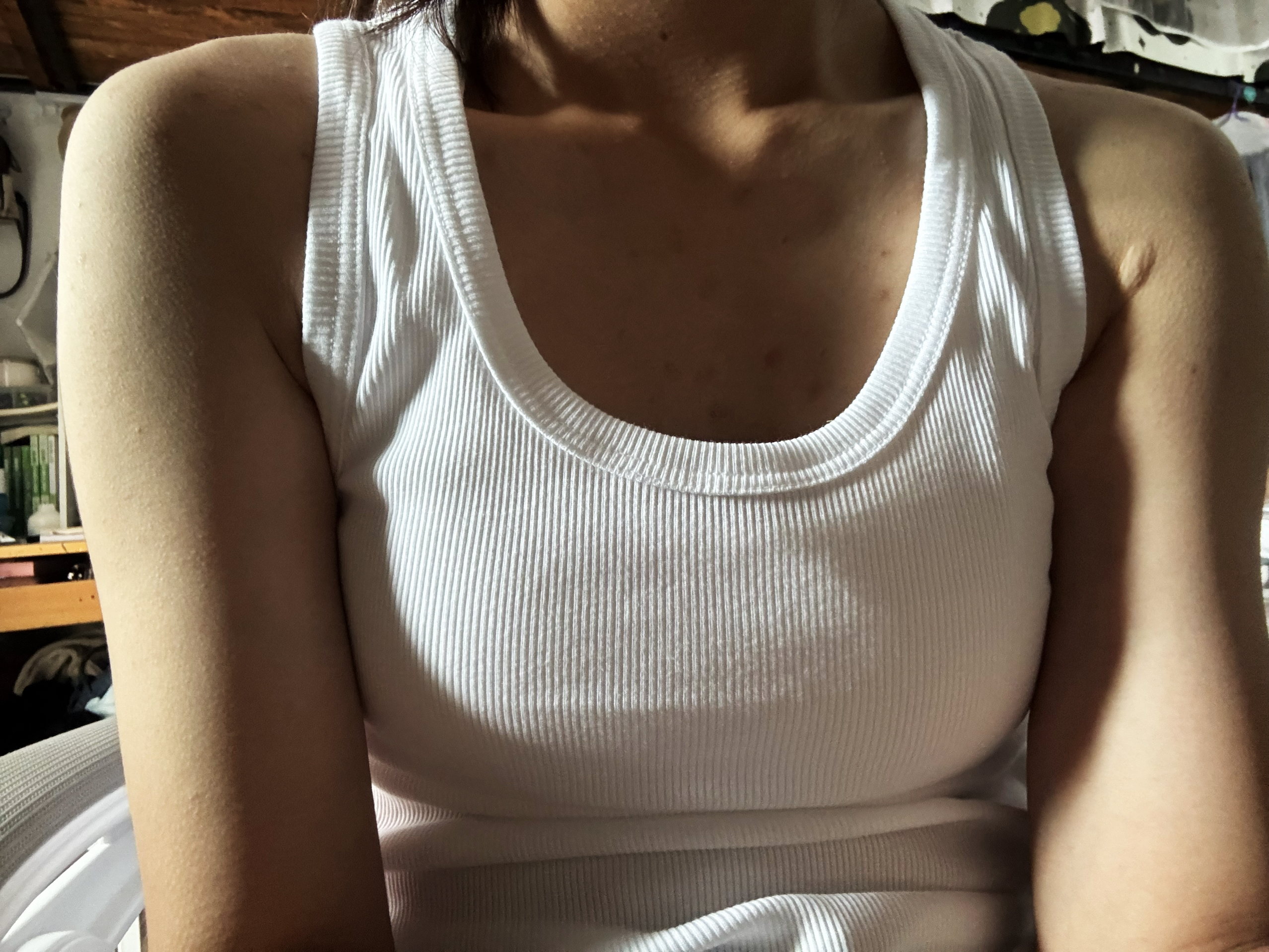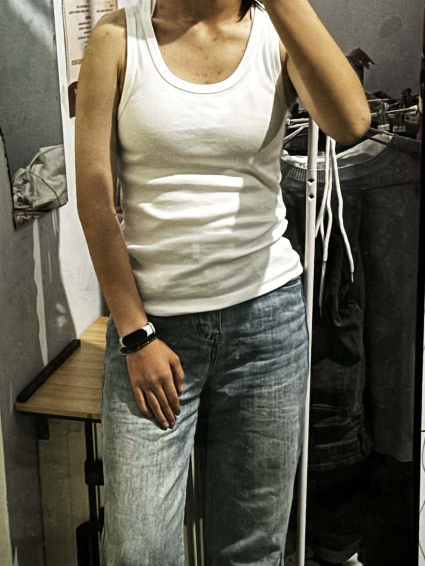 🛒好物名称:优衣库背心 🤔推荐理由:袖口不大,适合女生穿,建议往小码的拍本人170买的160的,很合适😁