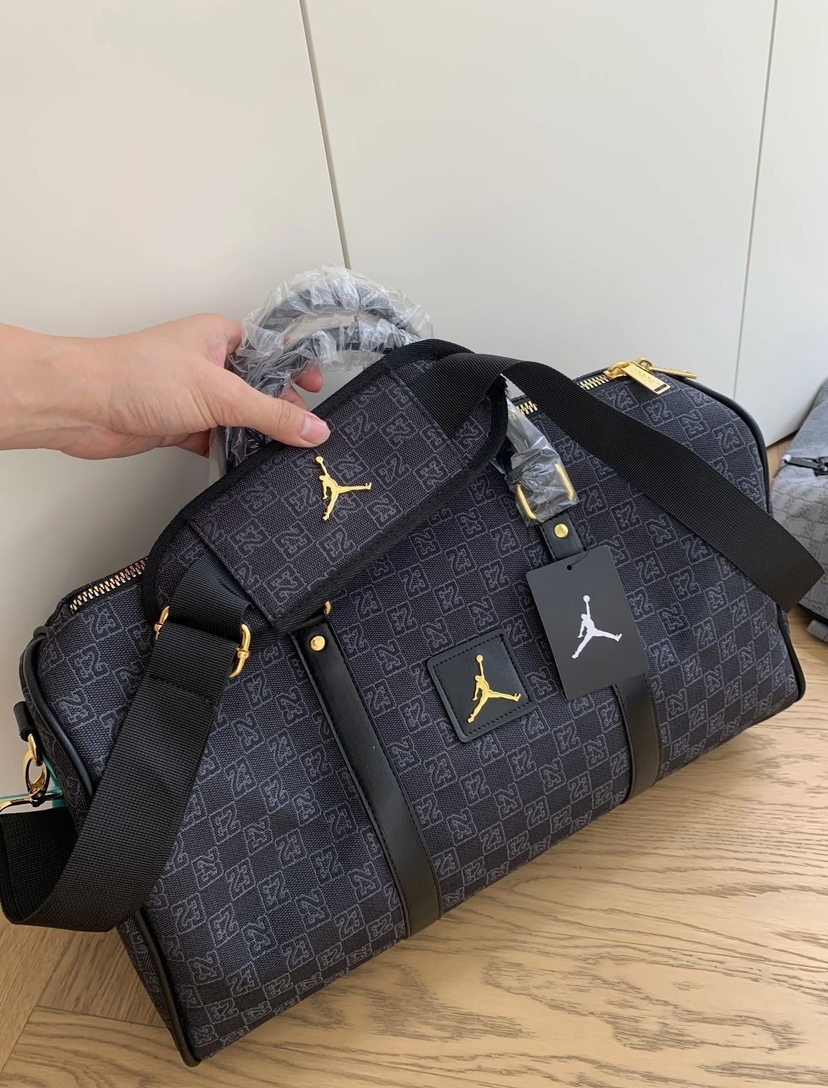 jordan棋盘格旅行包,实物到手很有质感!空间也很大,可以塞很多东西!做工和细节都很到位。
