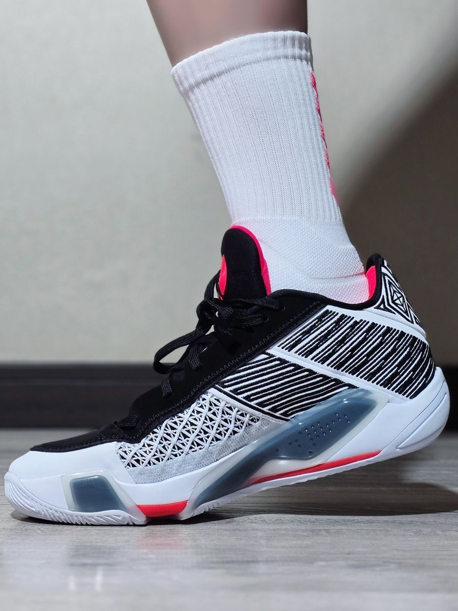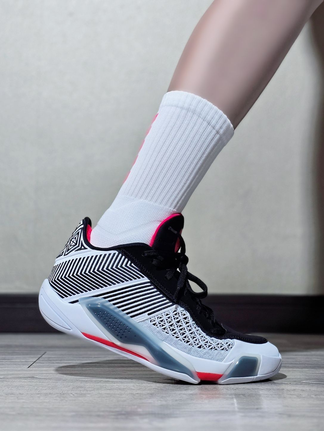 很不错的球场实战口粮装备,袜子是itb氢蓝的蓄能条系列。 球鞋是AJ38 low,34代之后最能打的AJ正代旗舰,目前打骨折,口粮级球鞋!