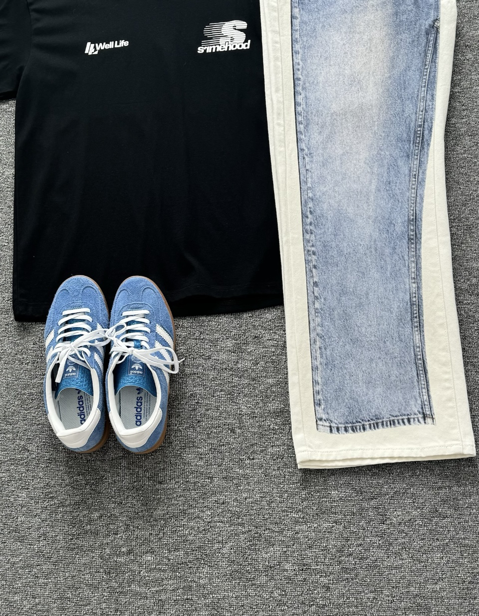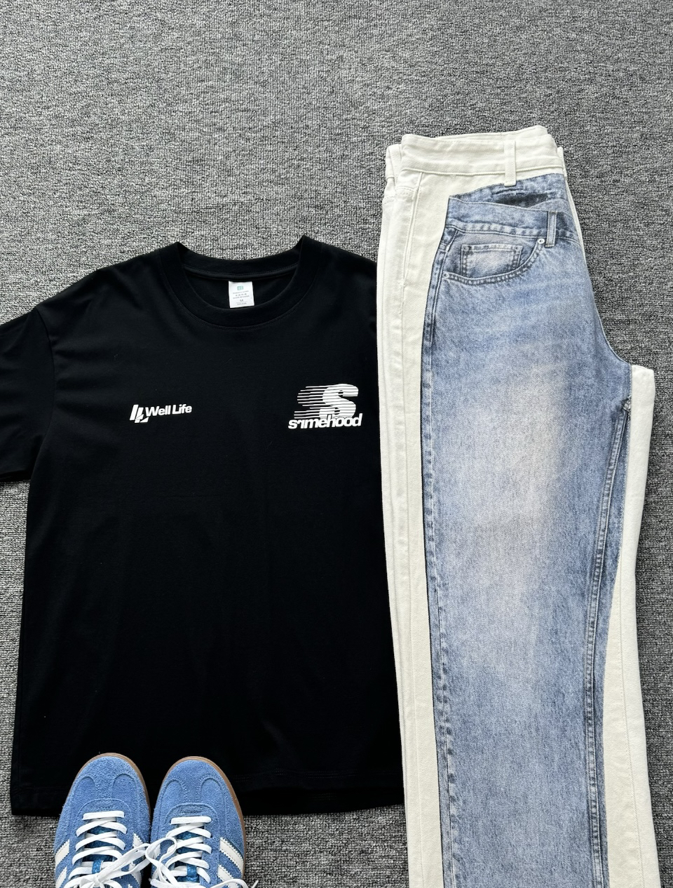 黑色字母短袖真是百搭又好看 天呐,牛仔裤也这么卷了 这条牛仔裤3D错视太有设计感了 好像穿了一件又好像穿了两件 炒鸡酷的