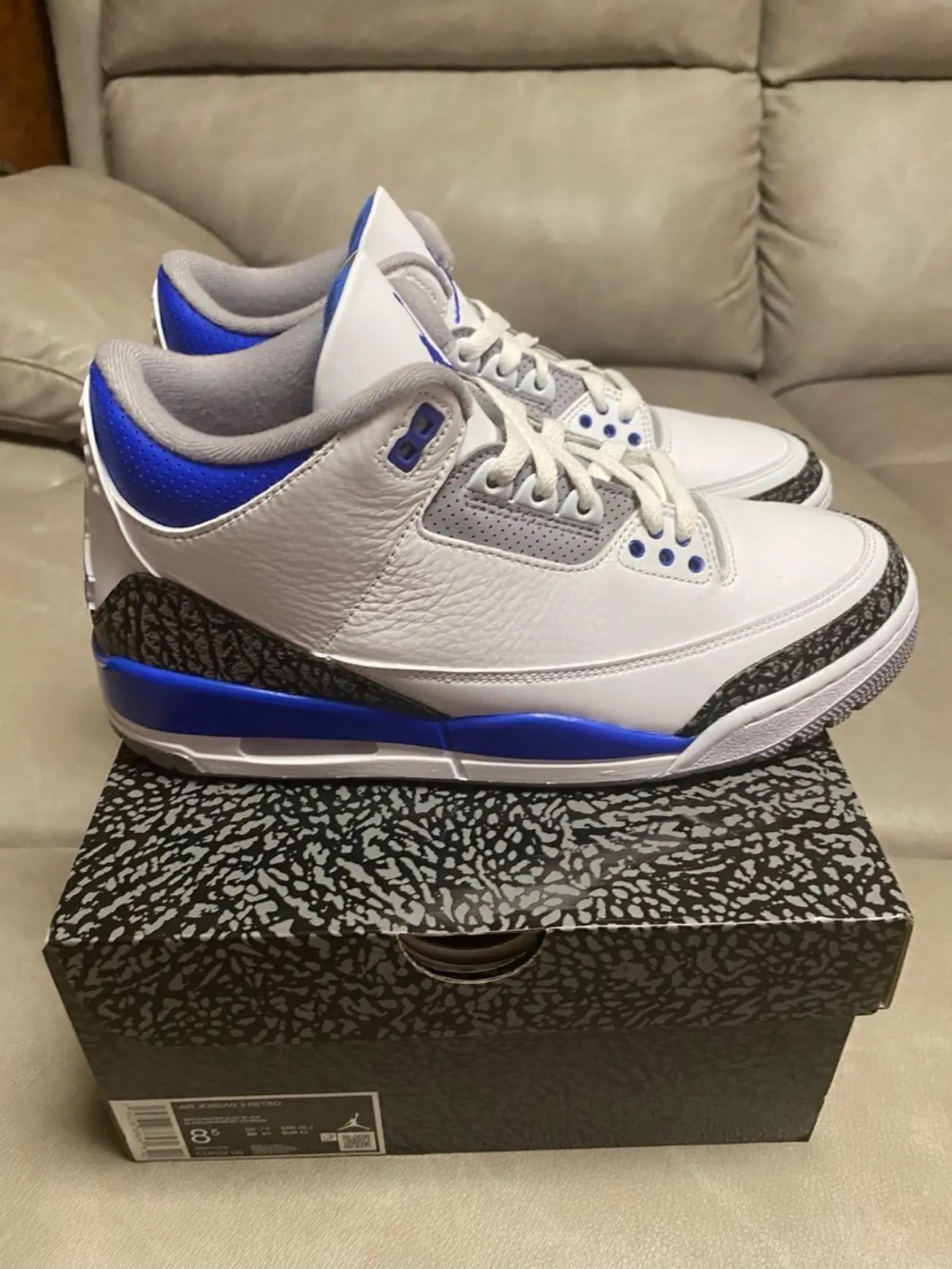 本篇笔记关联了Air Jordan 3 运动休闲鞋 潮流复古抓地支撑缓震合成革圆头 白色/水泥灰/赛车蓝等商品,为用户提供真实的使用体验和购买参考。