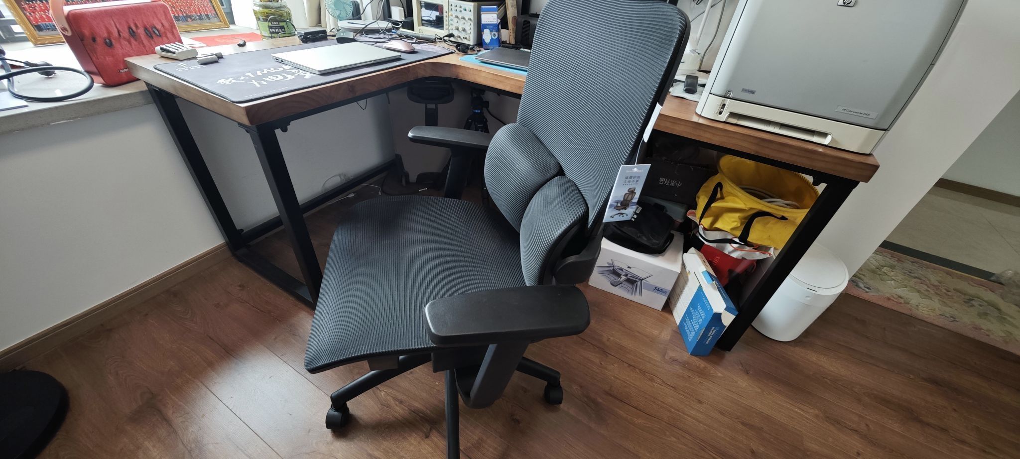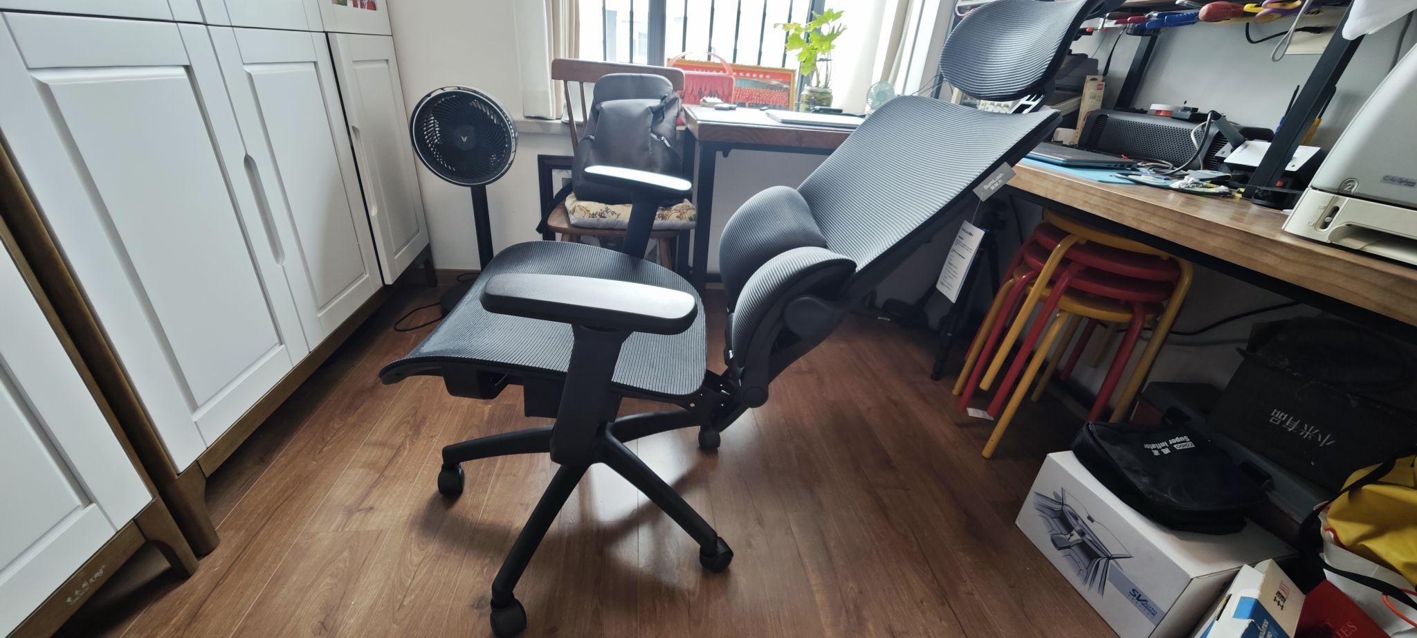 长期伏案工作的人,一定要有一把好椅子。无论你是办公室文员、电竞爱好者、程序员,时间一长不免腰酸腿麻。使用合适的电脑椅,能有效保护我们的身体,特别是那脆弱的腰、背和颈部,所以我趁618优惠,入手了夏草木FIT人体工程学电脑椅。本来是观望已久的,无奈只要标上“人体工程学”这几个字,没大几千拿不下,而夏草木FIT就不同了,是性价比吸引了我。下单后隔天就到货了。因为方便运输的关系,散件发货,需要自己组装。不过,这难不倒我,电脑椅用过不少,对它的结构也大致了解,所以赶紧取回家就拆包装组装起来。由于金属部件较多,重量也重,底座、底盘和靠背几个地方的支撑钢板非常厚实,装配时要轻拿轻放。夏草木FIT的脚轮外观看起来材质比较厚实,静音设计,五脚轮设计,很稳固,底座承重力达到200公斤,扛得住我70KG的体重是没有问题的;最重要的部件是气压杆。通常气压杆中充有高压氮气,如果质量不好,导致密封性不好,使用一段时间后,气体泄漏,失去弹性就不能调整高度了,人一坐上去,直接一“股”到底,极端情况下气压杆还有可能爆炸,在新闻上见过,是有点害怕。夏草木FIT使用的气压杆通过了美国BIFMA(美国家具协会)X5.1和德国TUV(TÜV莱茵)检测认证,达到4级(最高级)防爆等级。座面和靠背的连接部分,由于经常活动,对连接部分的形式和材质都有要求否则时间长了会由于金属疲劳产生变形或断裂。夏草木FIT的这个部分采用一块厚钢板,分量很重。椅背和座面连接的地方采用机械式弹簧铰链连接,可以自由调节靠背的角度。这是头枕,可以调节高度,根据使用者的身高调节到合适的高度,使用起来比固定式的要舒适不少。工作累了,往后一靠,头颈部得支撑事先调节好高度,有力地托住我的颈部,缓解了酸胀感。你们伏案久了,是不是会扭动一下脖颈?现在只要往后靠,就可以把颈部支撑住,感觉很舒适。椅背角度最大可以调节到145度。伏案工作时椅背调直;手机刷小视频时调节到120度左右,头、颈、腰、背部支撑能让你舒适地操作手机;如果调整到145度,就处于半躺半坐了,底部五辐底座能保持椅子平衡,如果办公室使用,则可以用来午休。整个座面、椅背都是条纹网布材质,坐上去后可以根据身体轮廓有到包裹感,自带通风透气能力,夏天久坐也不会感到闷热出汗,特别是这两个腰部支撑,靠上去有被环抱的感觉。如果你也需要长期伏案工作,不妨看看夏草木FIT人体工程学电脑椅。