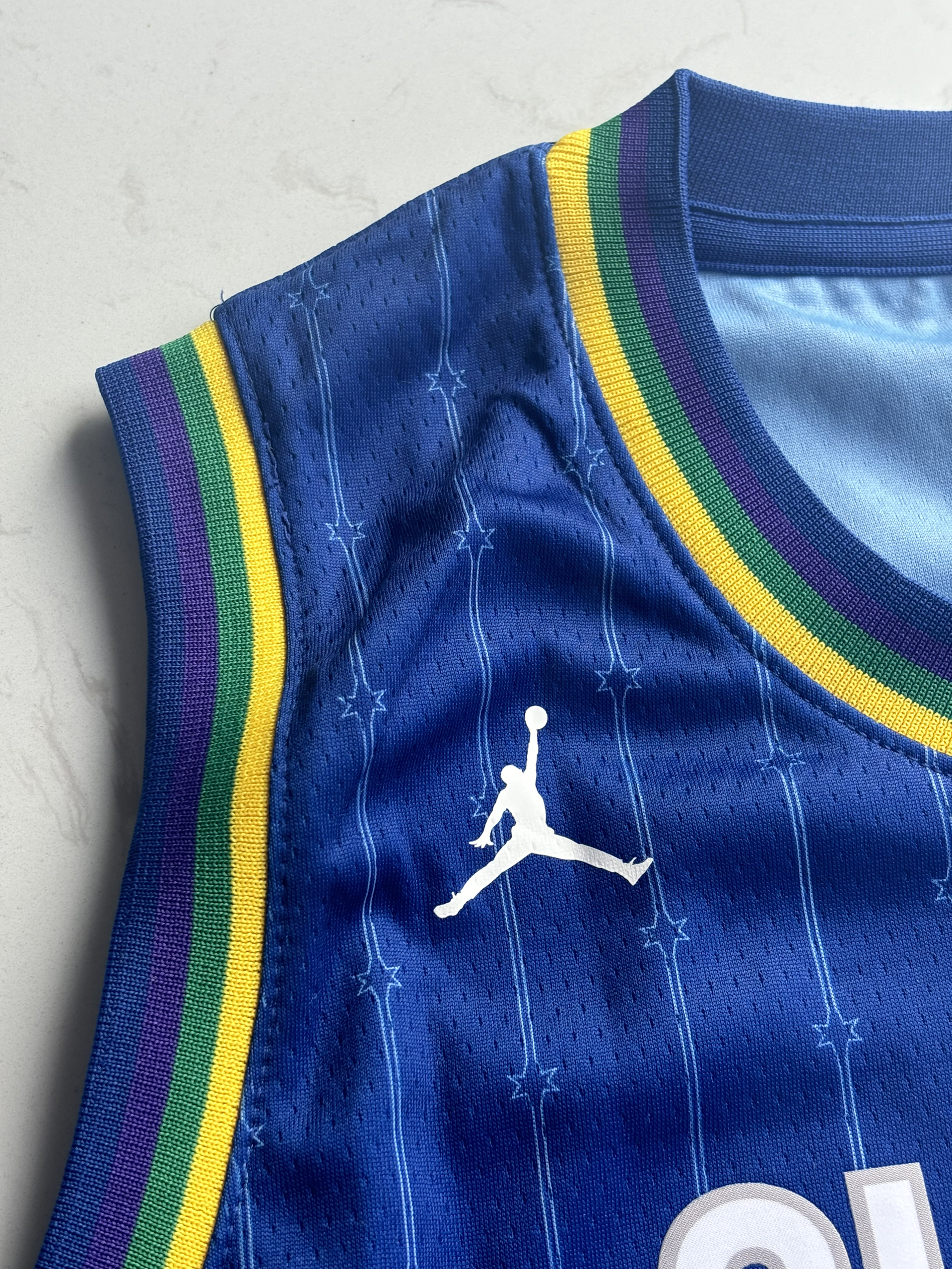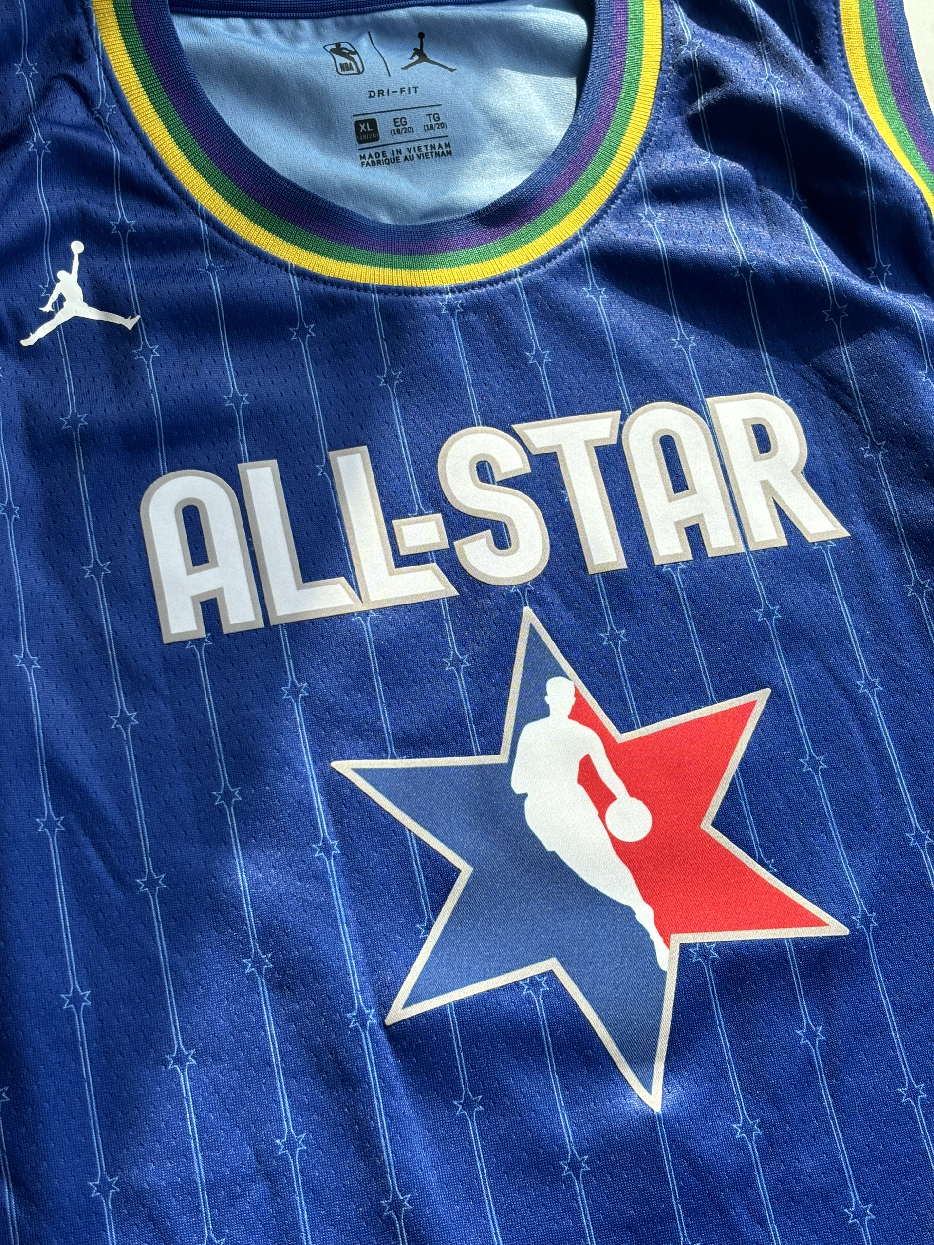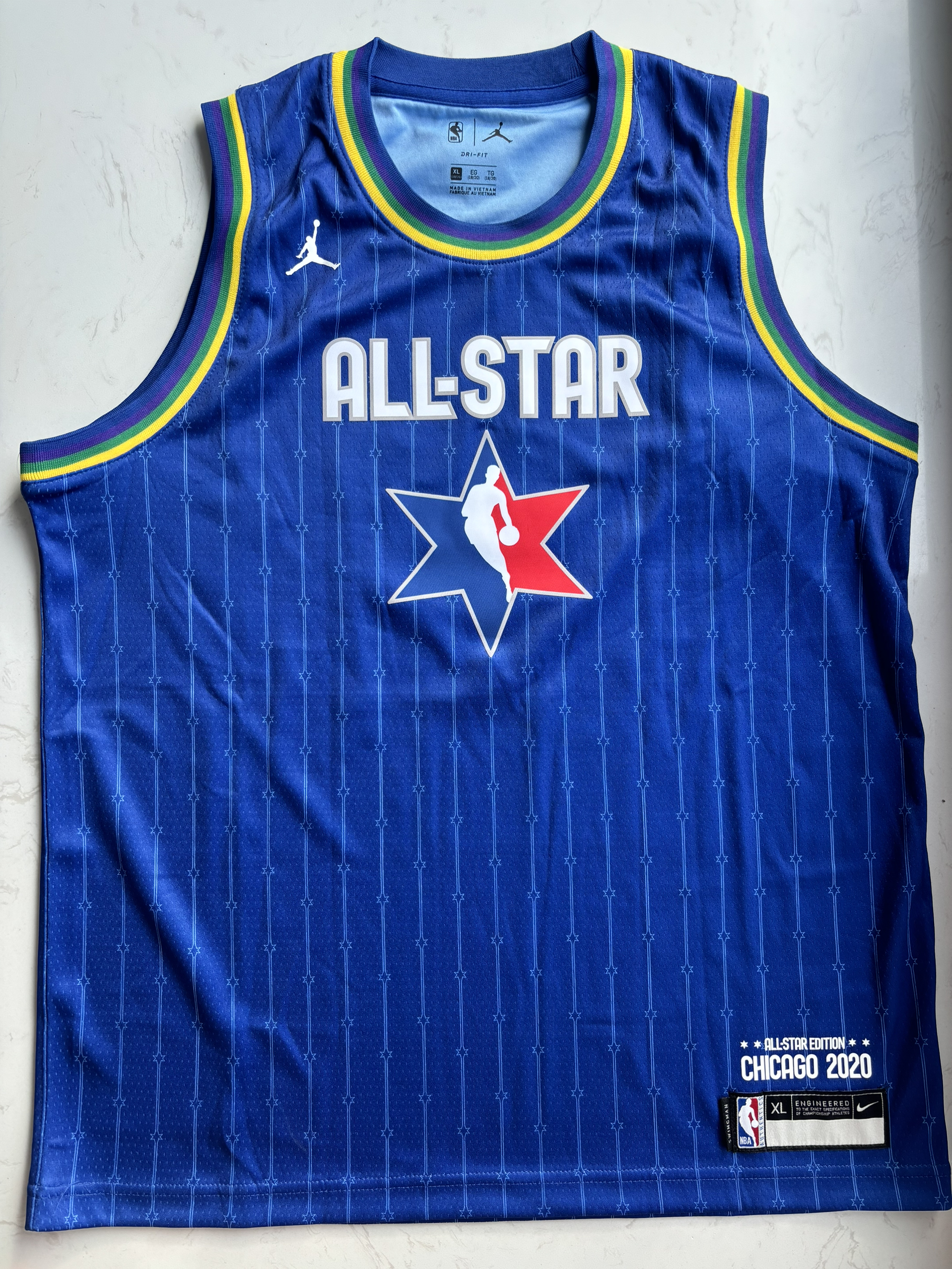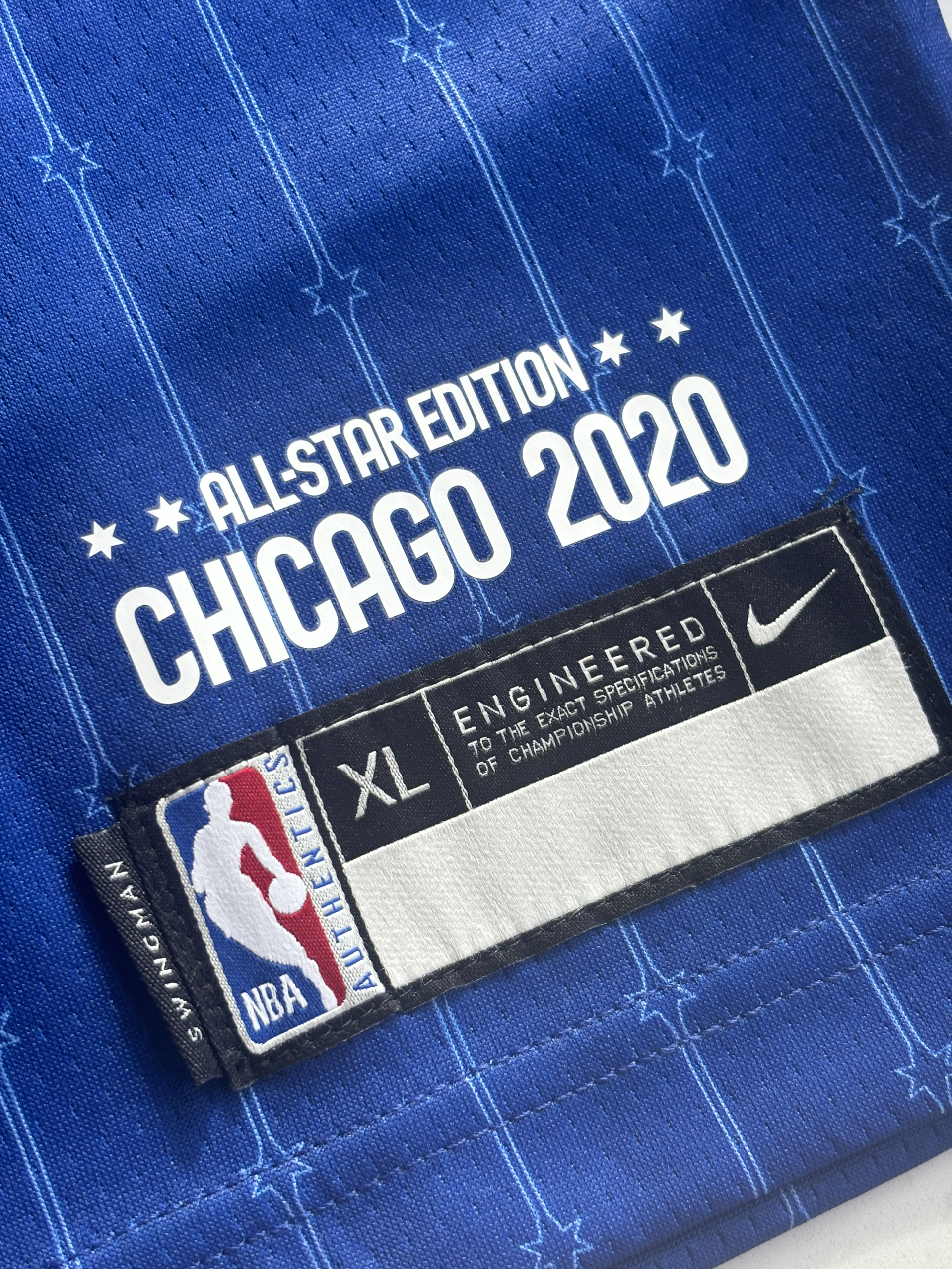 2020年芝加哥全明星球衣,那一届全明星也是十分精彩的一届 致敬科比也是这次全明星的主题 衣服整体以蓝色为主,背后的字体非常亮眼,胸口也有全明星的图案 整体的面料也非常舒适透气,既可以日常穿搭又可以拿来实战,很百搭的一件球衣