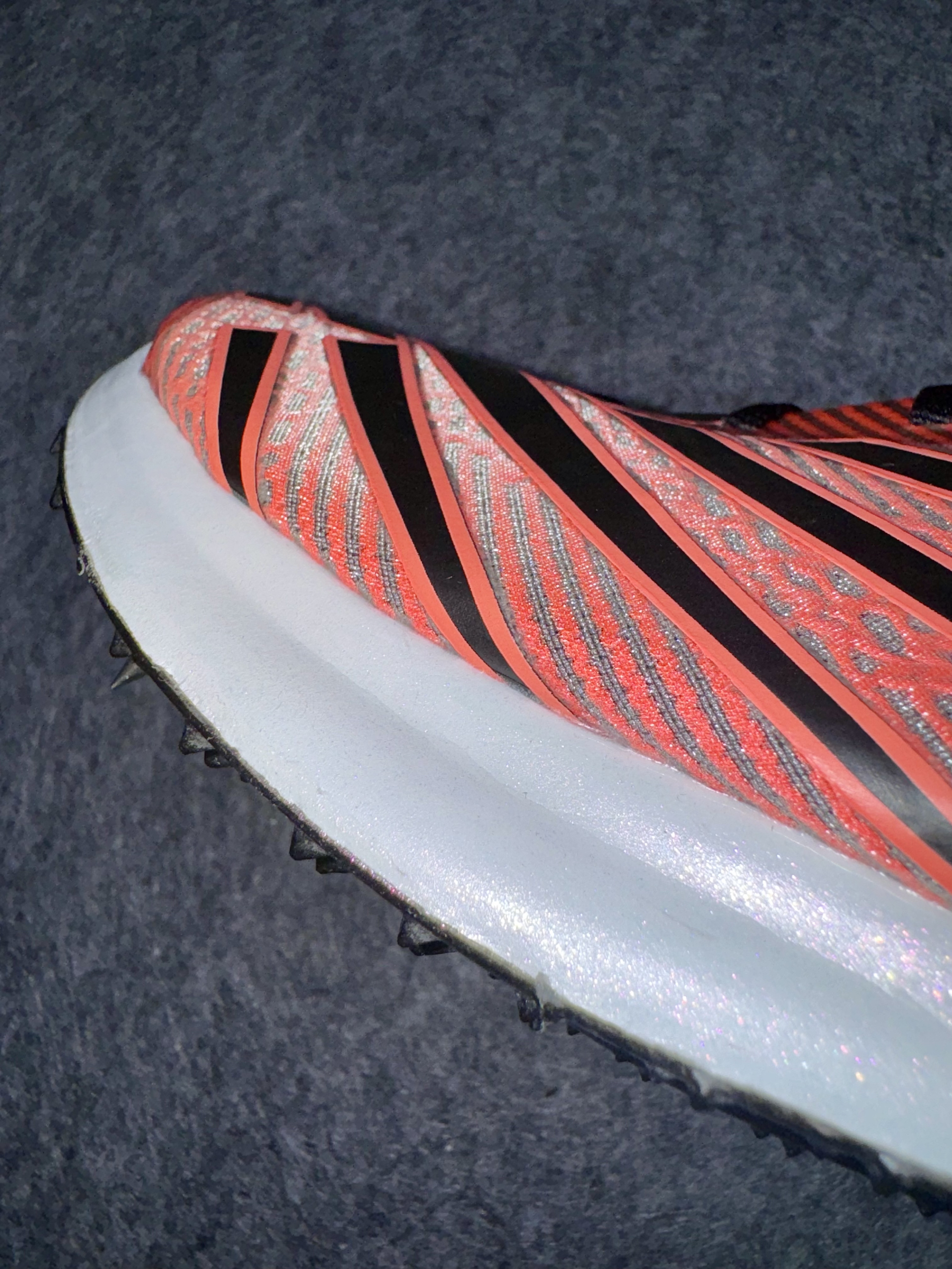 在日常逛逛的时候发现了这双3开的SD-X 因为以前一直都是保持着接近原价的价格 果断入手了 原本是打算200m-300m的间歇以及速度课使用的 但是实在是…… 1.老样子说说鞋面 颜值我认为还是挺高的尤其是超大NB标志的压胶 不仅增加鞋面强度支撑 还突出产品设计 鞋面则是高强度纱线和织物组合而成的 不知道怎么形容了 包裹还可以 鞋头也做了半环绕的压胶 我在过弯道或加速时都没有前脚掌打滑的感觉 ...