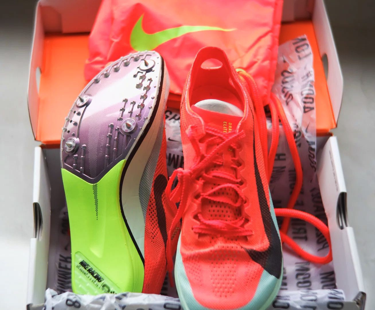 鞋面设计:Nike Dragonfly 2 Proto采用了工程网眼鞋面,具有出色的透气性和舒适性。这种鞋面材料不仅轻盈,还能提供良好的贴合感,让跑者在高速奔跑时也能感受到稳定的支撑 鞋底设计:这款钉鞋配备了全掌ZoomX泡沫中底,这是耐克最轻且弹性最强的泡沫材料,能够为每一次步伐提供显著的能量回馈。此外,鞋底的Pebax板比上一代更轻、更灵敏,同时增加了耐用性 钉子配置:Dragonfly...