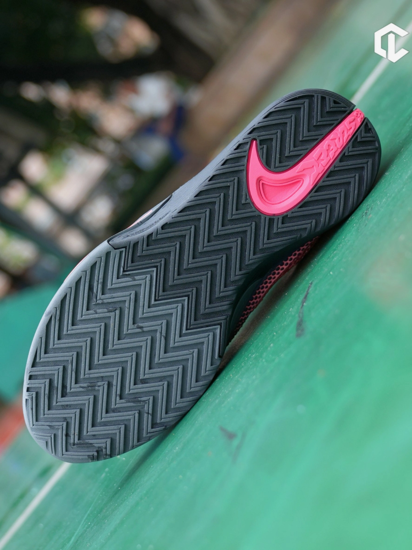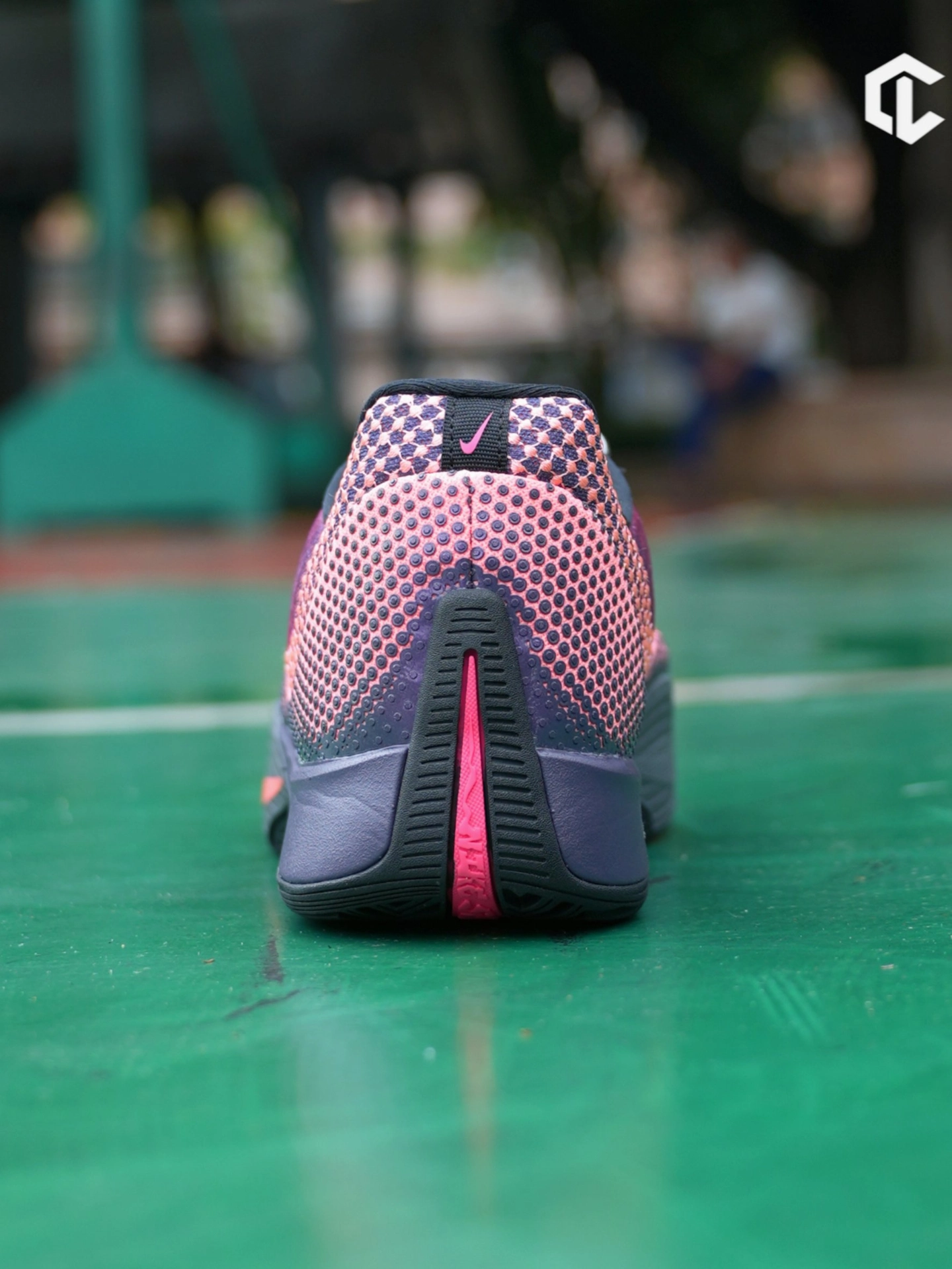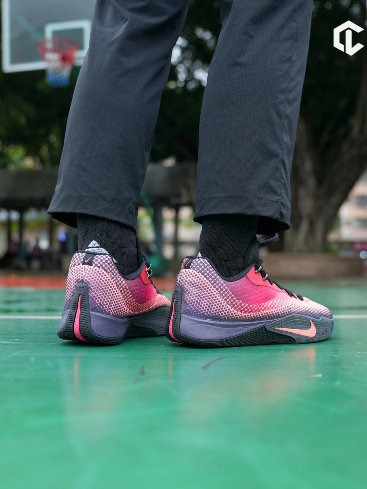 首先这双鞋呢 外观从侧面看还是非常亮眼的 很有攻击性 要是侧面前方的钩子挪到中段位置,是不是很有PG3代的那个感觉 不过 你换个角度来看 俯视看它 你会发现它的鞋头还是这么尖尖的 我相信60%以上的朋友应该都不会喜欢这个尖头造型 怕引导拇外翻 钩子呢 估计也是考虑到了这一点 虽然鞋头仍旧很尖 但他实际上脚下来 并不会有很强的压迫感 因为大脚趾这个区域实际上并没有过多的补强 材料...