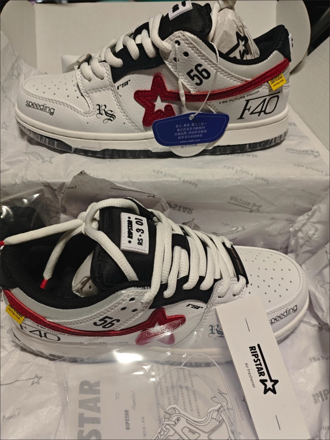 本篇笔记关联了RIPSTAR 赛车 板鞋 休闲系带防水 F40/白色等商品,为用户提供真实的使用体验和购买参考。