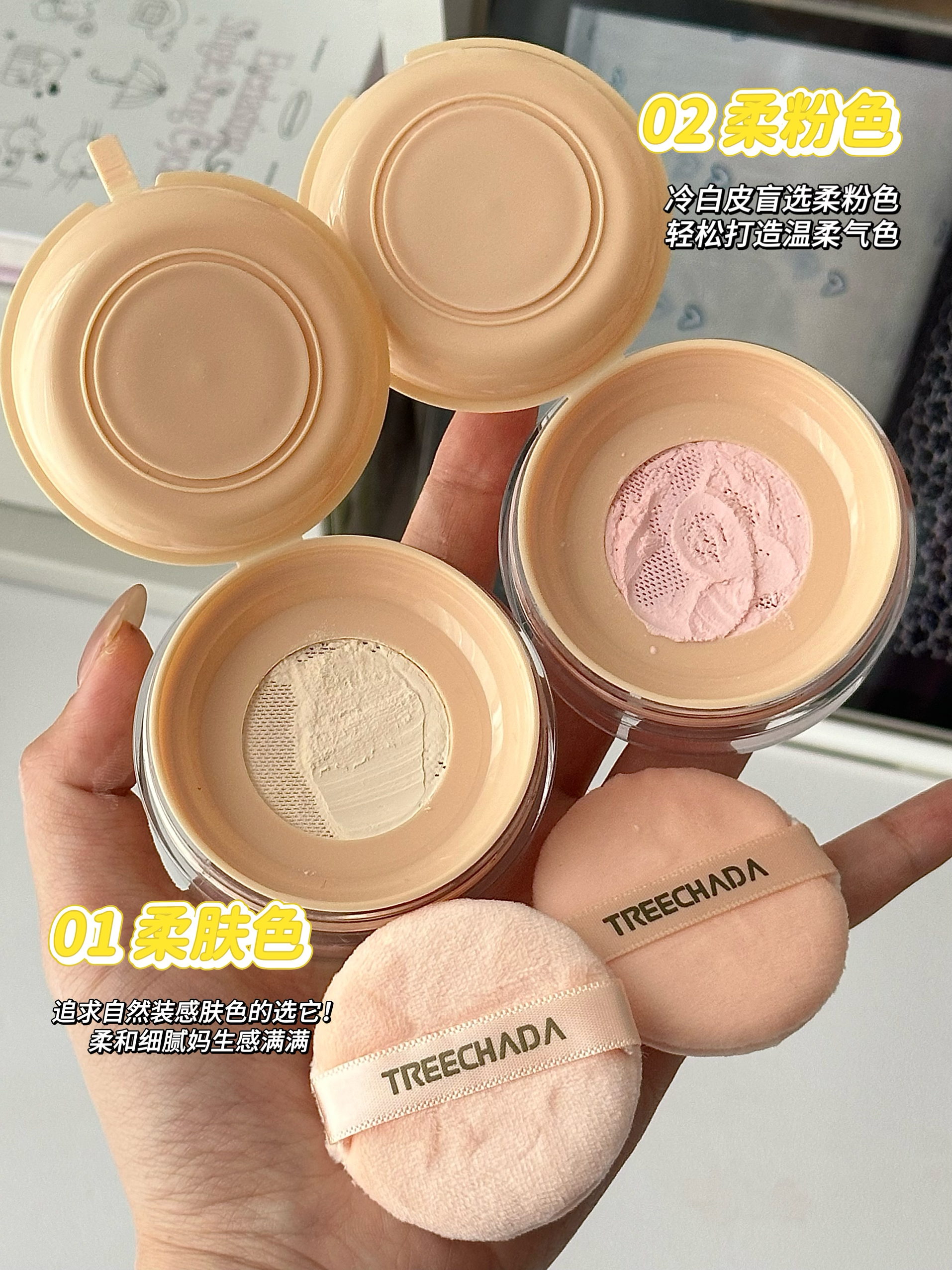 本篇笔记关联了treechada 轻薄透气定妆散粉 #01 柔肤色、treechada 轻薄透气定妆散粉 #02 柔粉色等商品,为用户提供真实的使用体验和购买参考。
