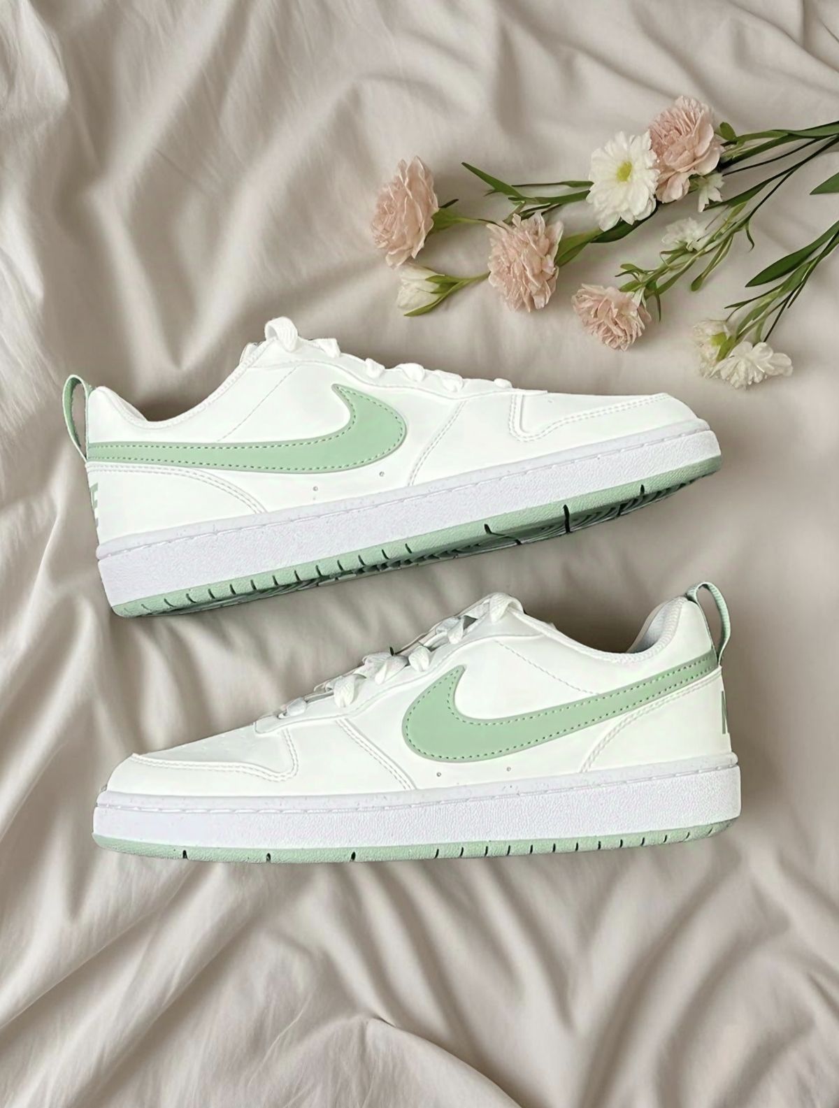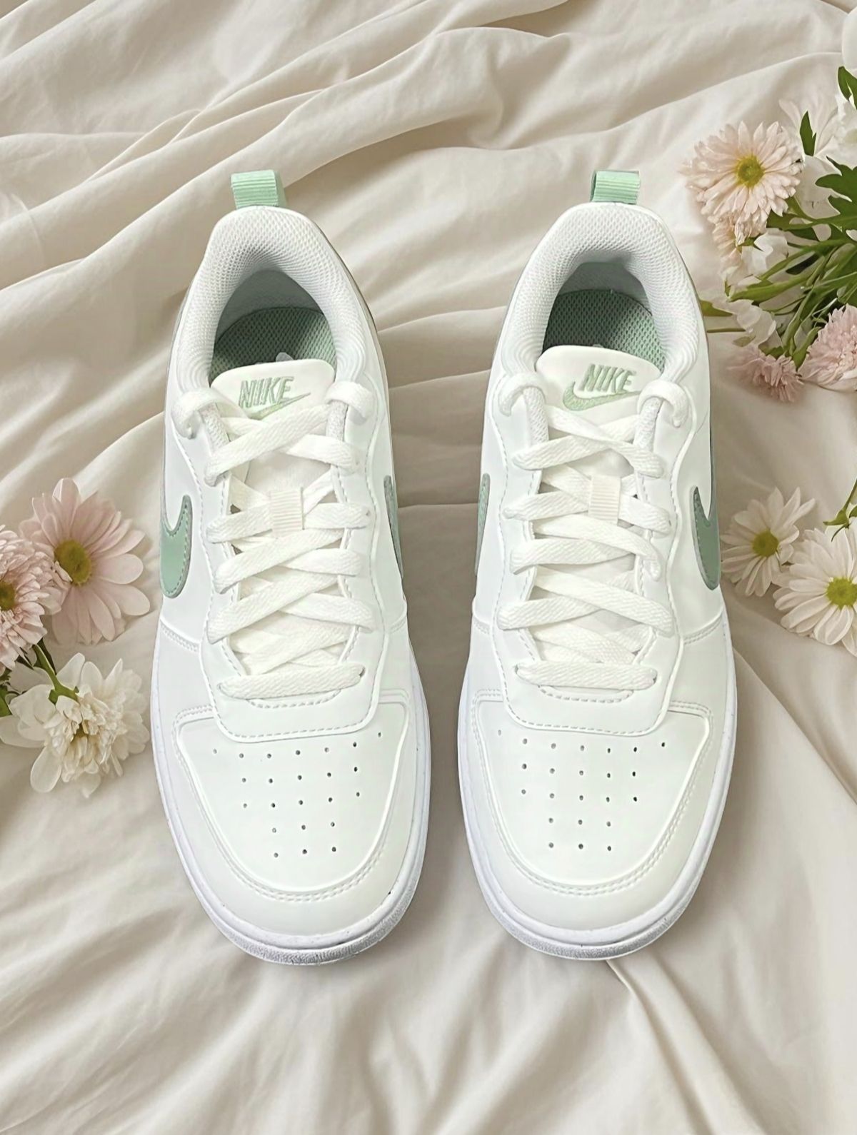姐妹们!这双Nike Court Borough Low Recraft白绿色我真的穿到被闺蜜追着打——为什么不早点安利给她?! 第一眼心动:把春天穿在脚上 拿到手就被治愈了!奶白鞋面配薄荷绿勾边,像咬了一口青提奶盖,阳光底下泛着细碎珠光,比照片里还要清新一百倍。鞋头做了加宽设计,本肉脚星人终于告别“挤脚趾”噩梦,穿去迪士尼暴走一整天,前掌居然没起水泡,当场给设计师磕一个! 意外之喜:...