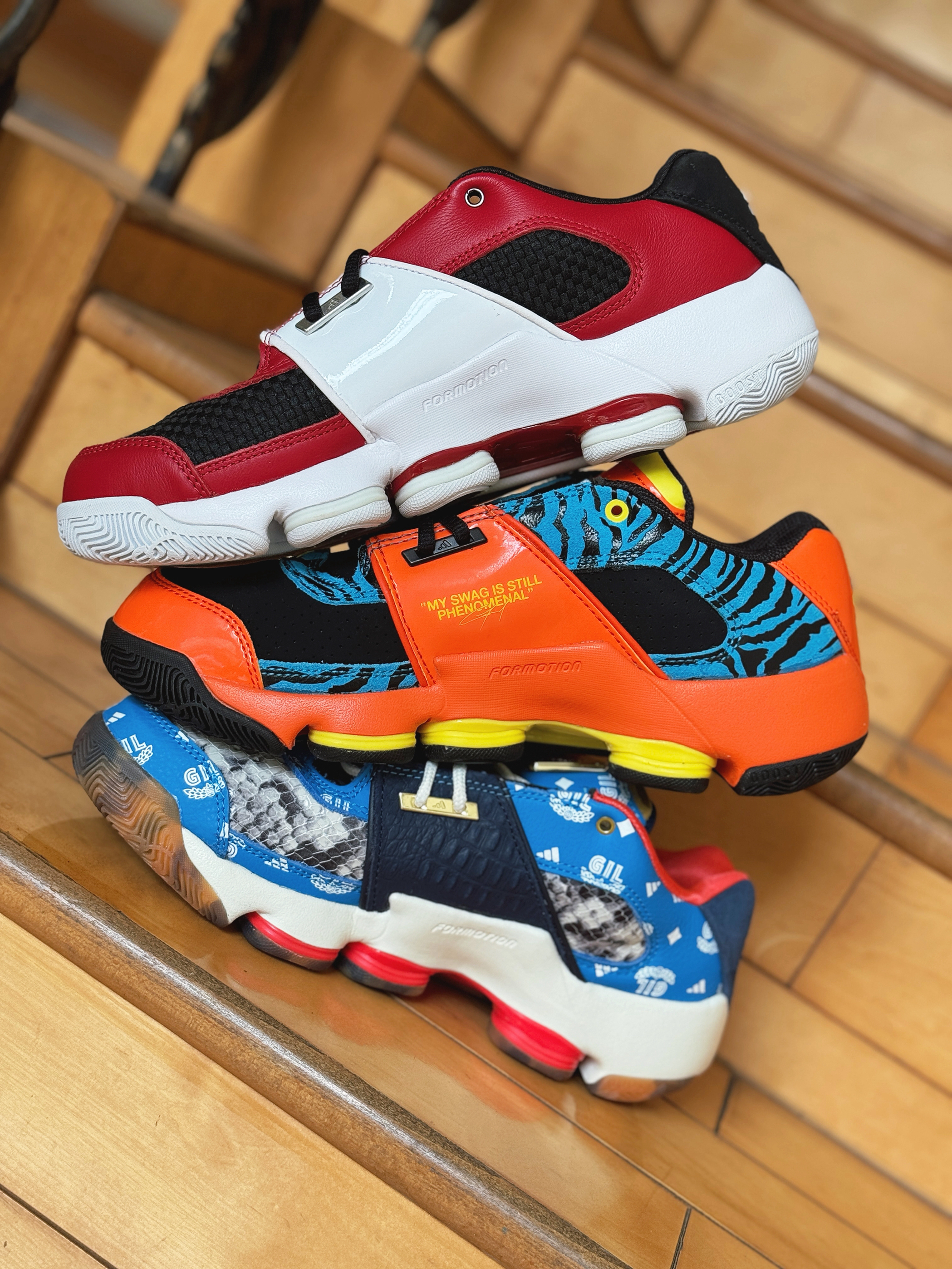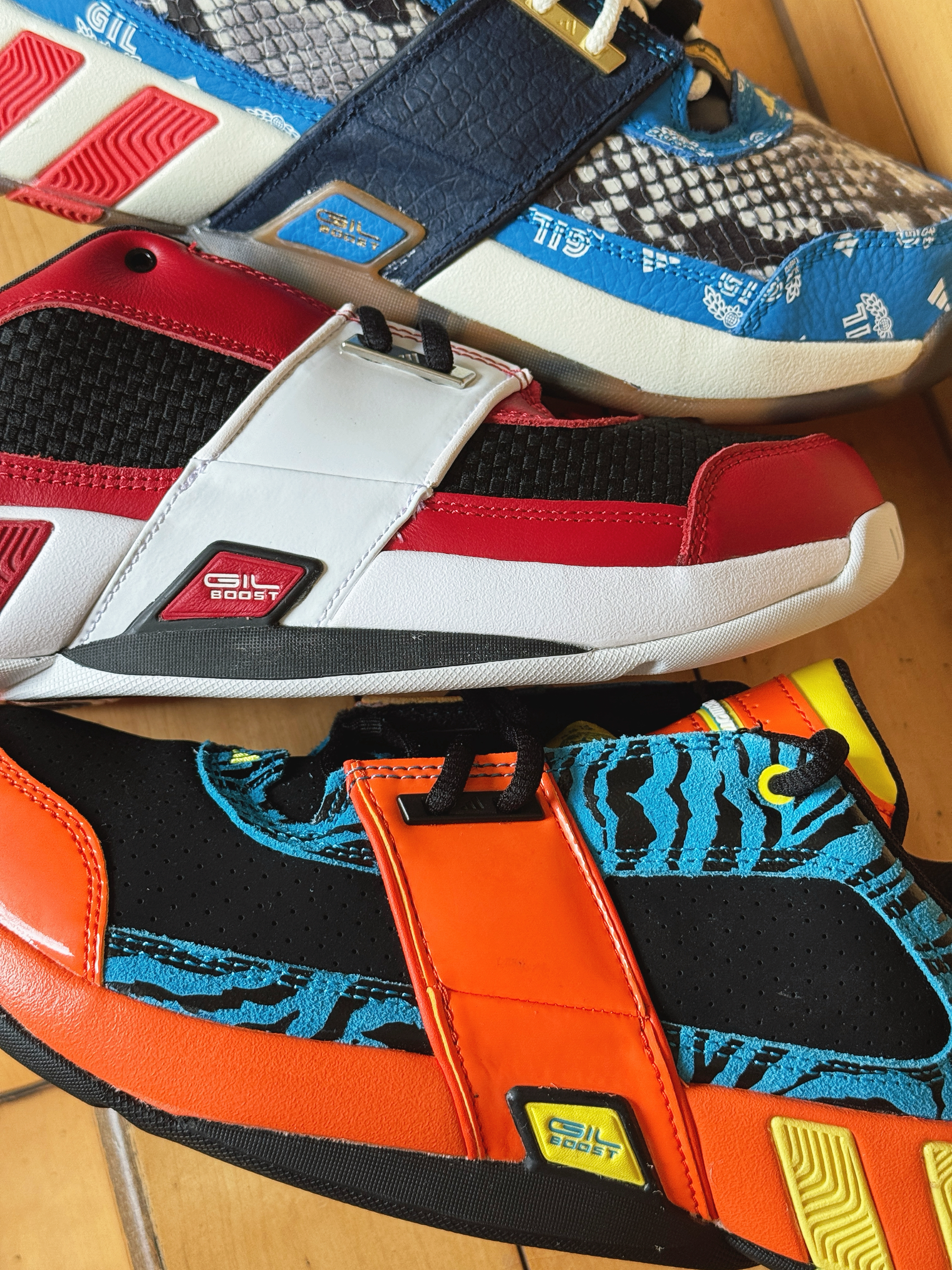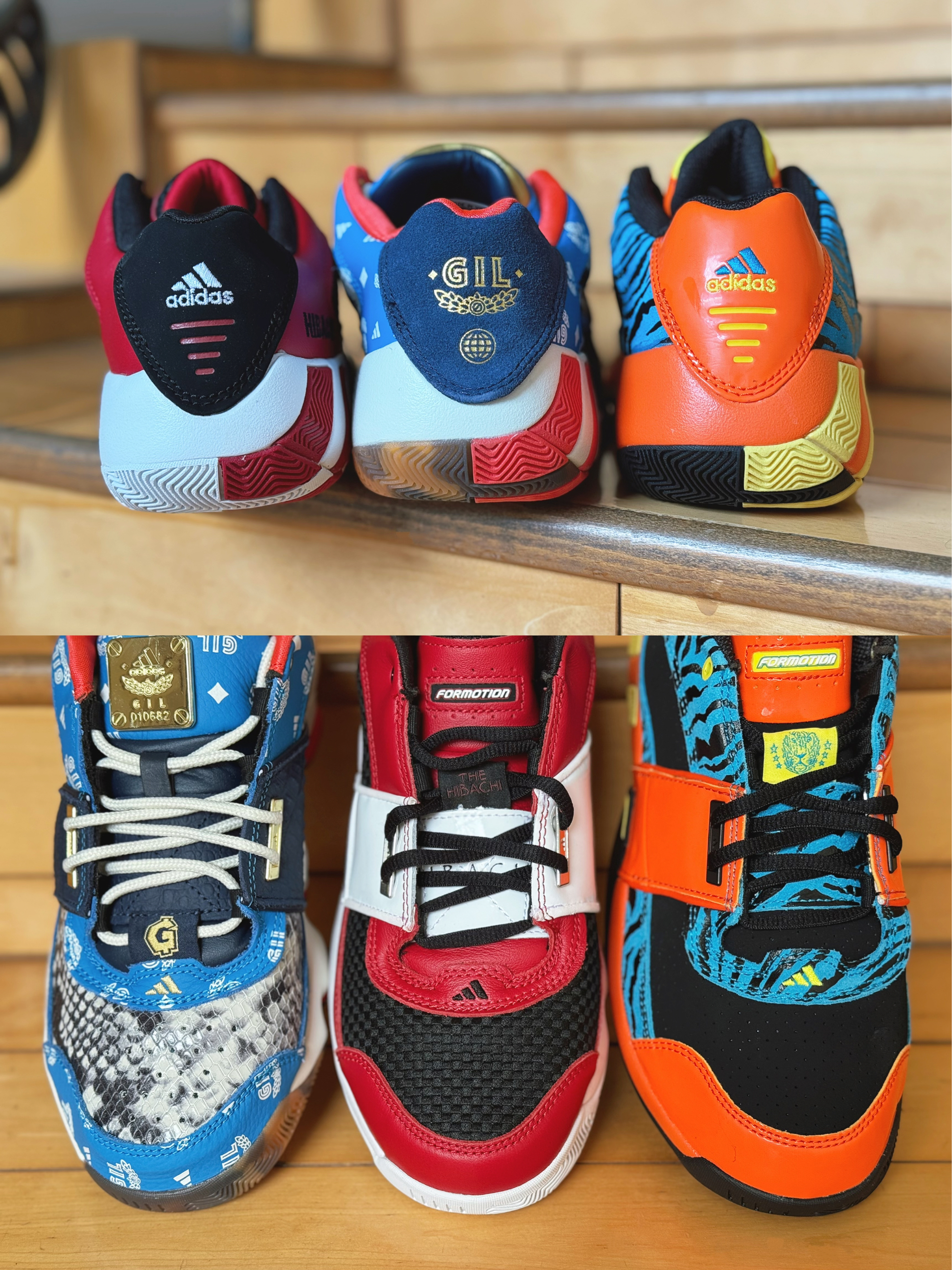 各大品牌每年都会有一些经典鞋款复刻 今天分享的这三双阿迪球鞋Agent Gil!老球迷一定会有共鸣! 作为“零号特工”阿里纳斯的签名鞋 情怀占大多数!中底采用经典的Formotion科技加入了boost 脚感还是偏硬的 养身球局能穿 强度大一点的支撑不太够!日常出街的话还是挺特别的! 这三双中还是最喜欢“Hibachi”配色 黑白红的经典搭配 也更适合夏日穿着!其余两个配色材质便厚一点 透气性...