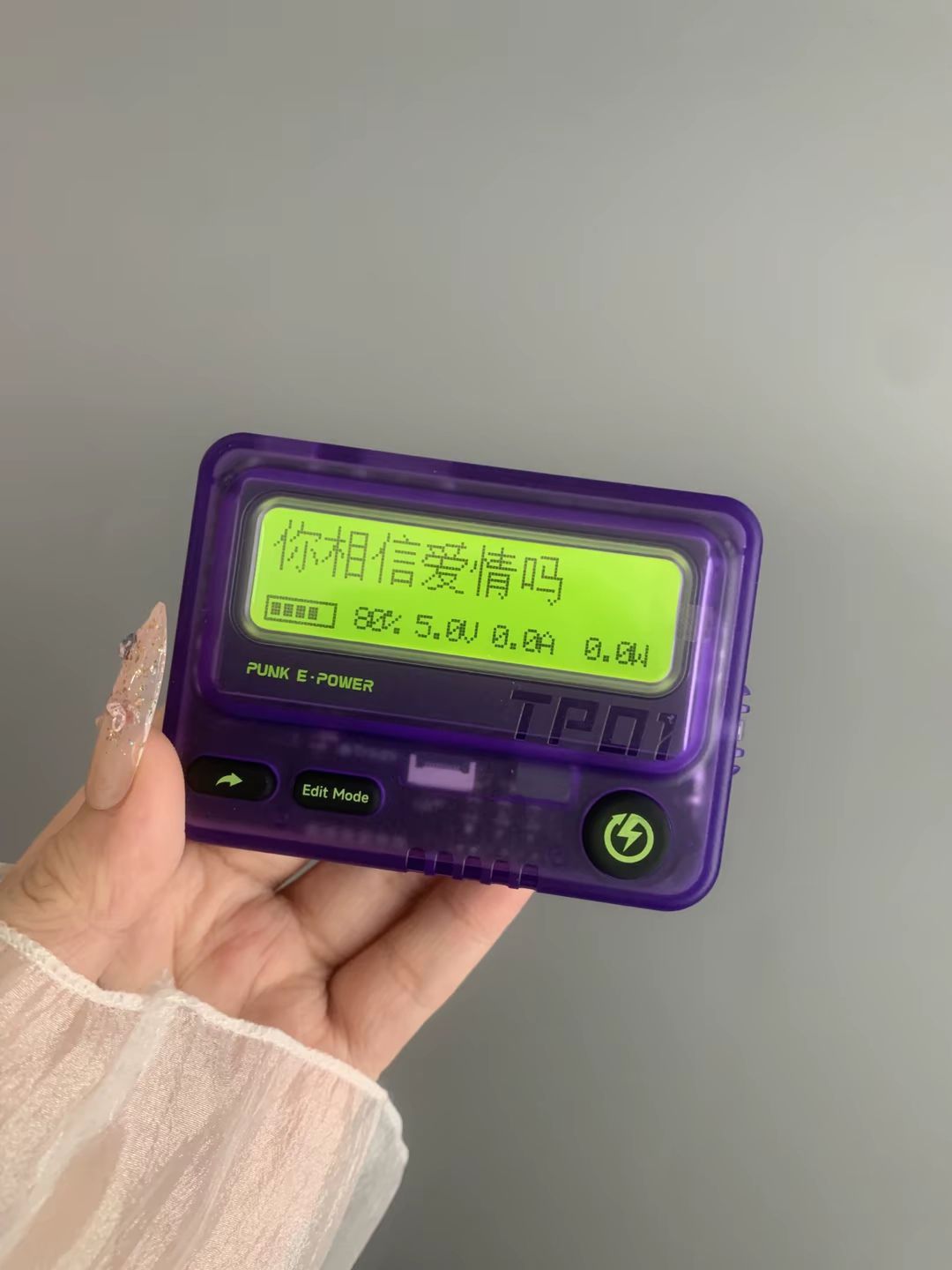 长得酷似bb机的充电宝 不仅能快充 还能发送消息 容量1w毫安 能给手机充两三次电呐 只有一包纸巾大小 出门携带hin方便