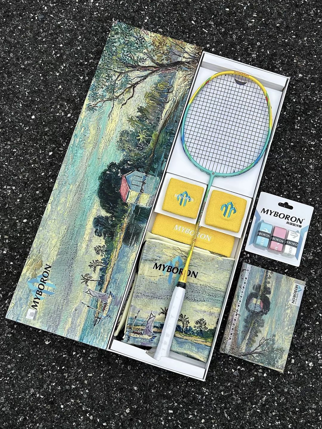 真的会被球友借去看诶 我拿到都有点惊喜 好有艺术感的球拍礼盒 完全就是一幅画呀 打开是全碳素球拍 我拿在手上还挺轻的 而且挥拍击球手感蛮不错 搭配了球包护腕手胶 一整套装备不得多杀几个球呀