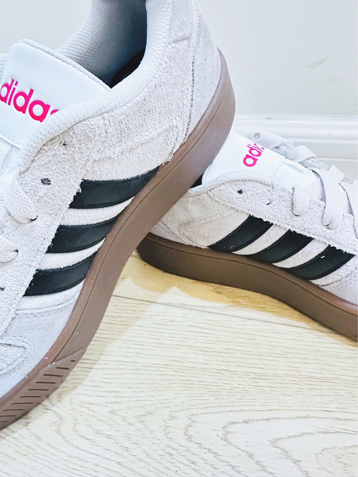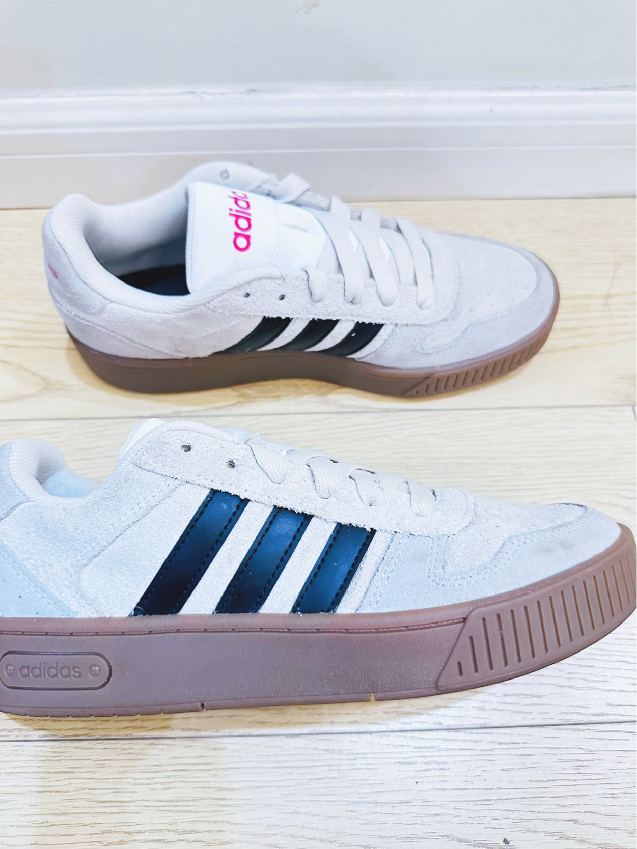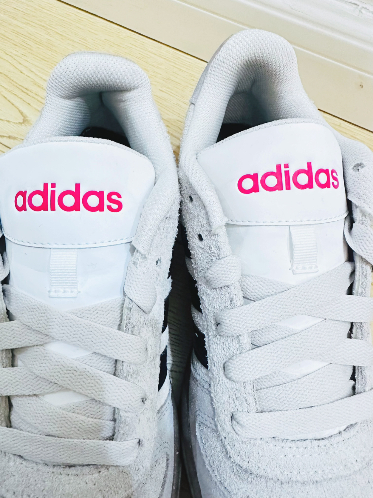 浅灰色翻毛皮➕红标超绝! 经典三条杠配深胶底,简约又百搭。日常出街随手一搭就很潮! 妥妥的穿搭宝藏鞋!