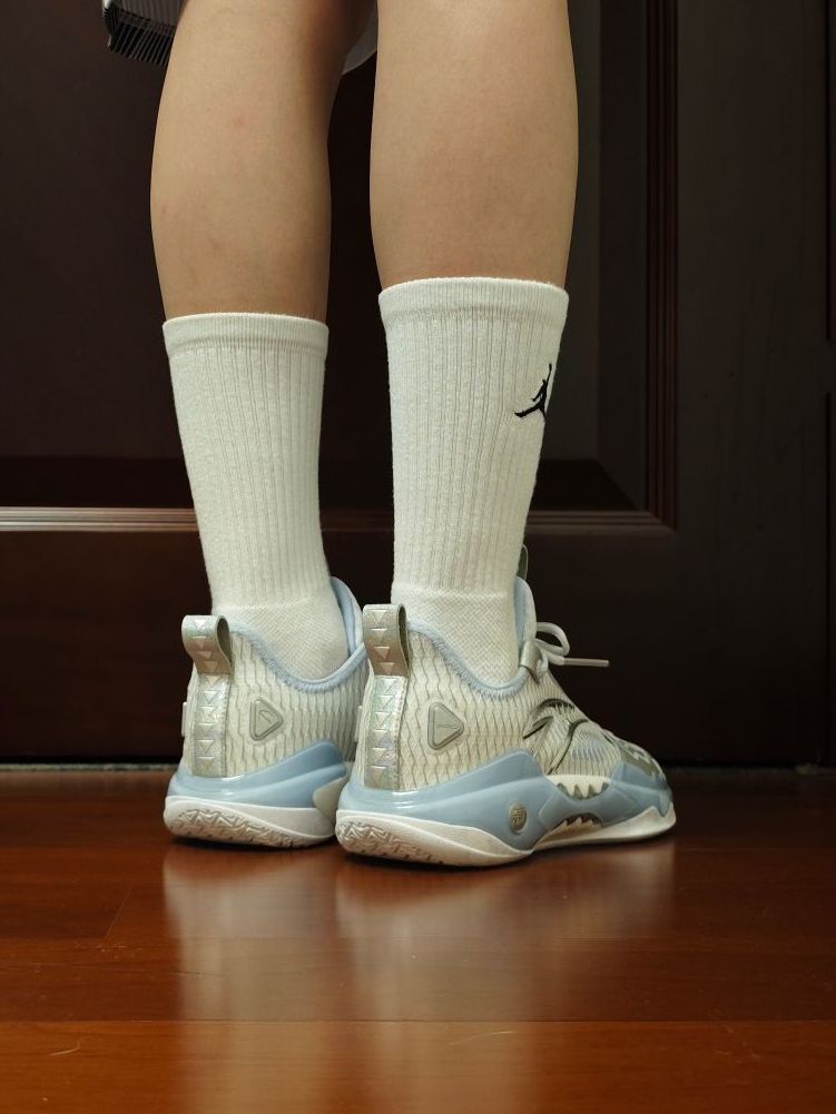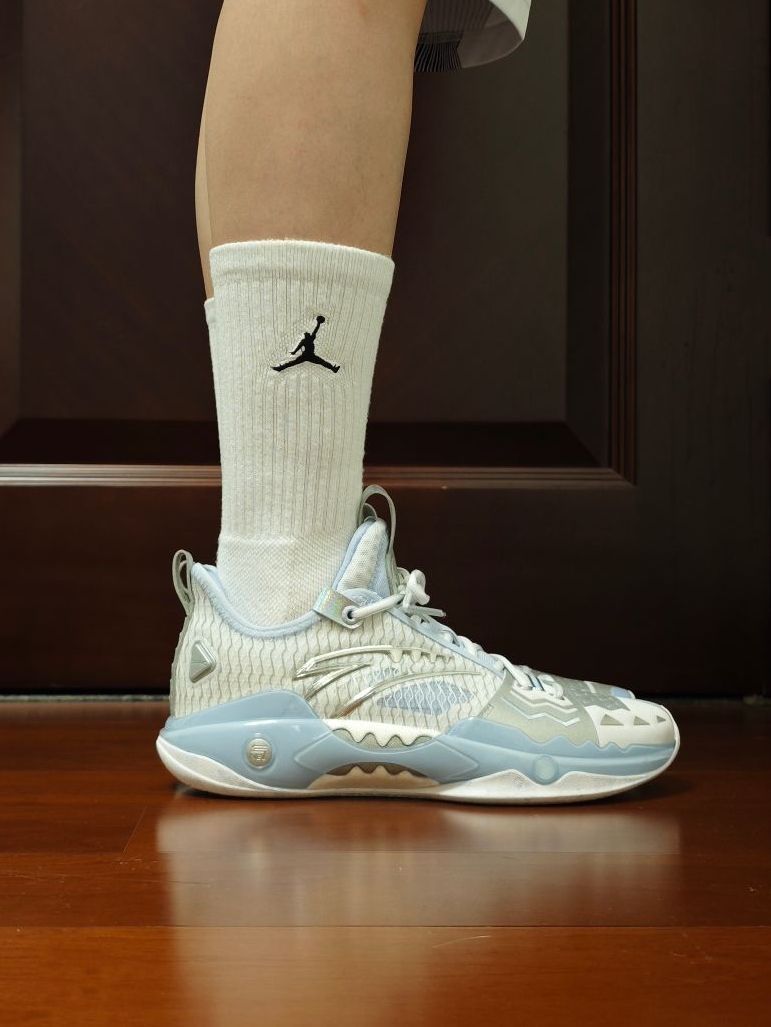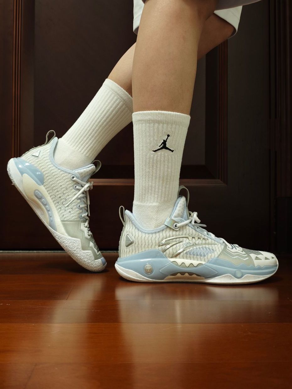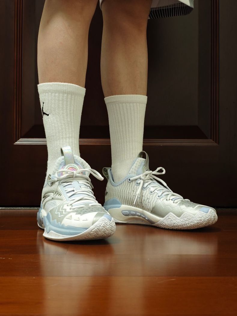 尽管材质并没有什么变化,但这个配色,一眼冰爽,太适合夏天了! 新发的四个配色,当初看图其实就是看中的这双“踏冰”,因为我个人是非常钟爱浅色系的球鞋。(尽管后来拿到实物还是被黑金拿捏了) 突破选手、喜欢安踏、喜欢狂潮、喜欢欧文的朋友,很建议冲这双鞋。
