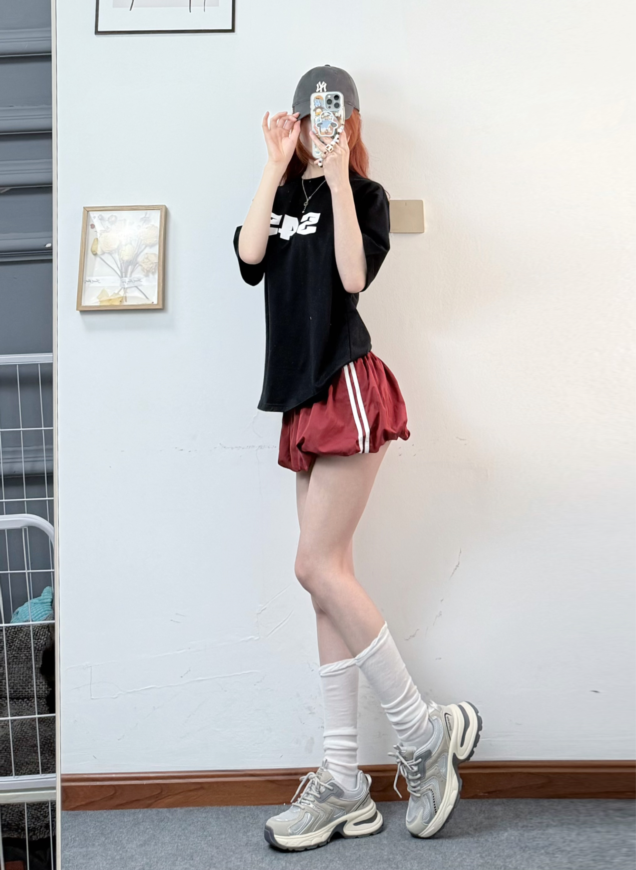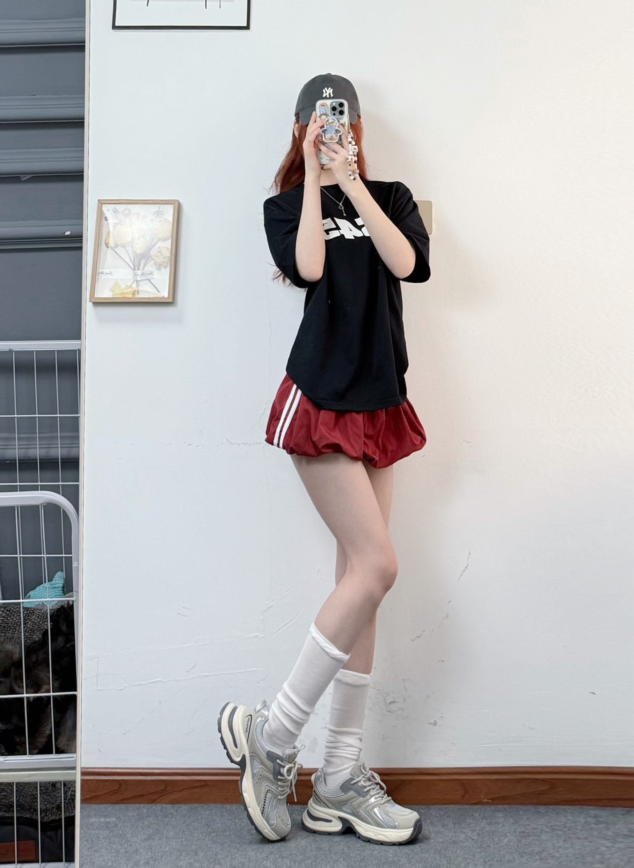 今天穿了宽松的黑t+暗红色蓬蓬短裙❤️🩹 搭配银色的帅气老爹鞋👟 网面嘟夏季穿刚刚好 不闷脚 上jio也很舒服 蹦蹦跳跳不累脚! 厚底就很显腿长 无痛拥有大长腿 平时通勤运动都可以穿 还百搭