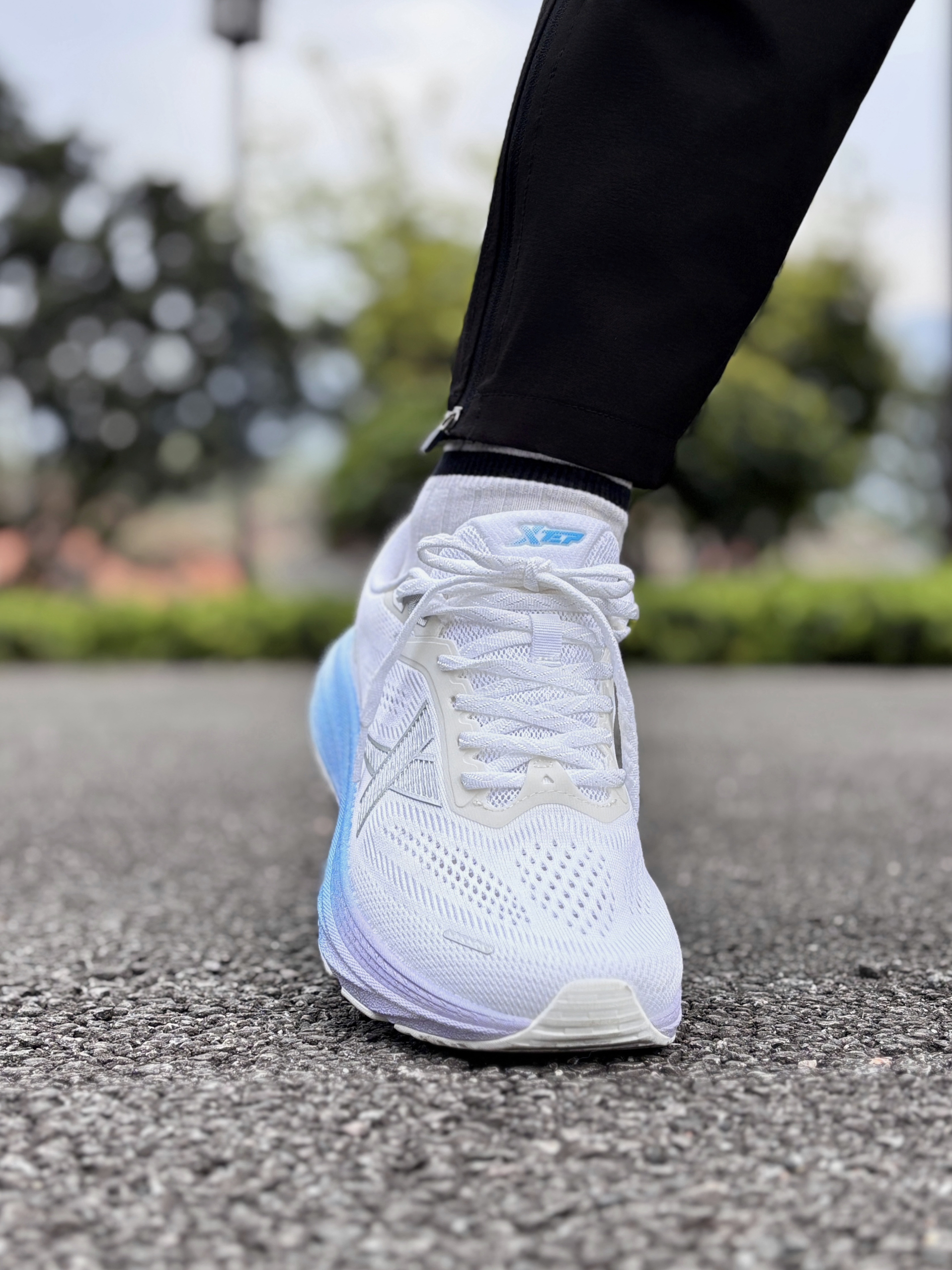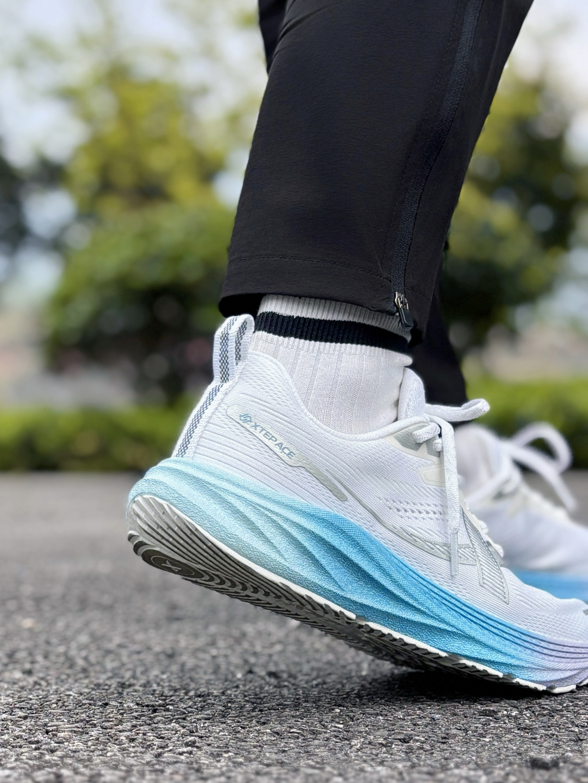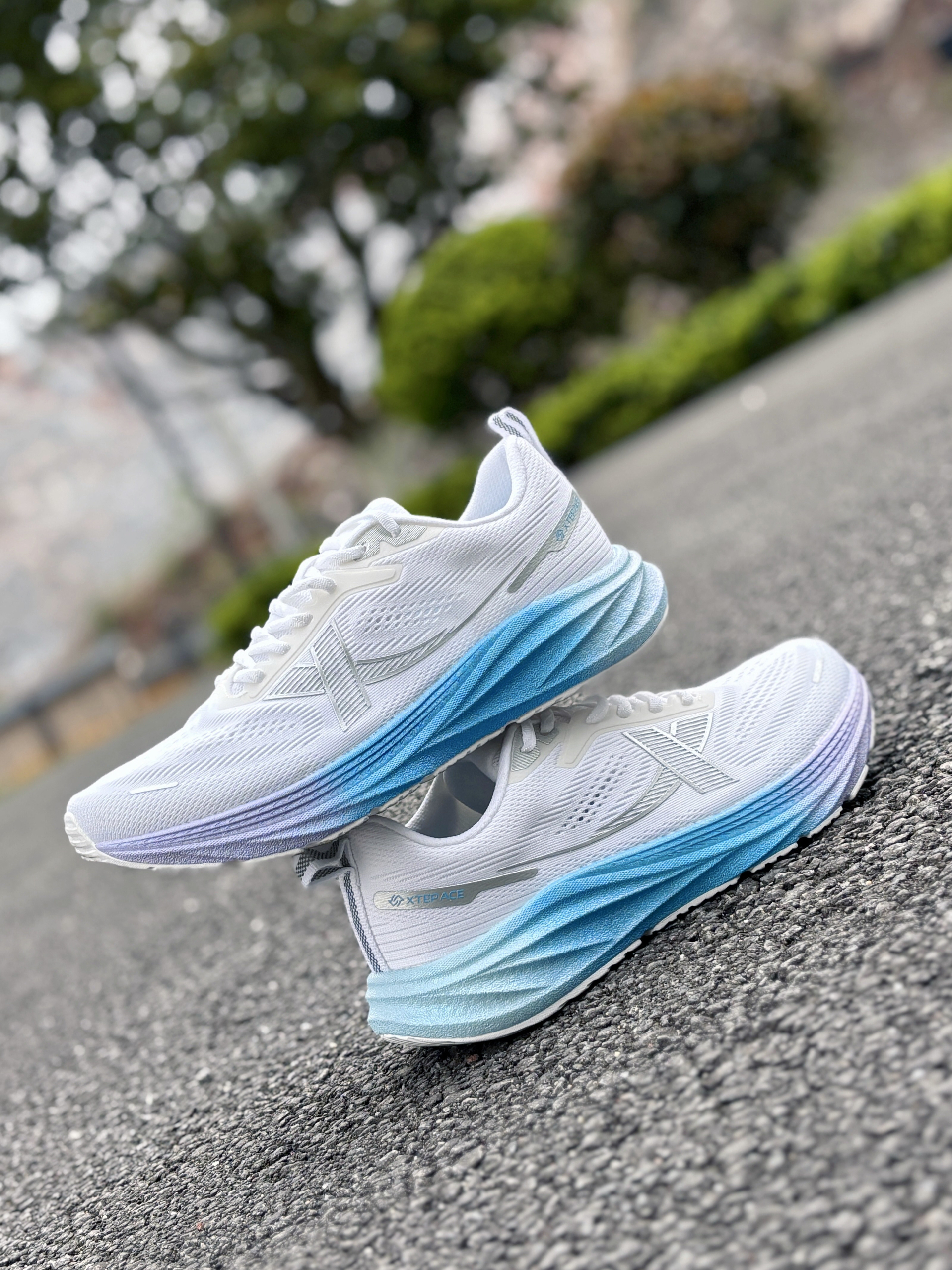 💁♂:Hi~ 这里是大大纳mi~ 特步薄底香菜跑鞋🍃听名字就很有记忆点呀!白色鞋身融入蓝色渐变中底,清爽干净!比较适配这个夏天呐! ✨上脚第一感觉是轻弹!全掌XTEP ACE材料回弹感确实能打。前后5mm坡差设计对新手特别友好(试过高坡差真的会脚酸),体测前突击训练更好打基础💦 👣宽楦设计我这种小胖脚穿很舒服,日常慢跑/折返跑没有出现过顶脚趾的情况~ ♦体验下来薄底设计适合竞训以及短跑/跳远等...